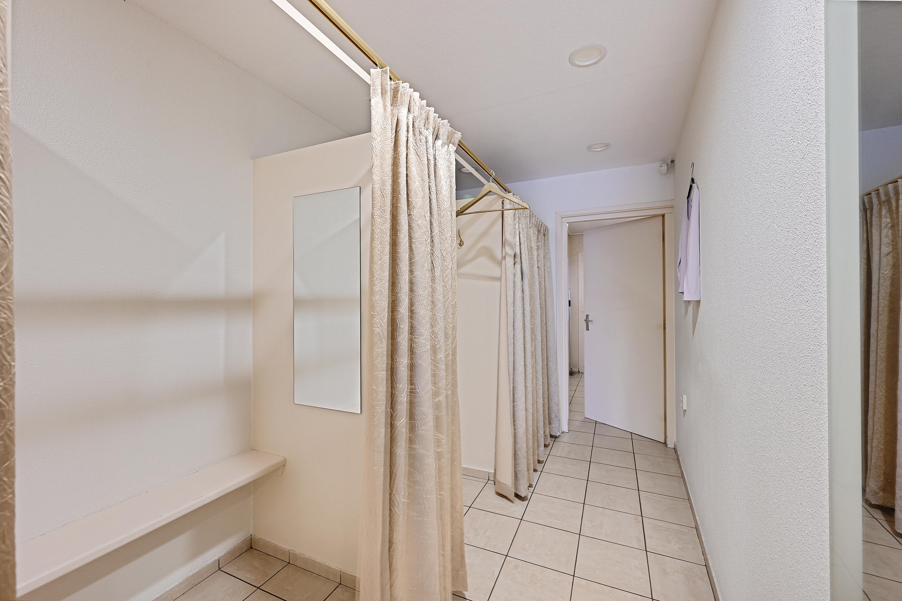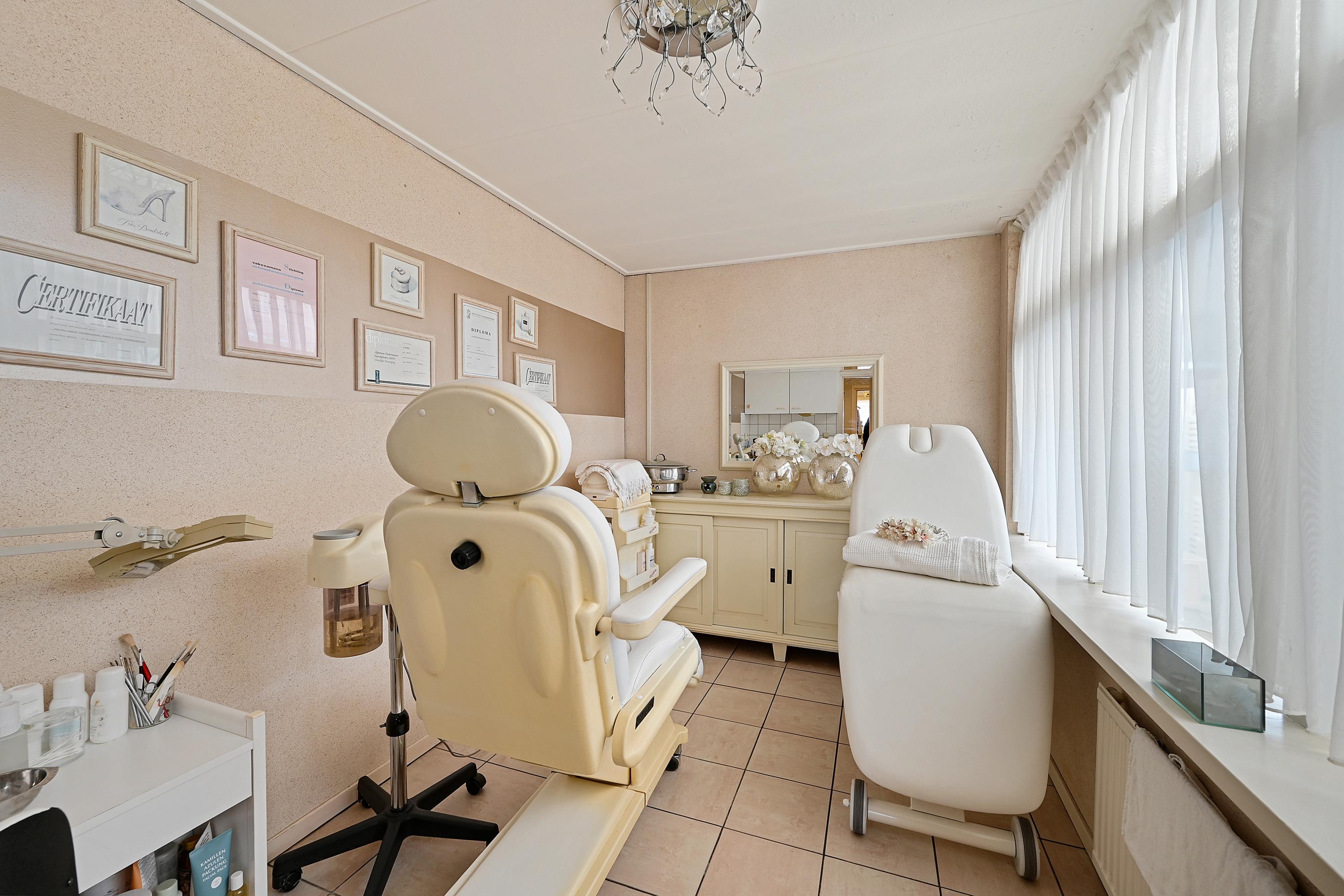 Aan de achterzijde is nog een aparte ruimte beschikbaar, die momenteel in gebruik is als praktijk-/behandelkamer evenals een toilet. Tot slot is er een overdekt, voormalige buitenterrein dat wordt gedeeld met de buren (met recht van overpad) en is voorzien van een afsluitbare toegangsdeur.