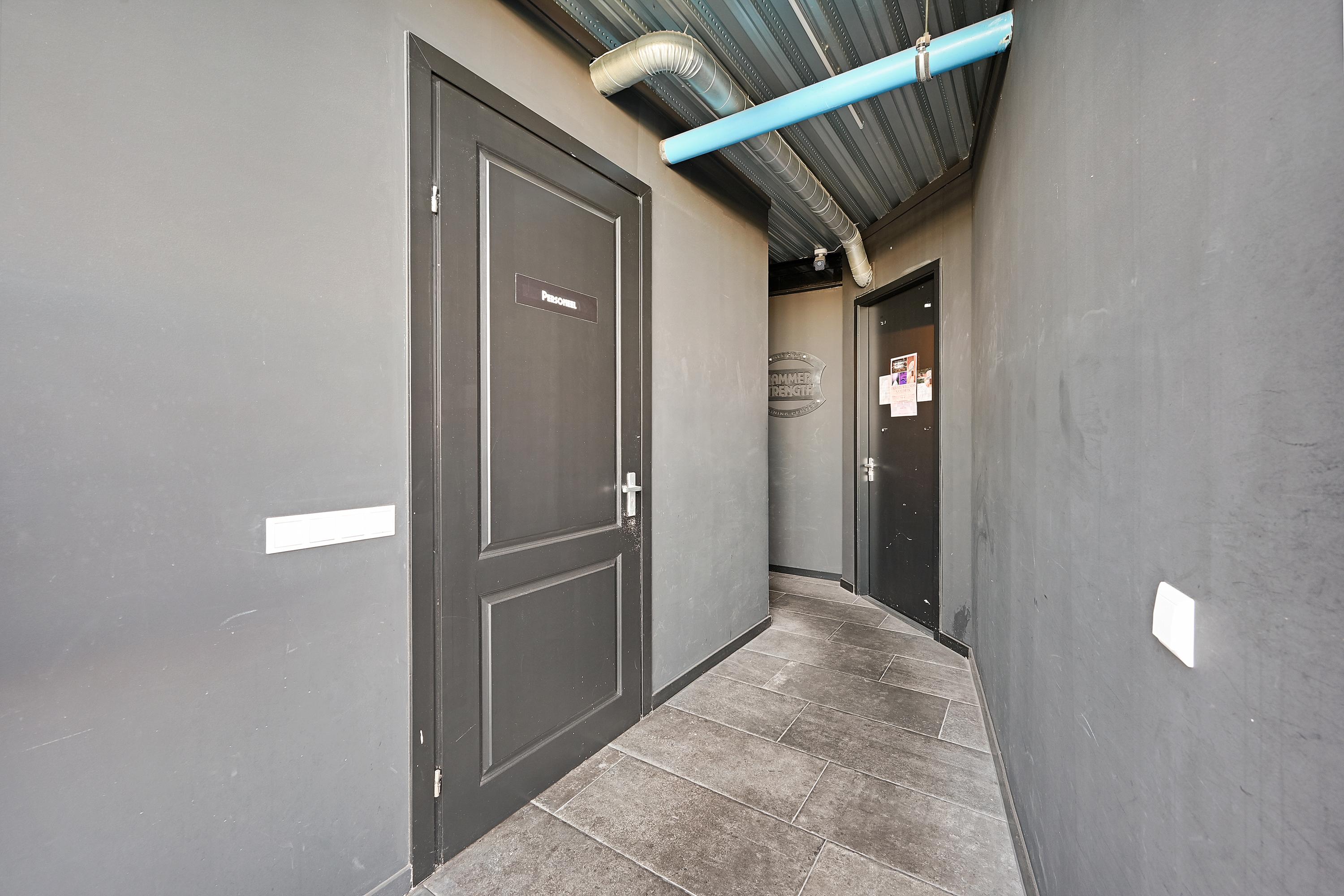 Het pand is toegankelijk via de centrale voordeur, daarnaast zijn er twee schuifpuien aanwezig die als extra of onafhankelijke entree gebruikt kunnen worden. De entree is voorzien van hal, toiletruimte en technische ruimte. Vanuit hier bereikt u de centrale ontvangstruimte met een gezellige koffiecorner en verlaagd plafond. De begane grond heeft een oppervlakte van circa 260 m² en is momenteel ingericht als sportschool met fitnesstoestellen, maar geschikt voor vele doeleinden. De voorzijde heeft brede raampartijen die veel licht binnenlaten, en vanaf de vides op de eerste verdieping is er op meerdere plaatsen zicht op de begane grond, wat bijdraagt aan een ruimtelijk en open karakter.