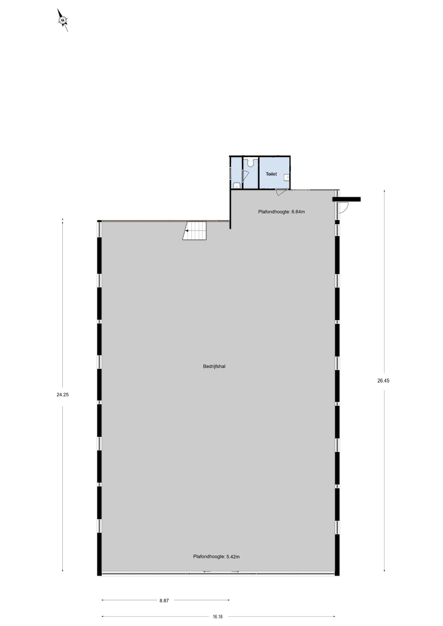 - Bedrijfsoppervlakte hal: ca 430 m²