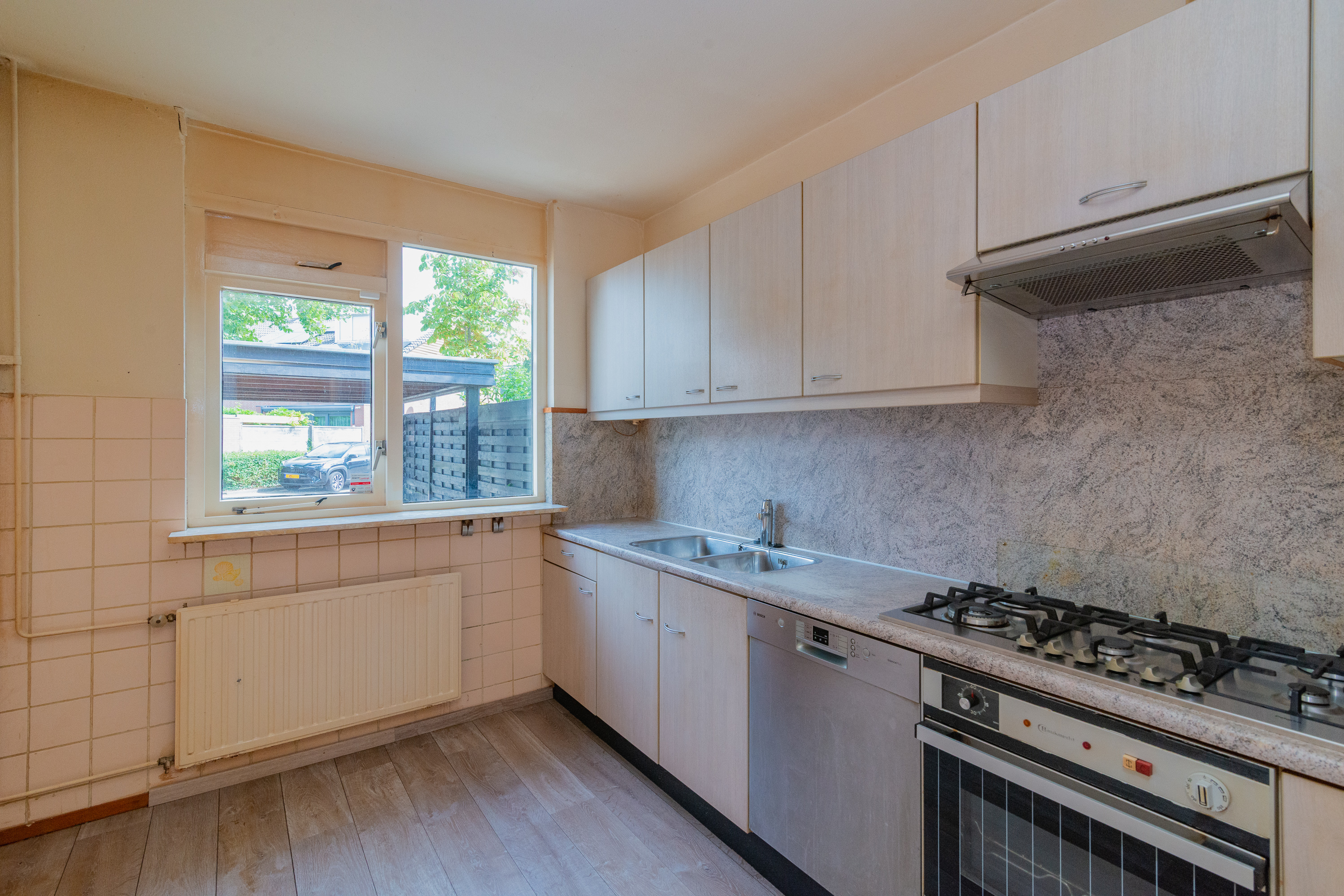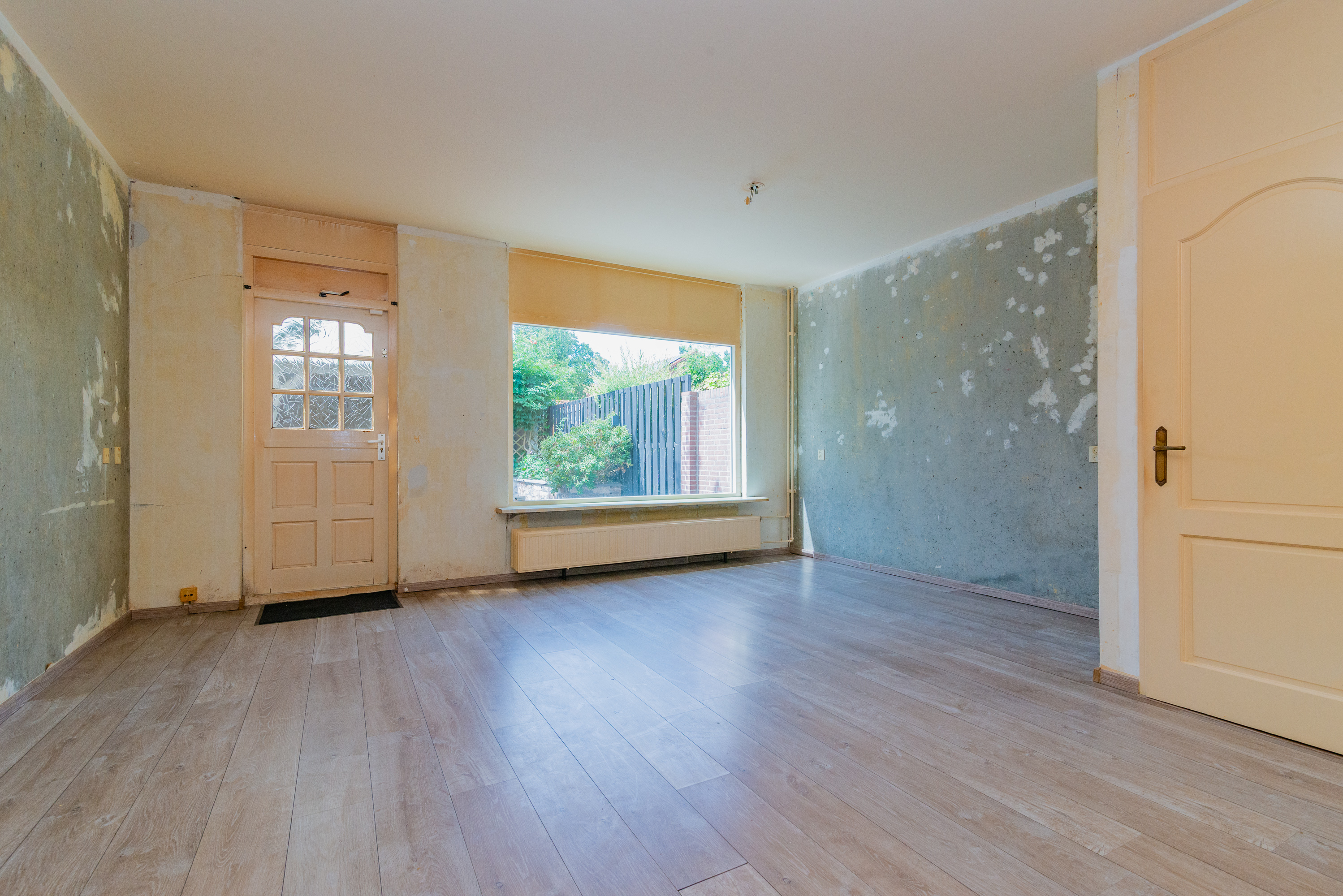 Via de voordeur komt u in de hal met meterkast, toiletruimte en trapopgang naar de eerste verdieping. Aan de voorkant van de woning ligt de keuken, voorzien van diverse kasten en apparatuur. De tuingerichte woonkamer van ca. 25 m² bevindt zich aan de achterzijde en biedt dankzij de grote schuifpui of deur veel licht en direct contact met de achtertuin. Tevens aan de voorzijde van de woning bevindt zich de overdekte carport met toegang tot de inpandige berging, ideaal voor fietsen en opslag.