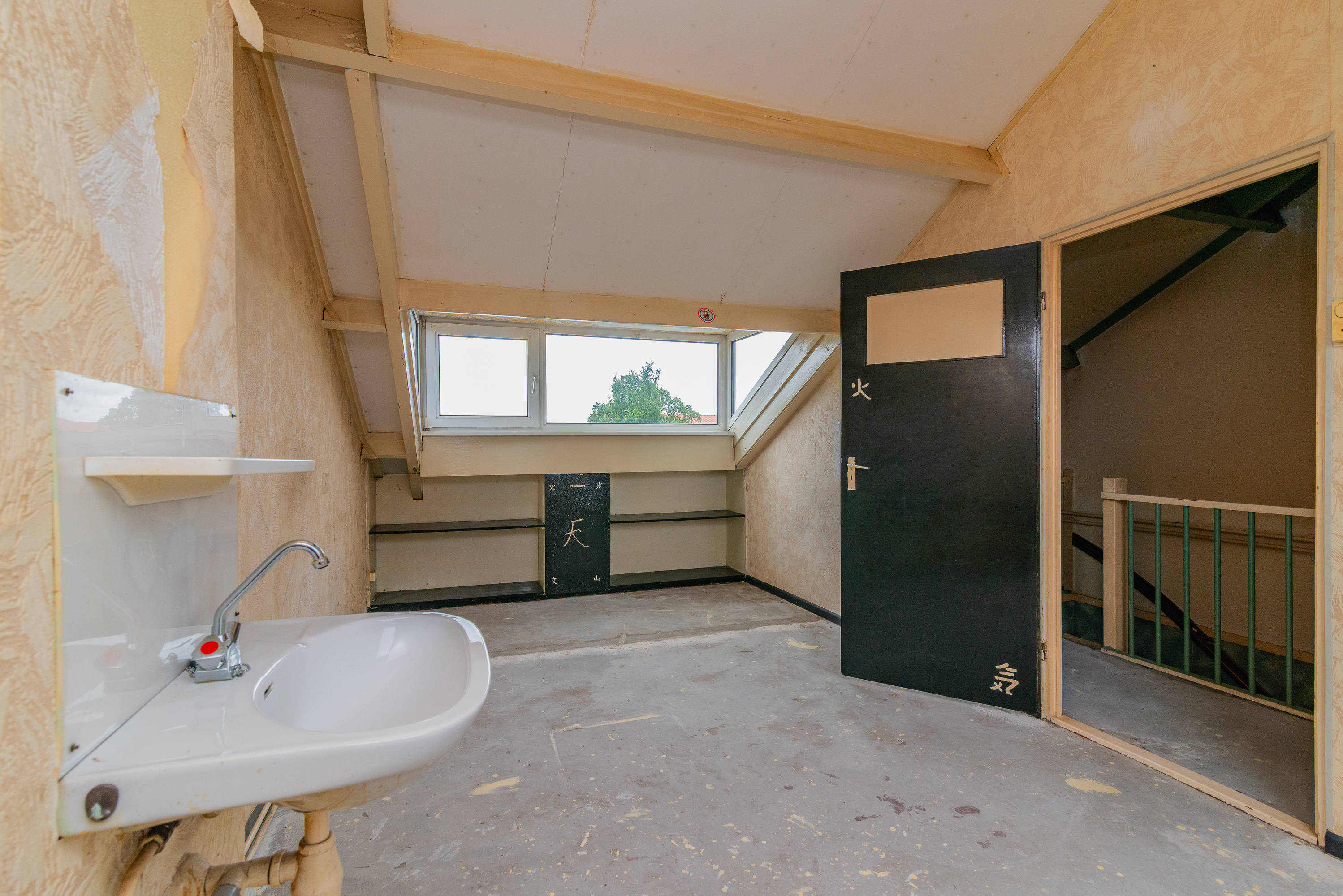 Via een vaste trap bereikt u de voorzolder met aansluitingen voor de cv-ketel en extra bergruimte. Daarnaast is hier een vierde slaapkamer met dakraam en een wastafelmeubel. Achter de knieschotten vindt je nog extra veel bergruimte.