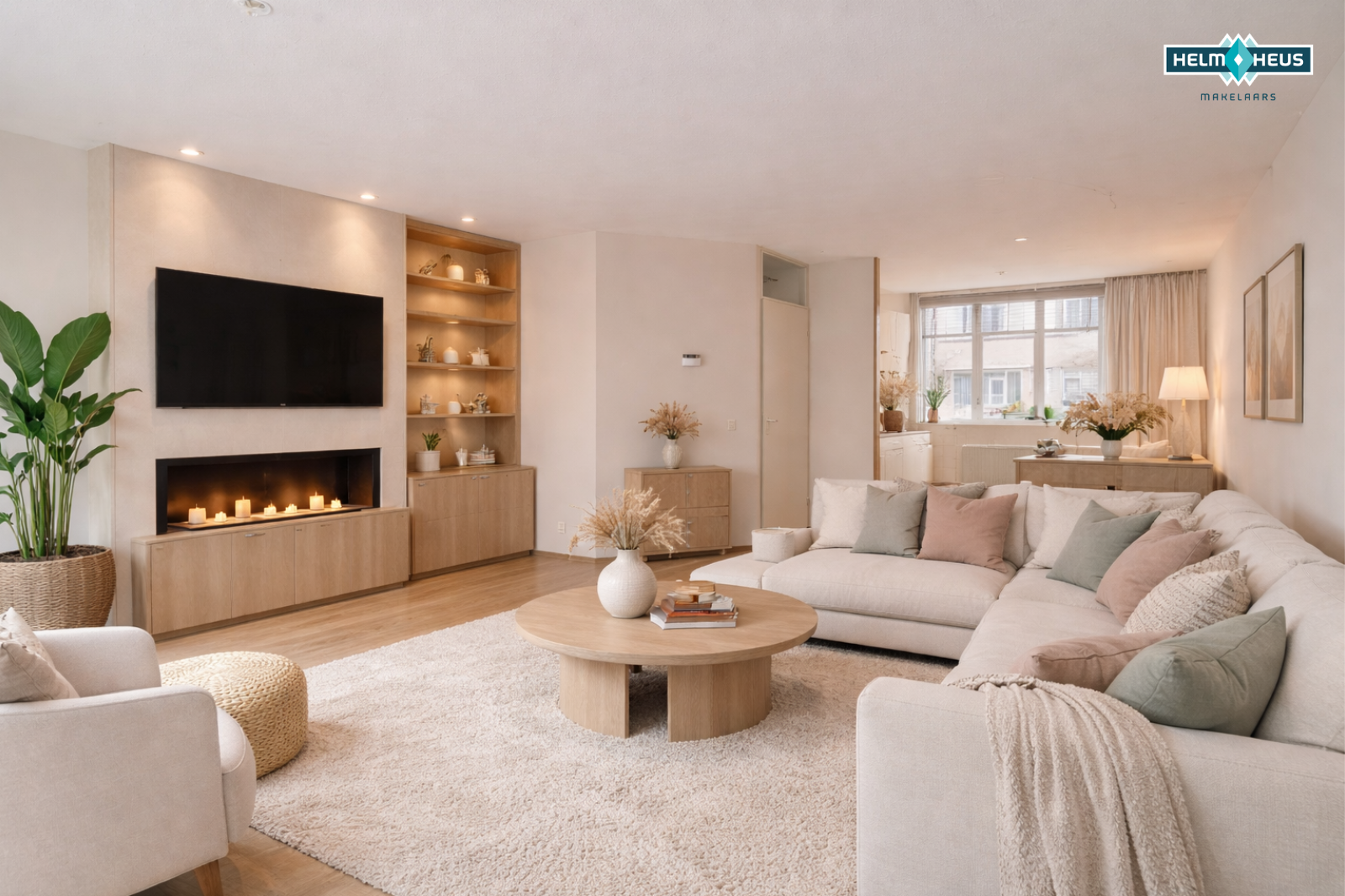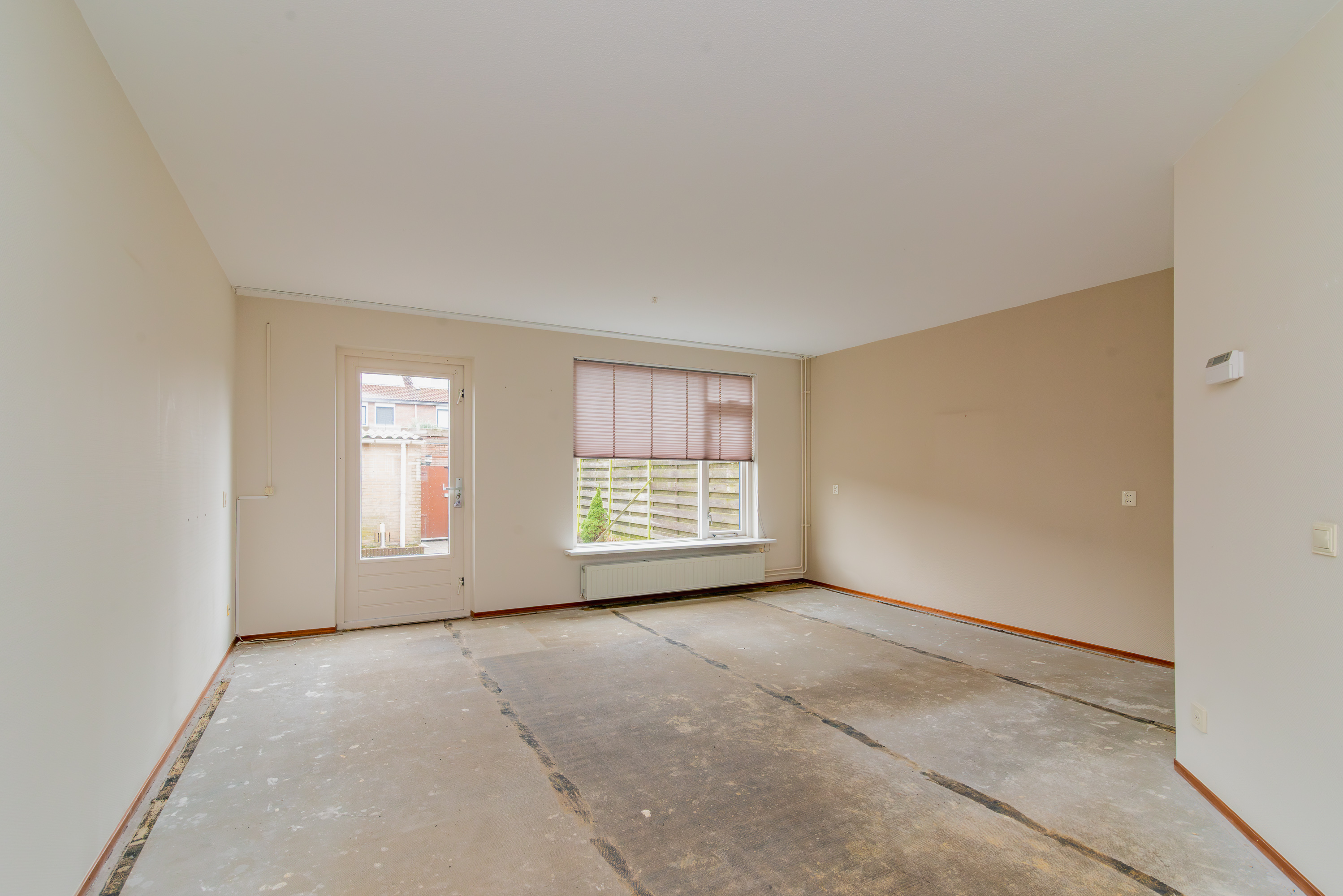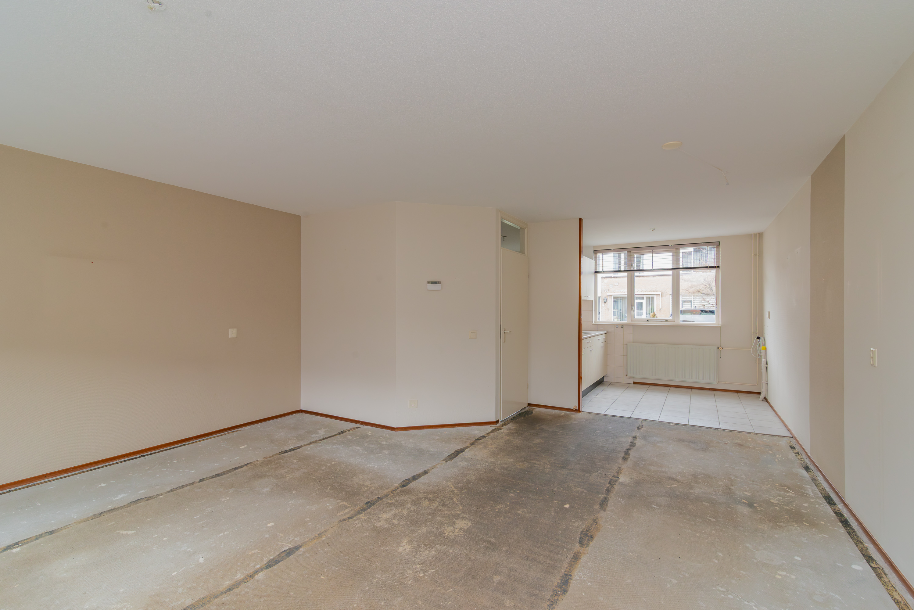 De woonkamer ligt aan de achterzijde van de woning en voelt direct licht en ruim aan dankzij de grote raampartij en de deur naar de tuin. Met circa 27 m² heb je hier alle ruimte voor een comfortabele zithoek en een gezellige eethoek. Het is zo’n plek waar je je al snel kunt voorstellen hoe je hier straks thuiskomt en tot rust komt.