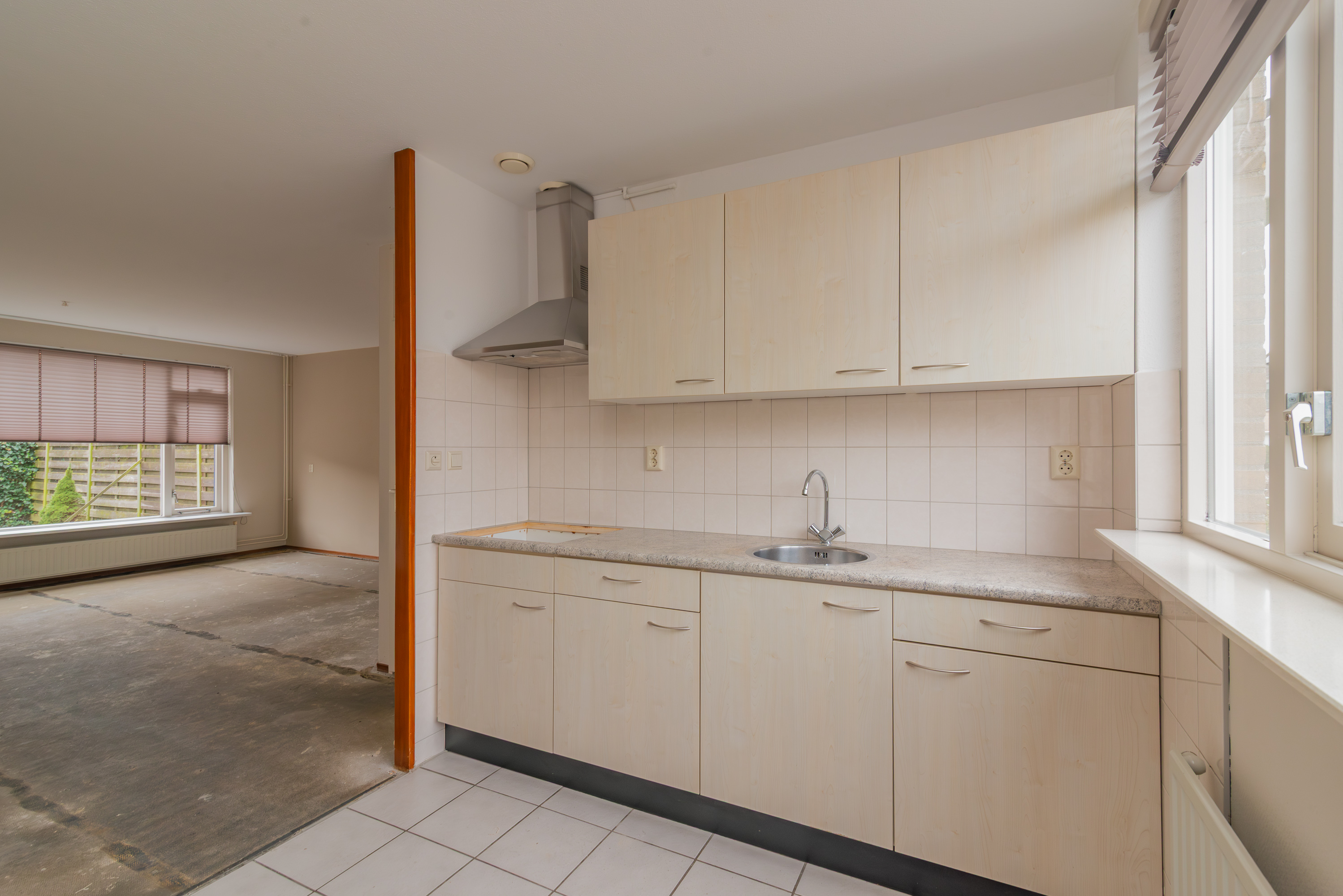 Aan de voorzijde van de woning vind je de keuken (ca. 7 m² ). Deze is praktisch ingedeeld en voorzien van een nette basisopstelling. Hoewel de afwerking eenvoudig is, biedt de ruimte juist volop kansen om hier een moderne keuken te realiseren die helemaal past bij jouw smaak.