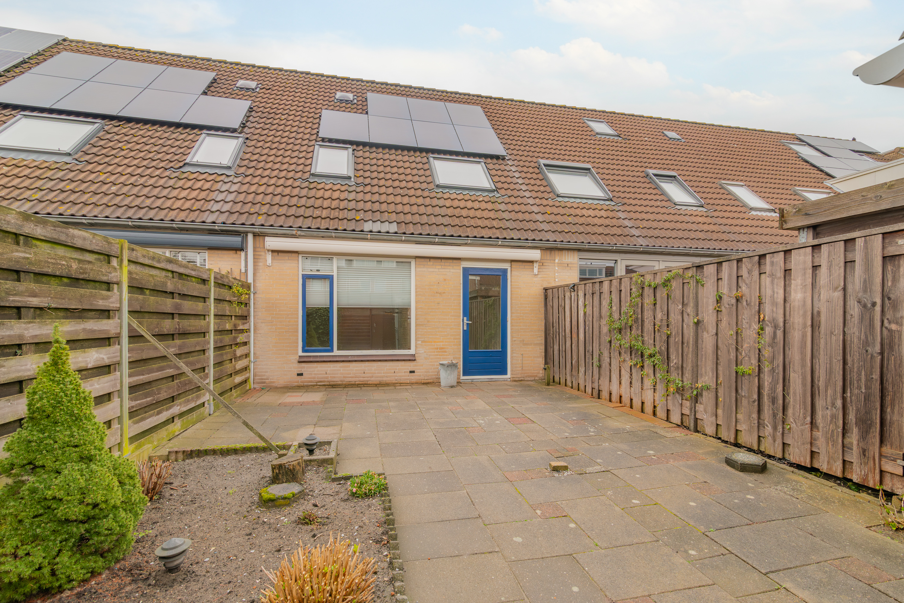 Via de woonkamer stap je zo de achtertuin in. De tuin is grotendeels bestraat en daardoor onderhoudsvriendelijk, maar biedt genoeg ruimte om er een fijne buitenplek van te maken. Denk aan een gezellige zithoek, wat groen of misschien een combinatie van beide.