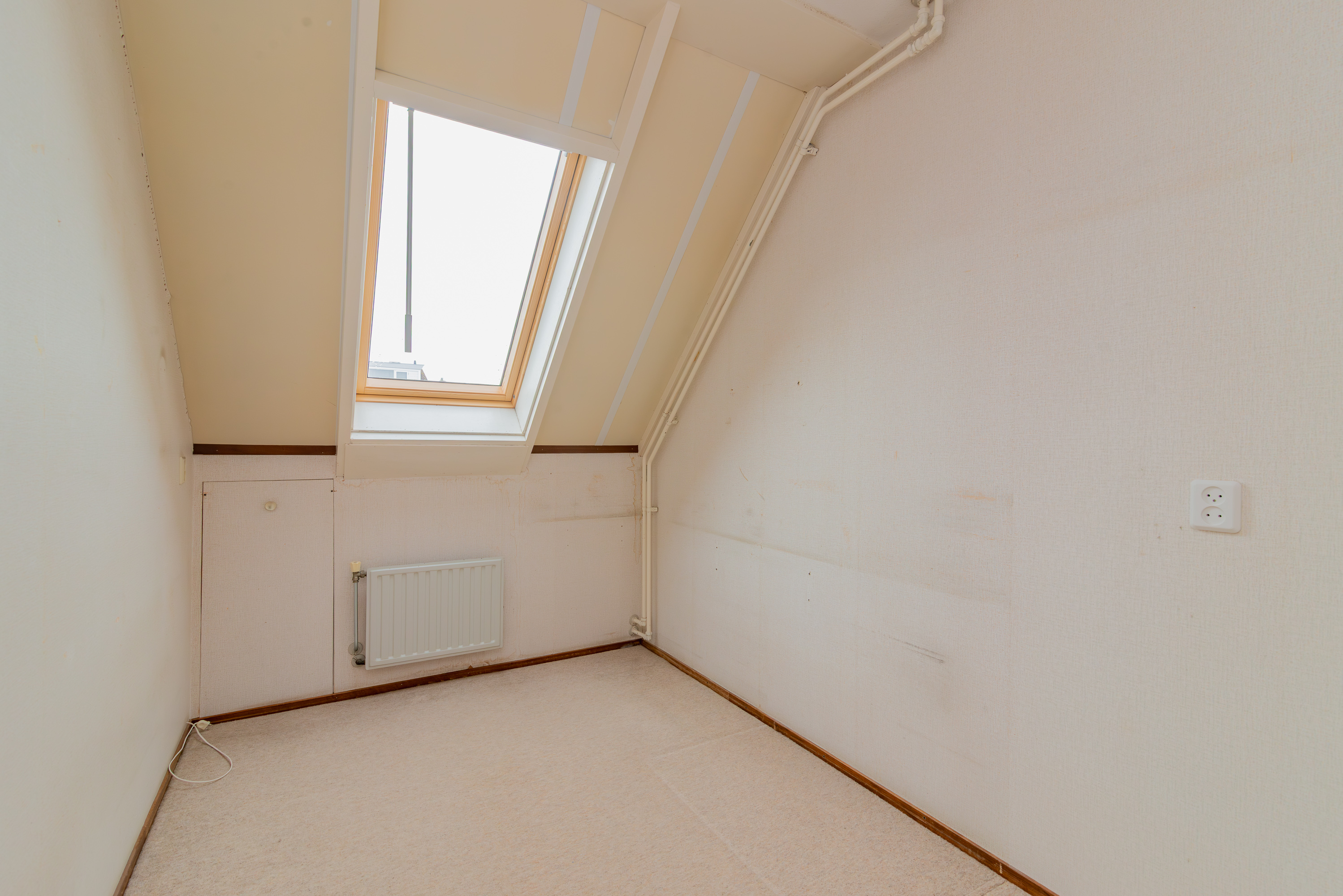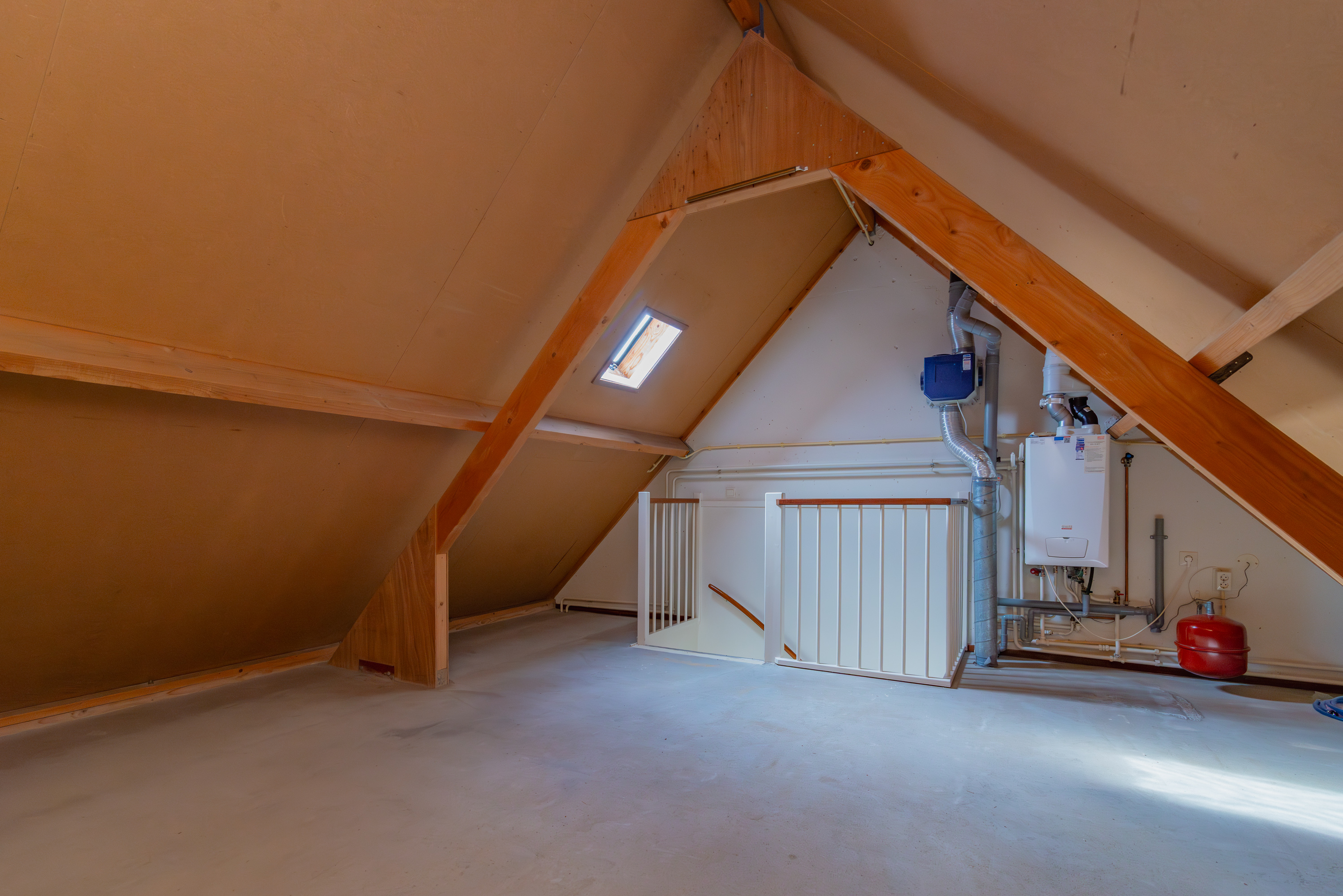 De zolder heeft een oppervlakte van circa 12 m² en beschikt daarnaast over praktische bergruimte onder de schuine kap. Hier bevindt zich ook de cv-installatie.