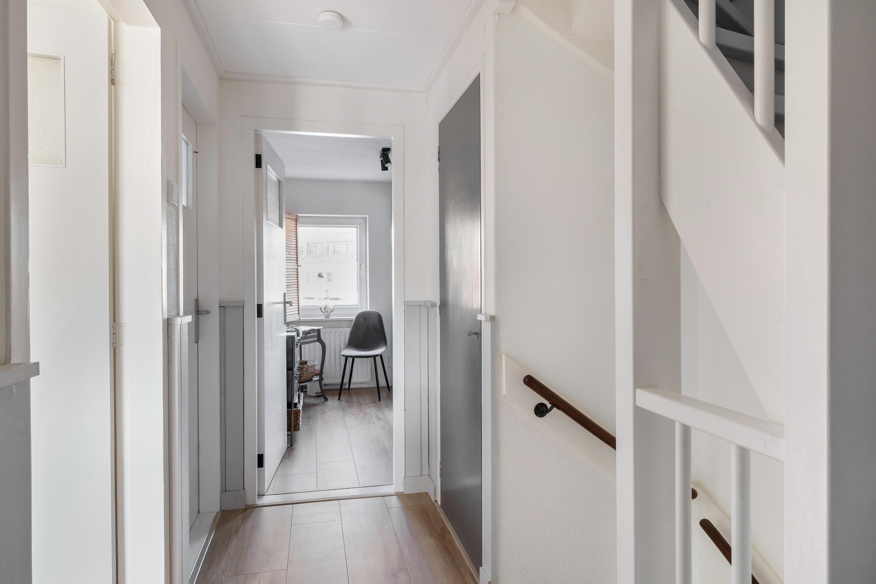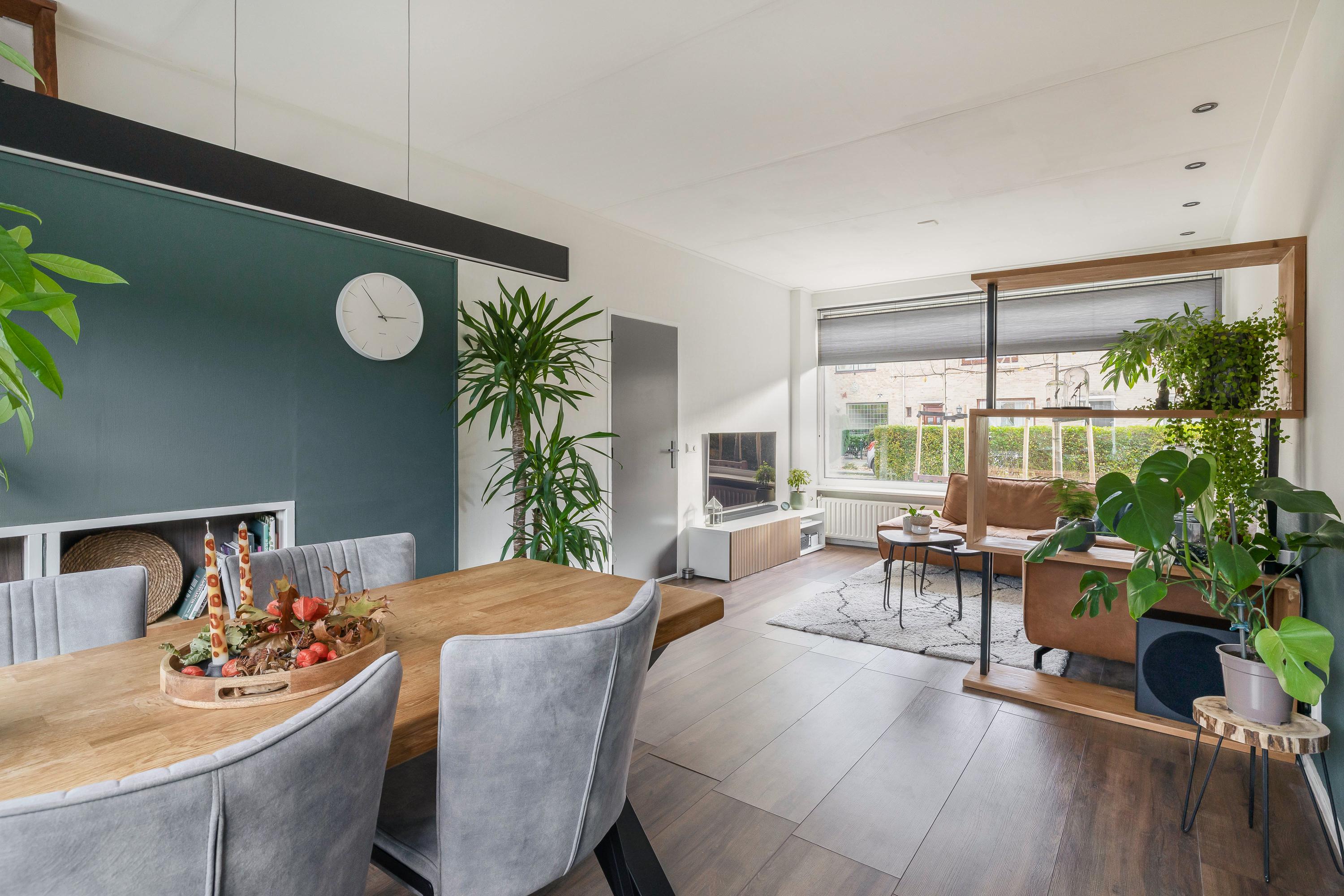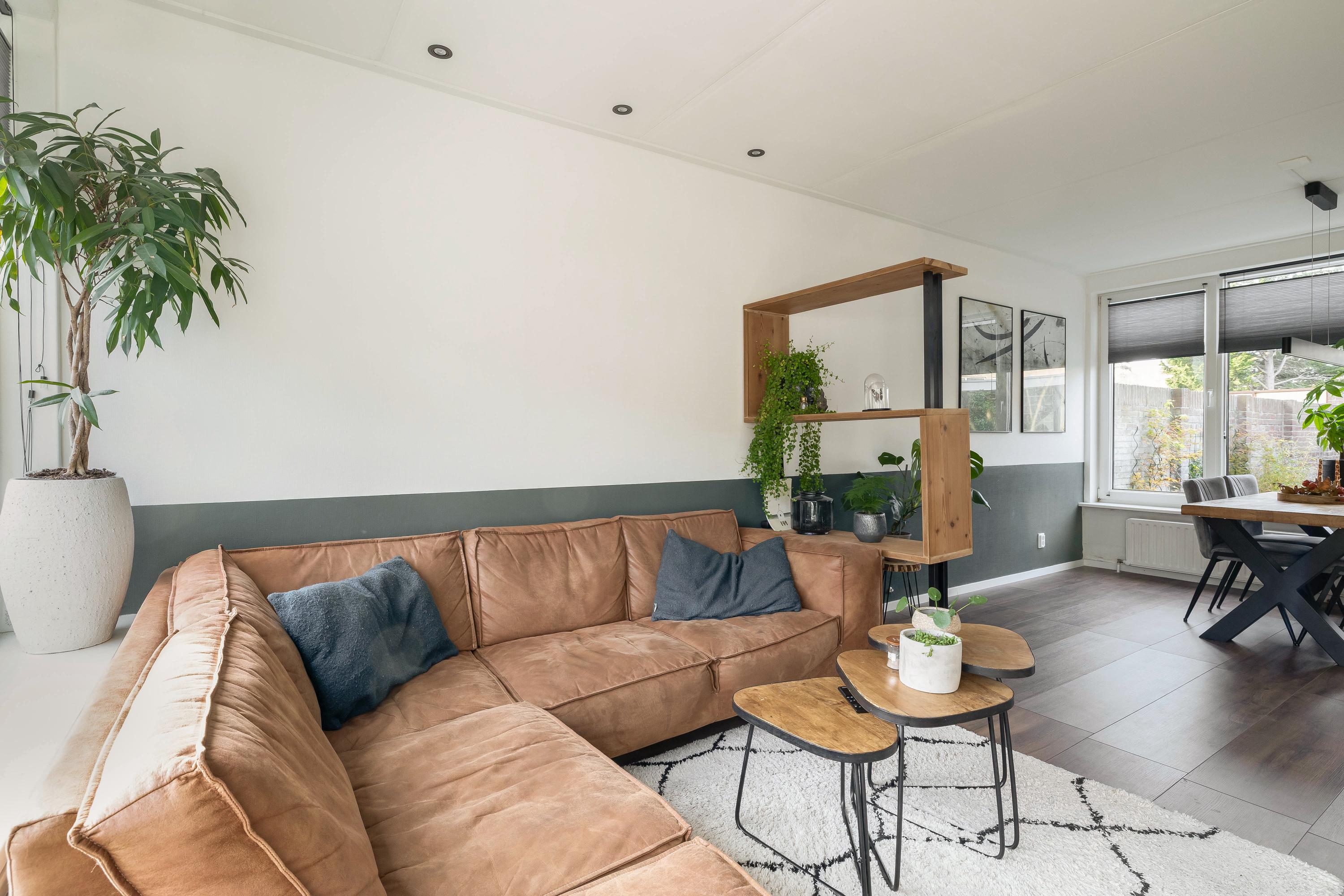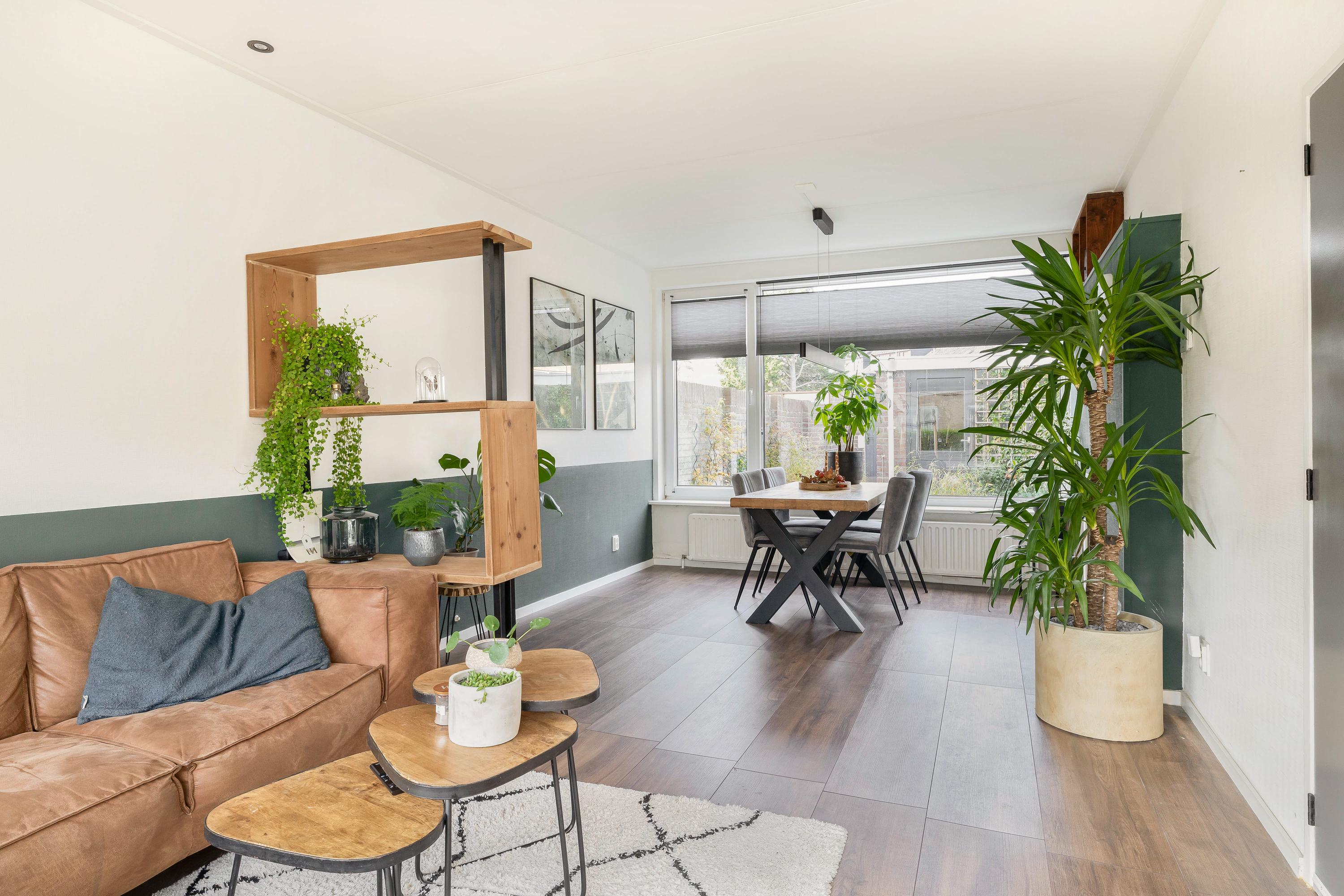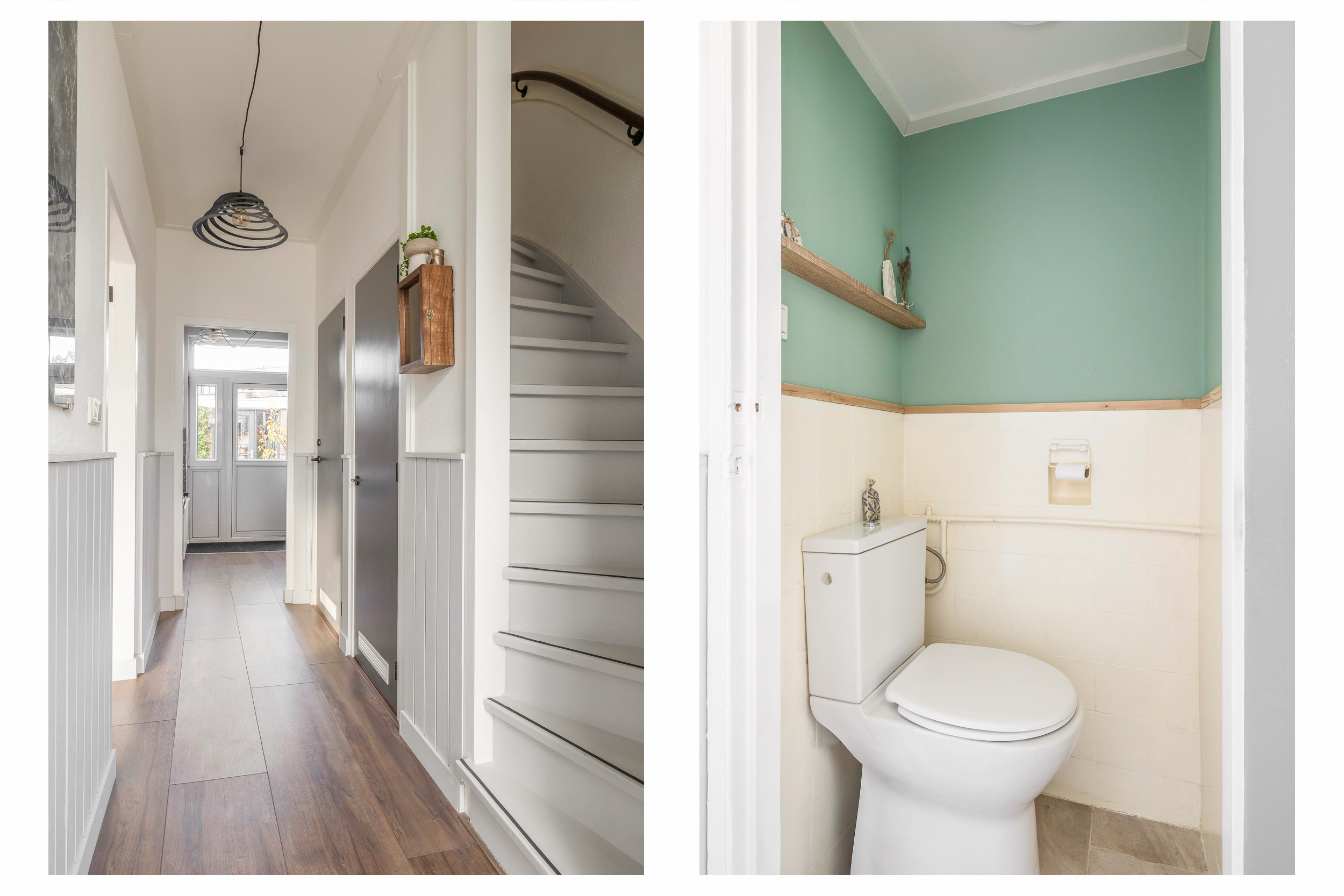 Bij binnenkomst kom je in de hal met meterkast (2021), het toilet en toegang tot de woonkamer. De woonkamer vormt een comfortabele leefruimte met een praktische indeling en voldoende ruimte voor zowel een royale zithoek als een eethoek. De laminaatvloer en strakke wandafwerking zorgen voor een moderne en frisse uitstraling, waardoor de woning direct te betrekken is. Het plafond van de woonkamer is bovendien geïsoleerd.