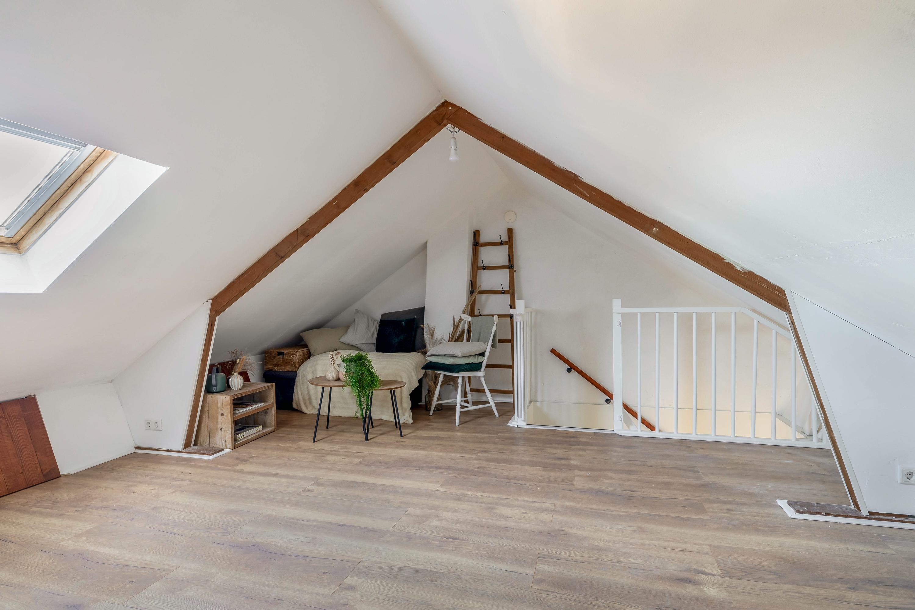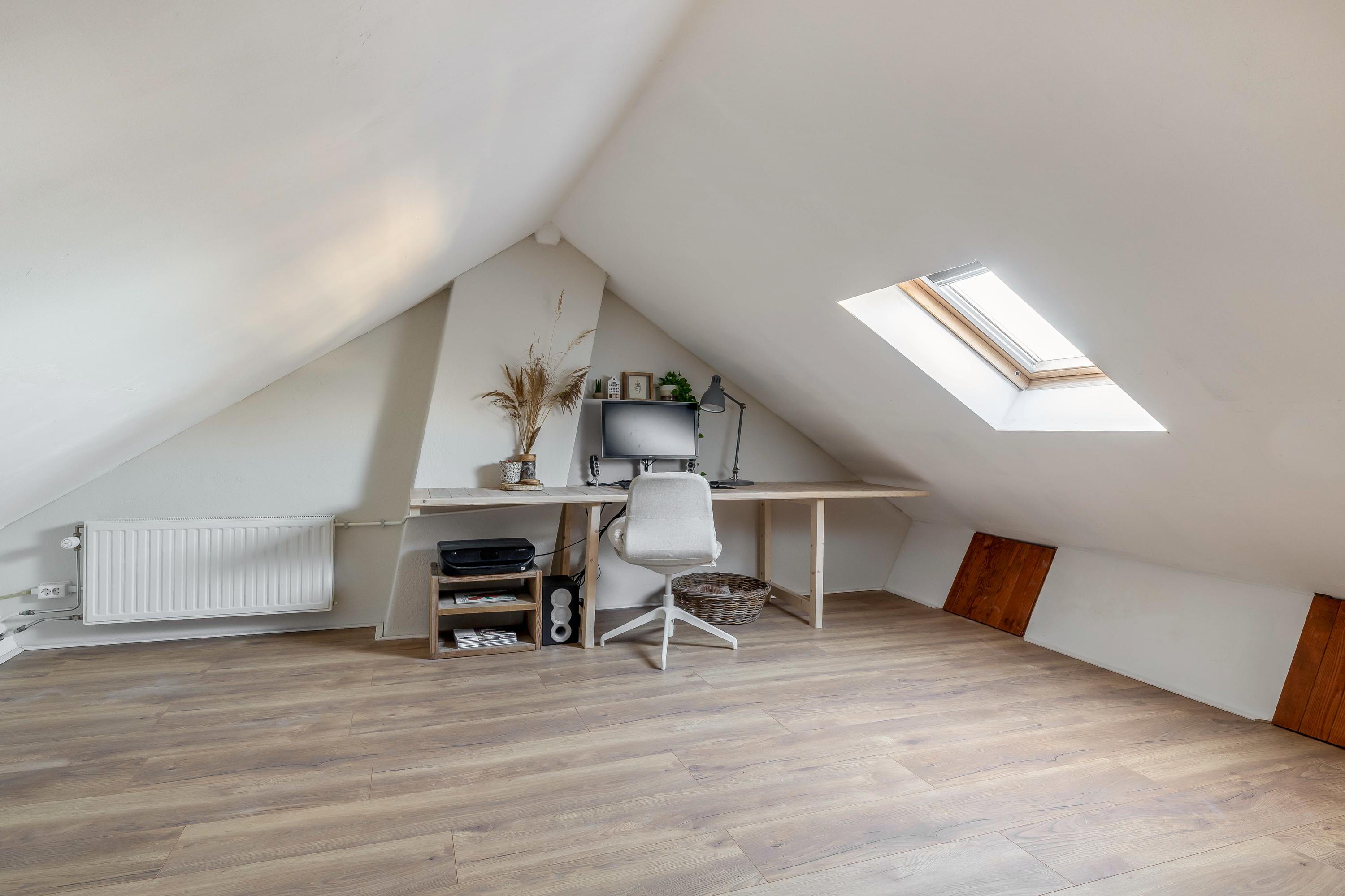 Via een vaste trap is de ruime zolderverdieping bereikbaar. Deze open ruimte is keurig afgewerkt en uitstekend te gebruiken als extra slaapkamer, werkruimte of hobbykamer. De zolder is in 2021 geïsoleerd met Isover zolderisolatie (Rd-waarde 4,0) en voorzien van een dakraam, wat bijdraagt aan comfort en gebruiksgemak.