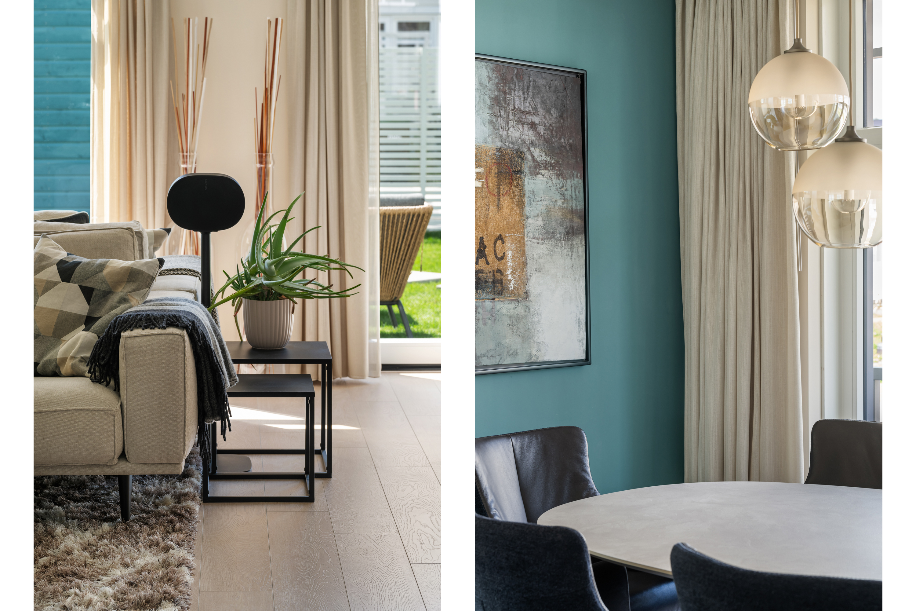 Wat direct opvalt bij binnenkomst is de ruimte en lichtinval. De hal met garderobe, modern toilet en trapopgang leiden naar de ruime living met aan de achterzijde een gezellige zithoek met openslaande deuren naar de zonnige achtertuin. In het midden is de luxe open woonkeuken met een royaal kookeiland gelegen, hoogwaardige inbouwapparatuur en veel kastruimte maken van deze keuken een echte blikvanger in het hart van het huis. Aan de voorzijde is een apart eetgedeelte met openslaande deuren naar de veranda. Naast de living is nog een multifunctionele ruimte welke als aparte kamer kan worden gebruikt of als kantoor aan huis met eigen toegang aan zowel de voor- als achterzijde.