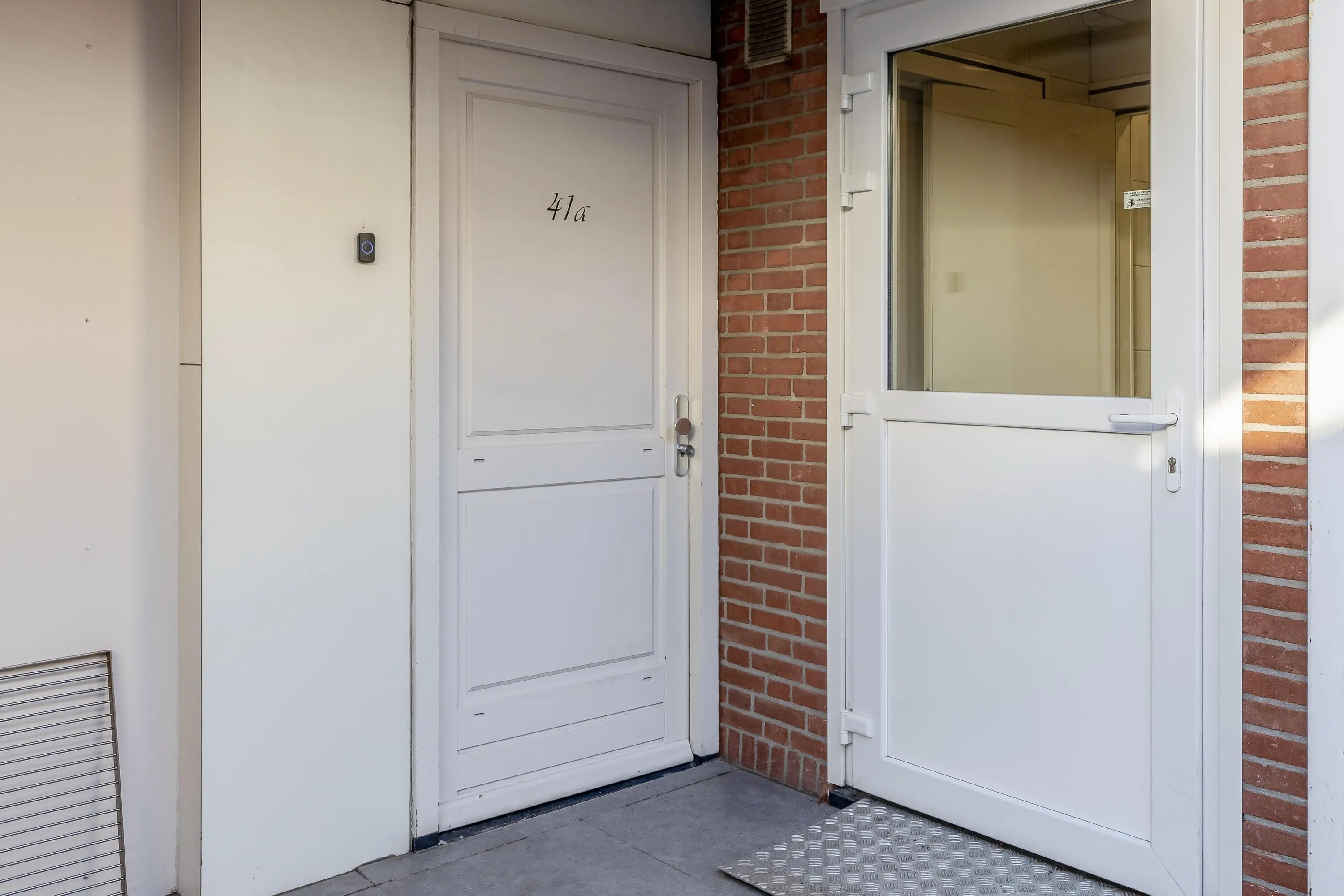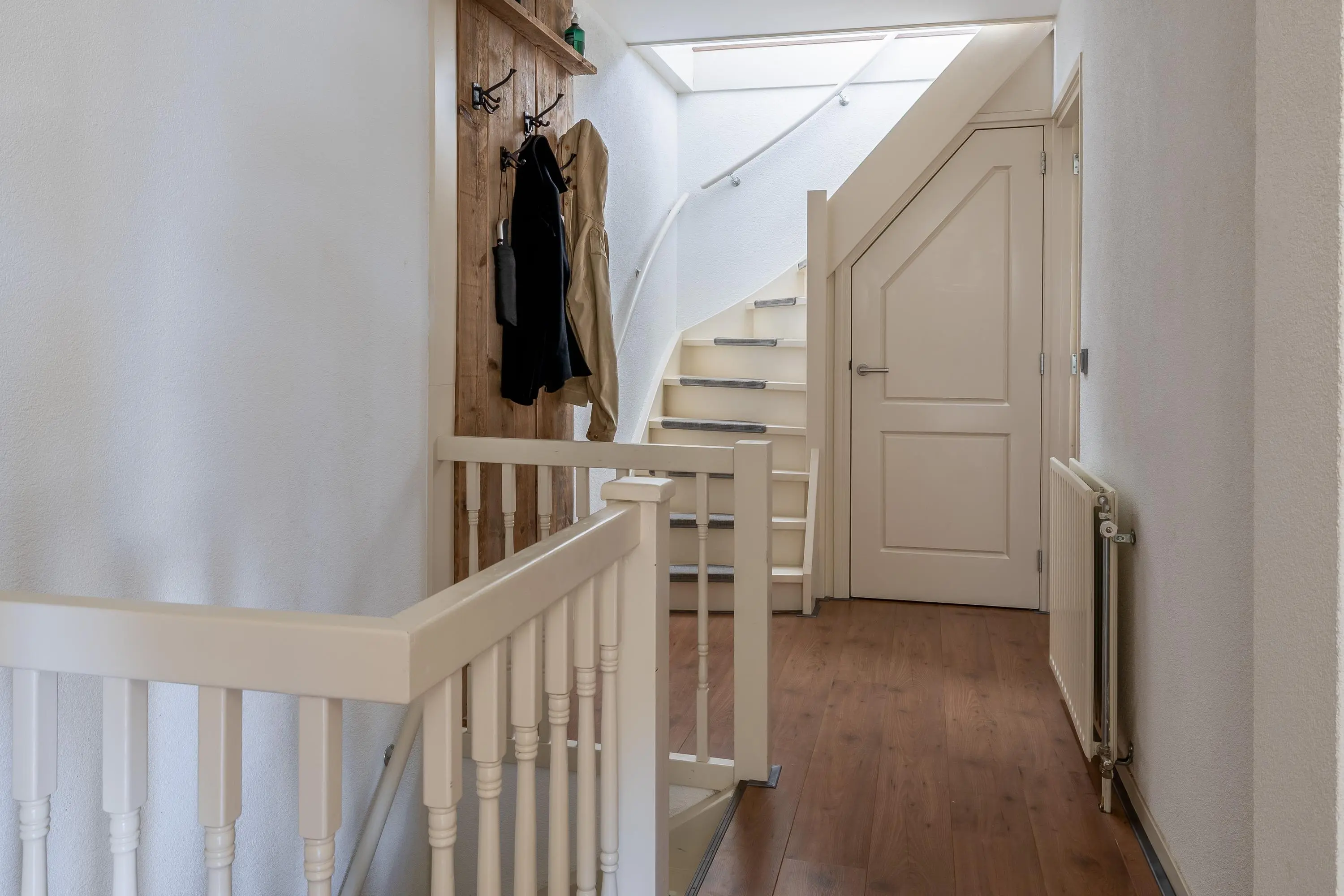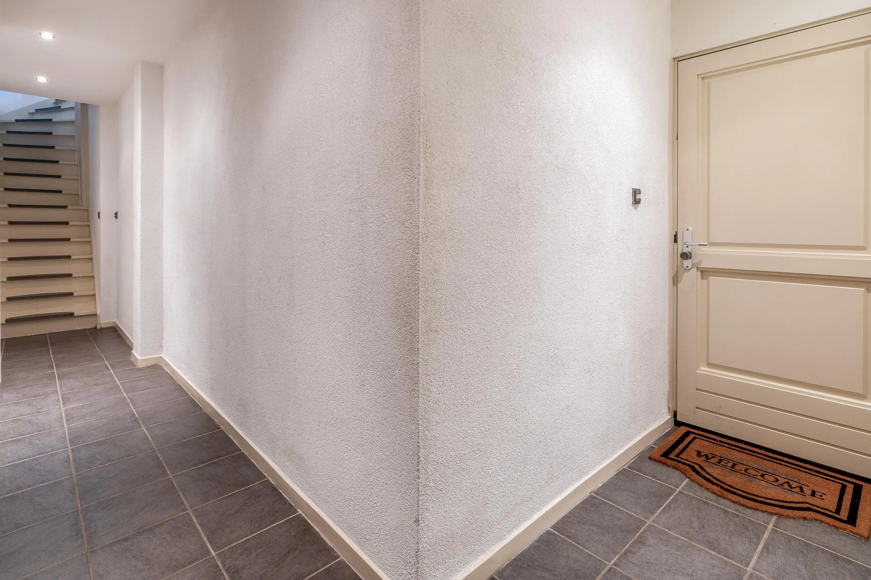 Eigen entree vanaf de straatzijde. Hal met meterkast, bergruimte en trapopgang naar de eerste verdieping.