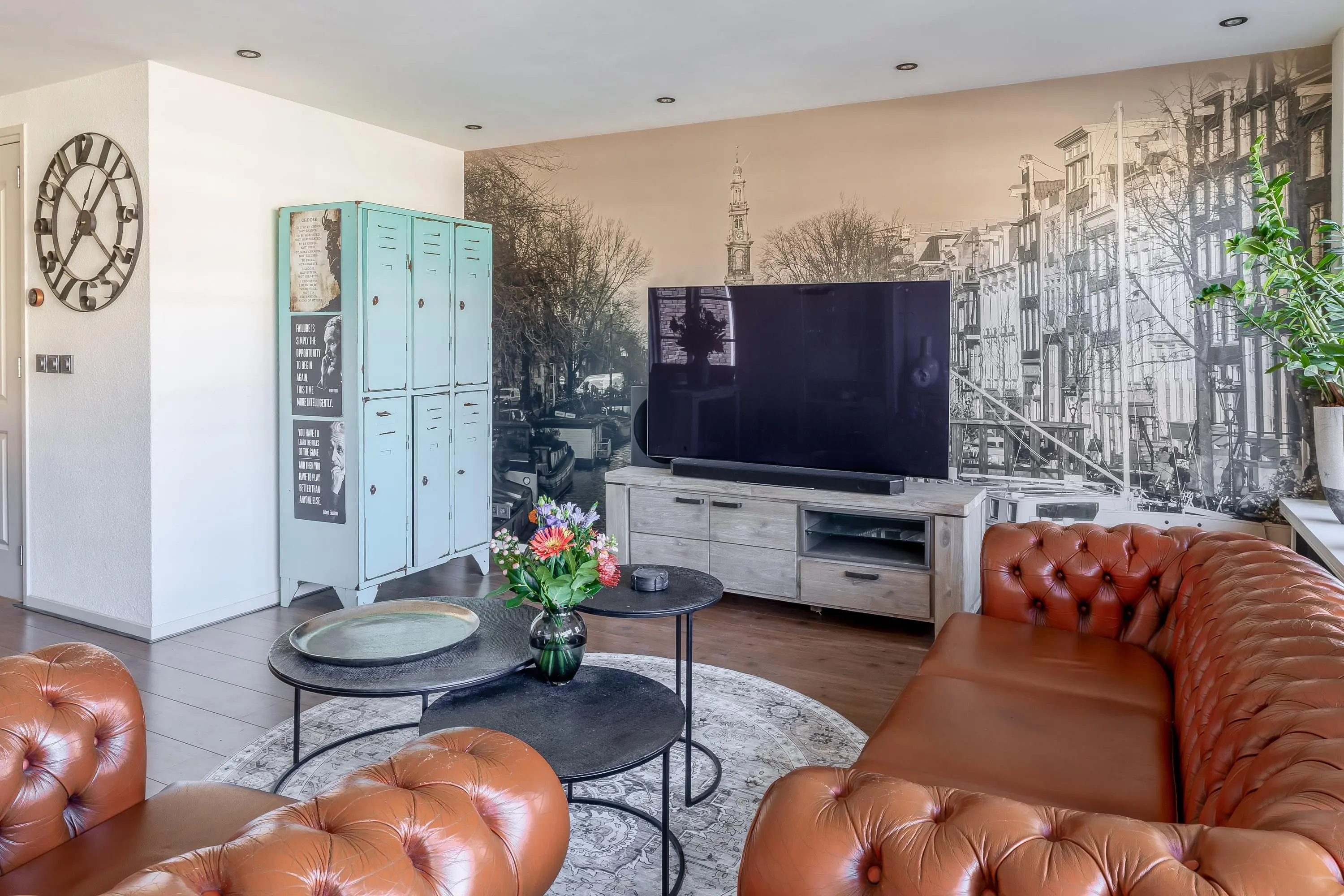 De lichte woonkamer met grote raampartijen zorgt voor een prettige sfeer en biedt een mooi uitzicht over de levendige omgeving. Op de bovenste verdieping bevindt zich het royale dakterras waar u heerlijk kunt genieten van zon, rust en privacy.
