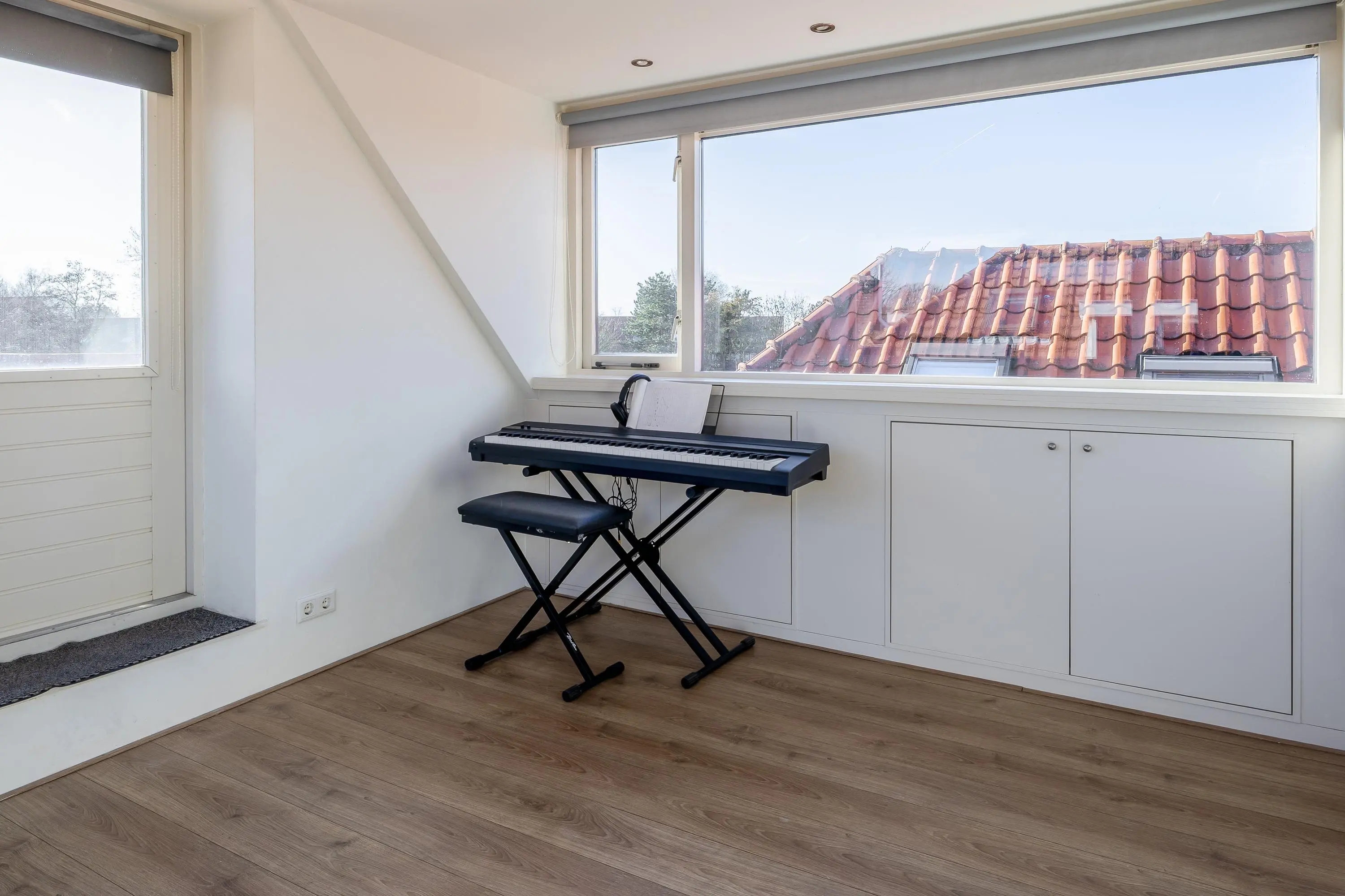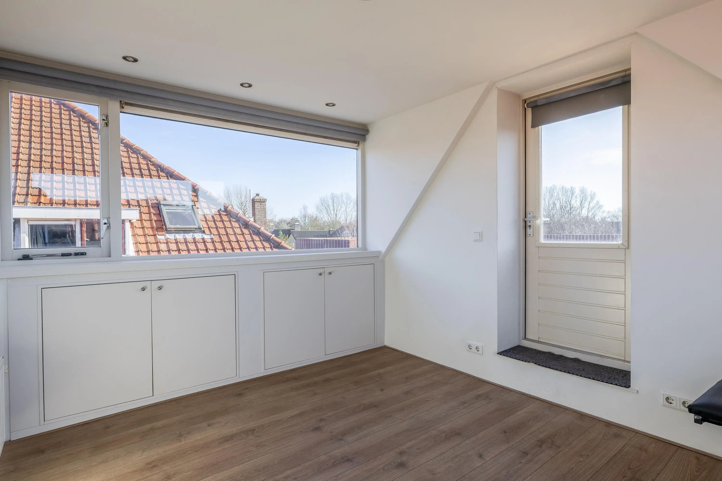 Hier bevinden zich twee slaapkamers met dakkapel en praktische bergruimte achter de knieschotten.