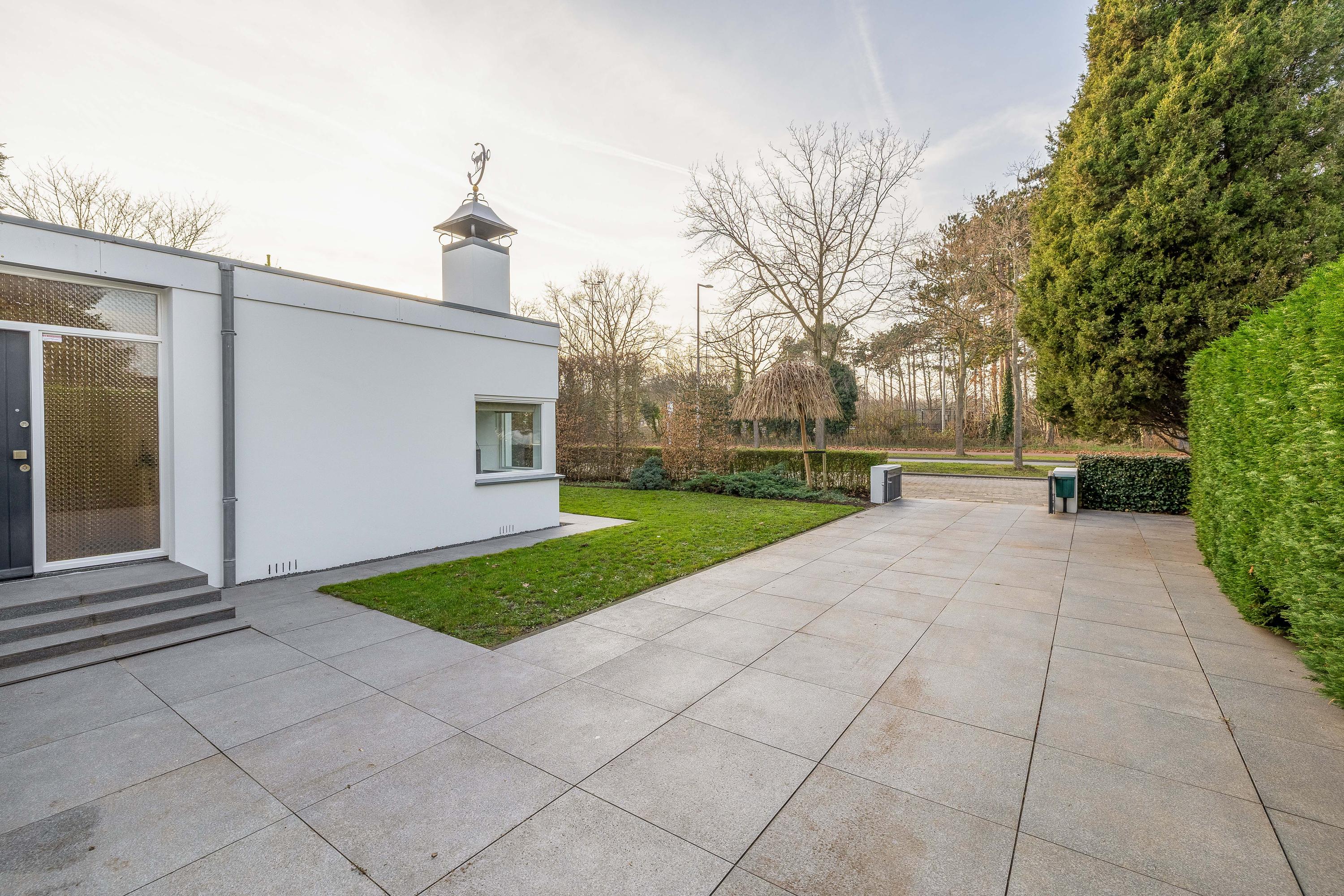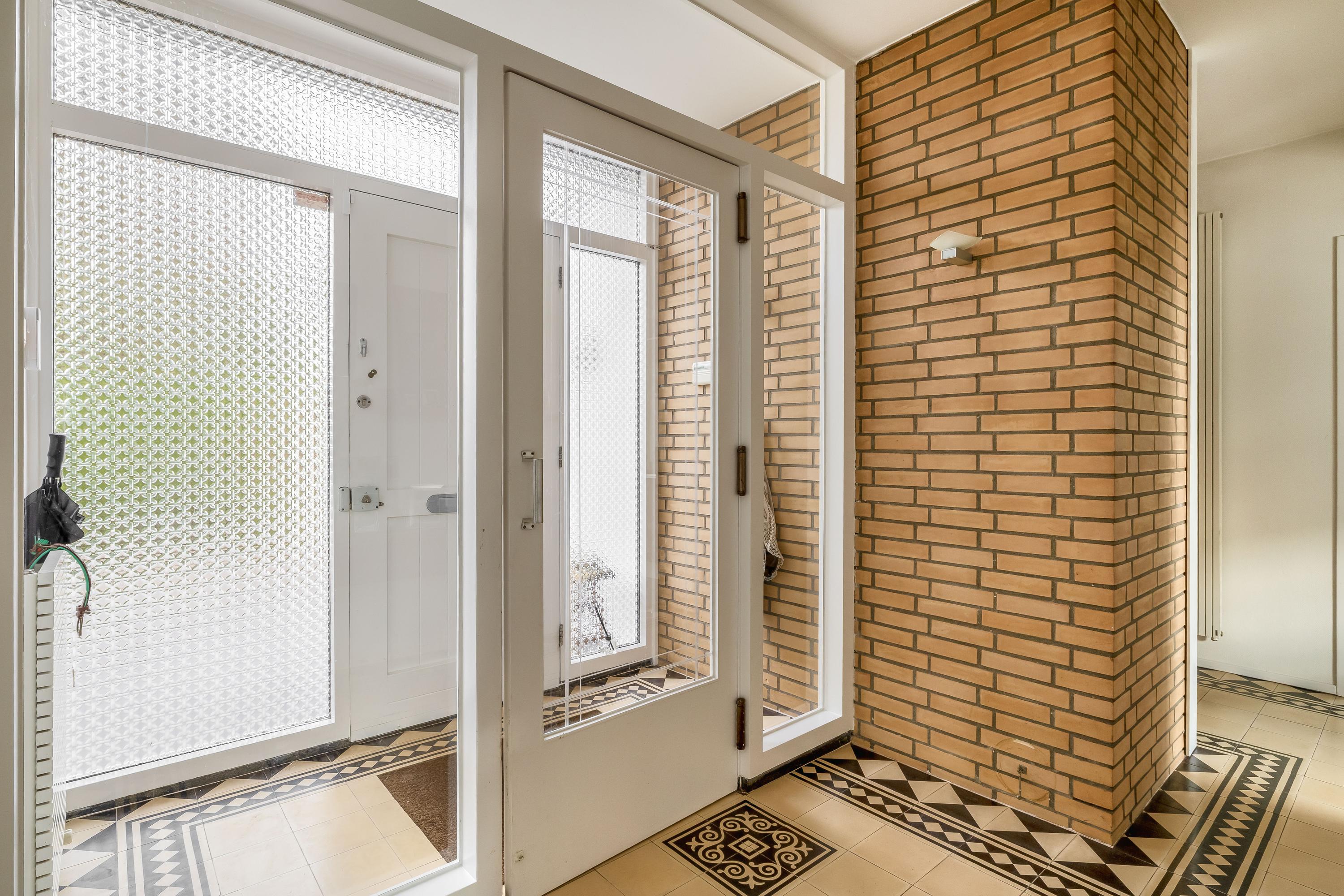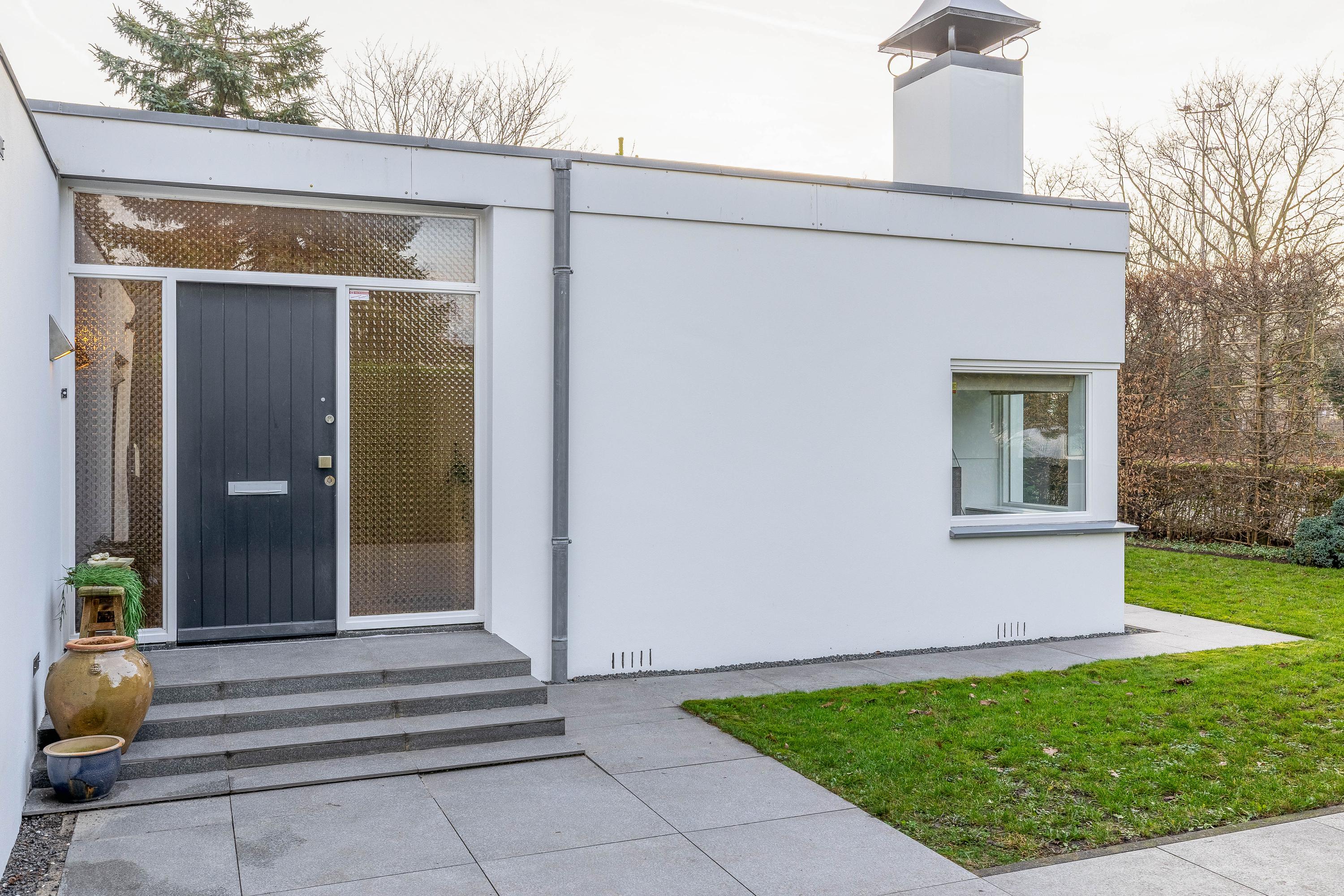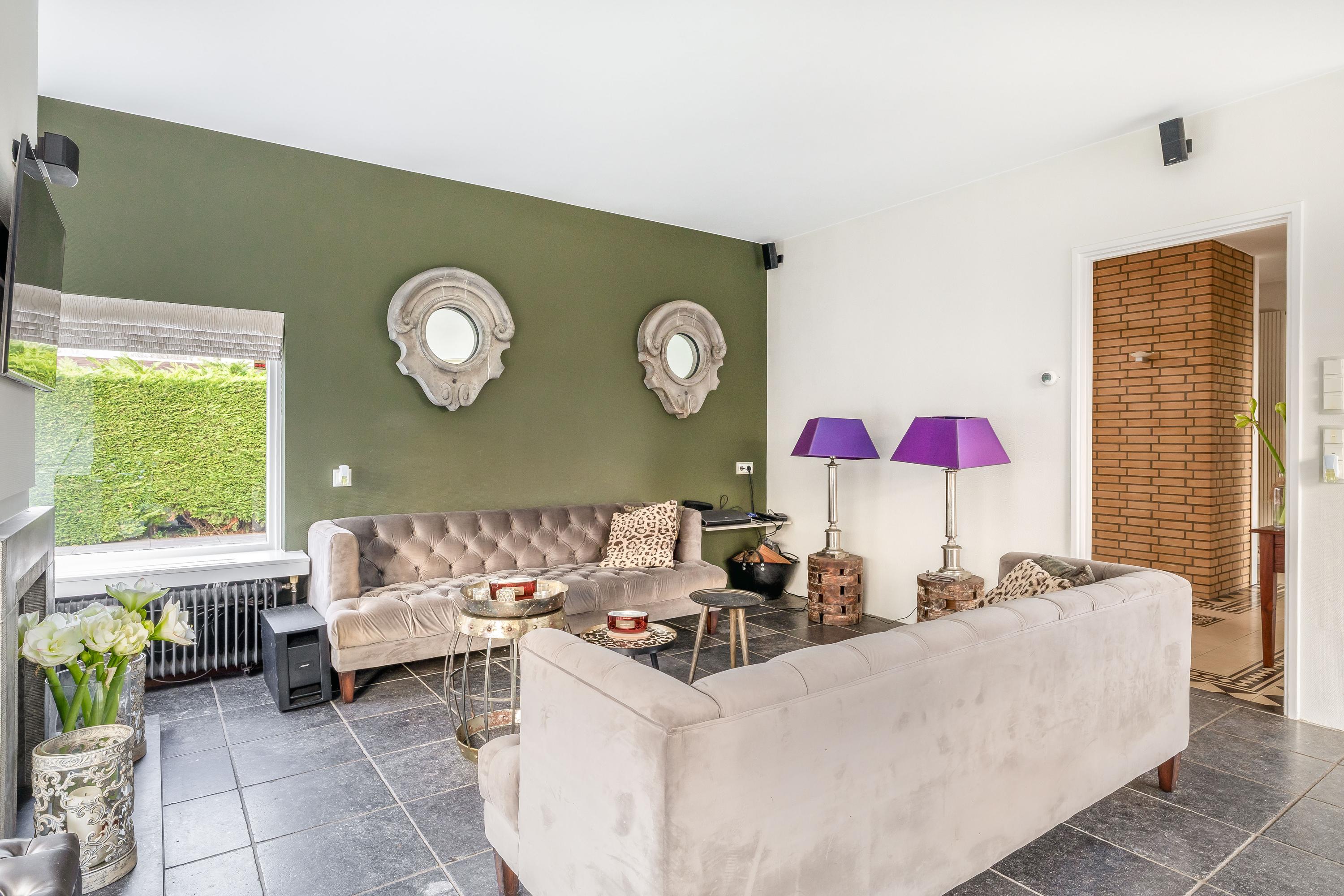 Het voorportaal van de hal zorgt voor een prettige binnenkomst. De vloertegel in meditterane sfeer brengt meteen warmte met zich mee. De woonkamer is heerlijk licht en sfeervol dankzij de grote raampartijen en de prettige plafondhoogte. De grote schuifpui biedt toegang tot het terras. Deze kant ligt heerlijk op het zuiden, dus de gehele dag is hier de zon te vinden. De strakke afwerking wordt mooi gecombineerd met warme materialen, wat zorgt voor een rustige en aangename woonbeleving. Vanuit de woonkamer is er direct zicht op en toegang tot de tuin, waardoor binnen en buiten naadloos in elkaar overlopen.