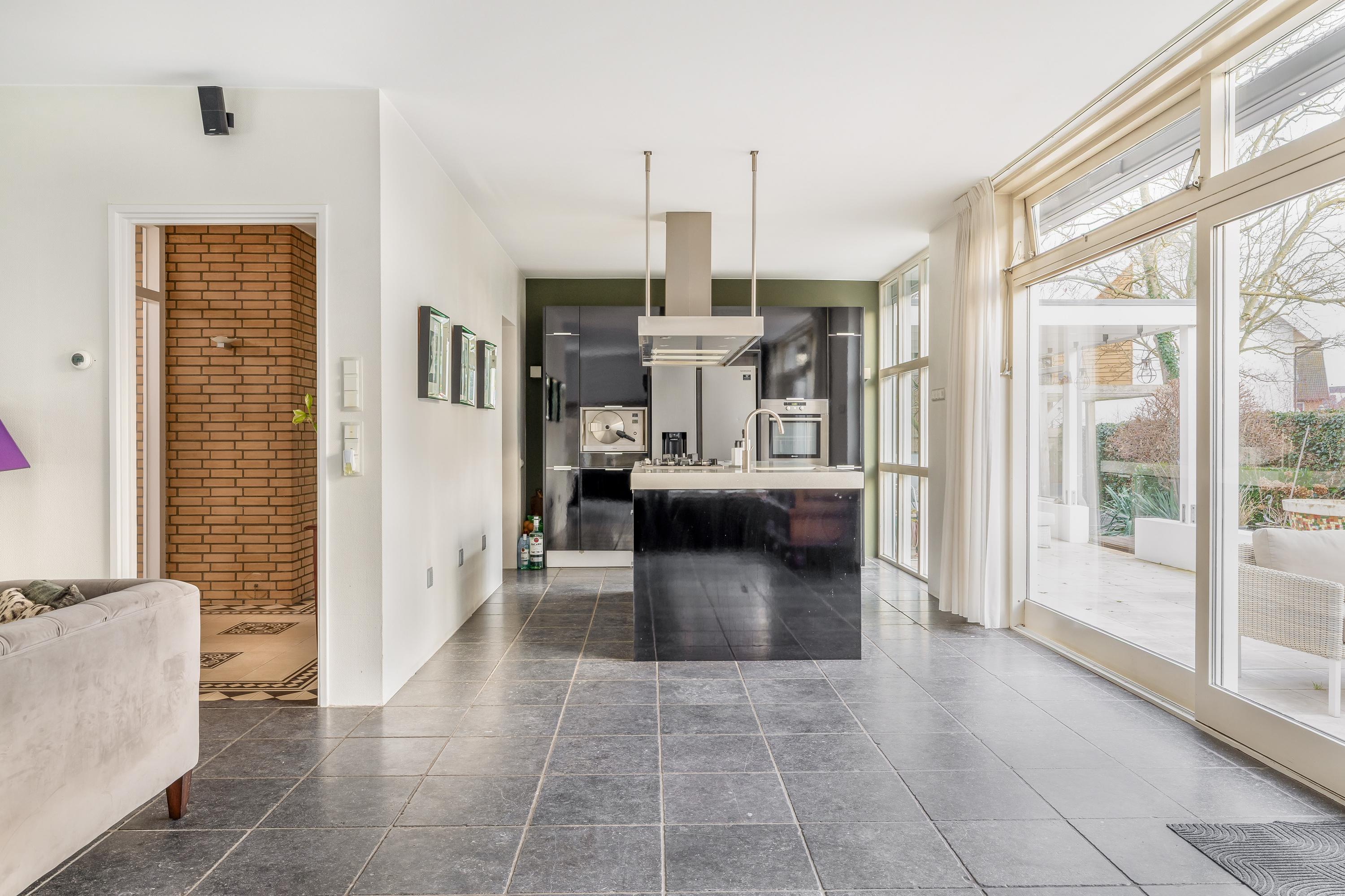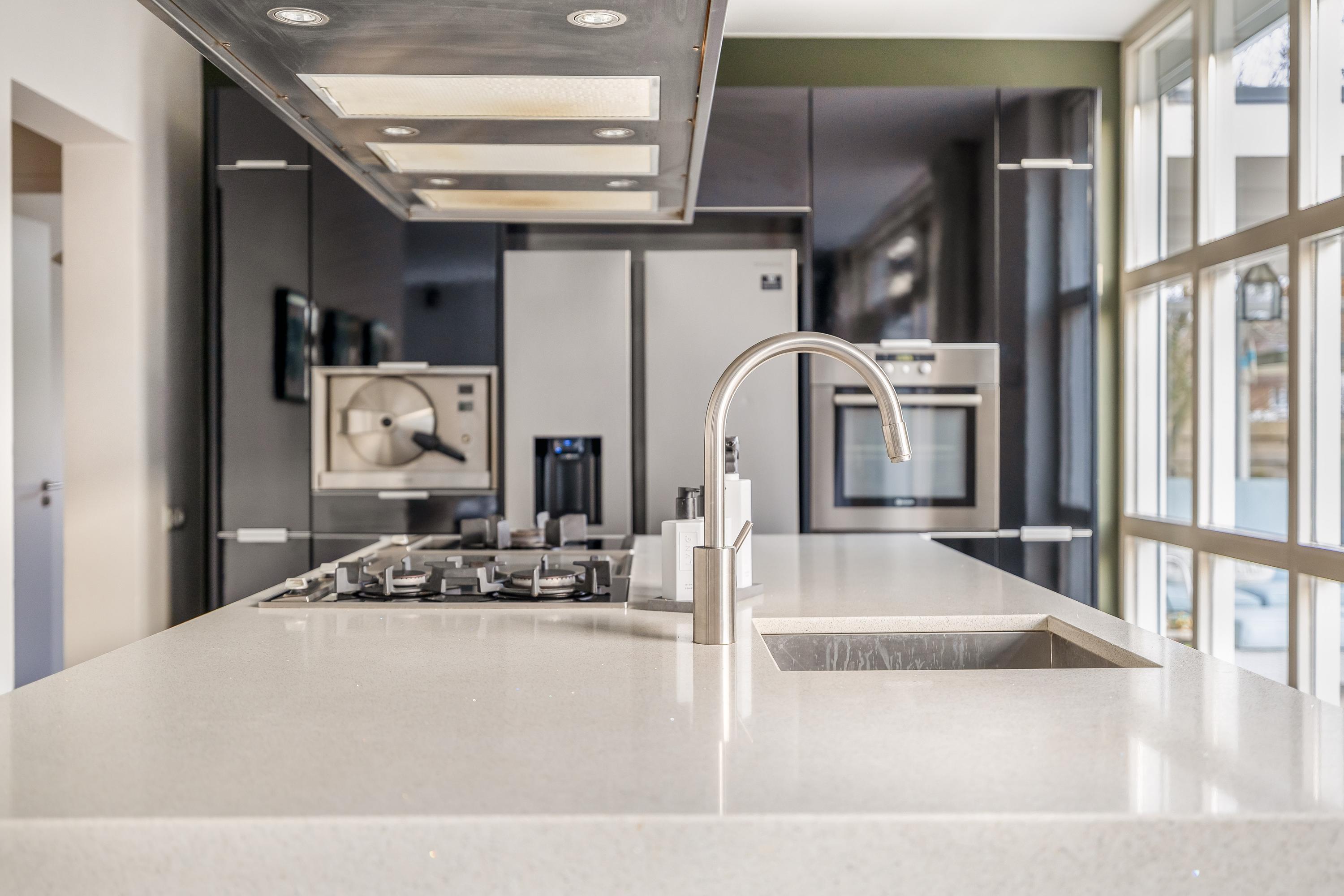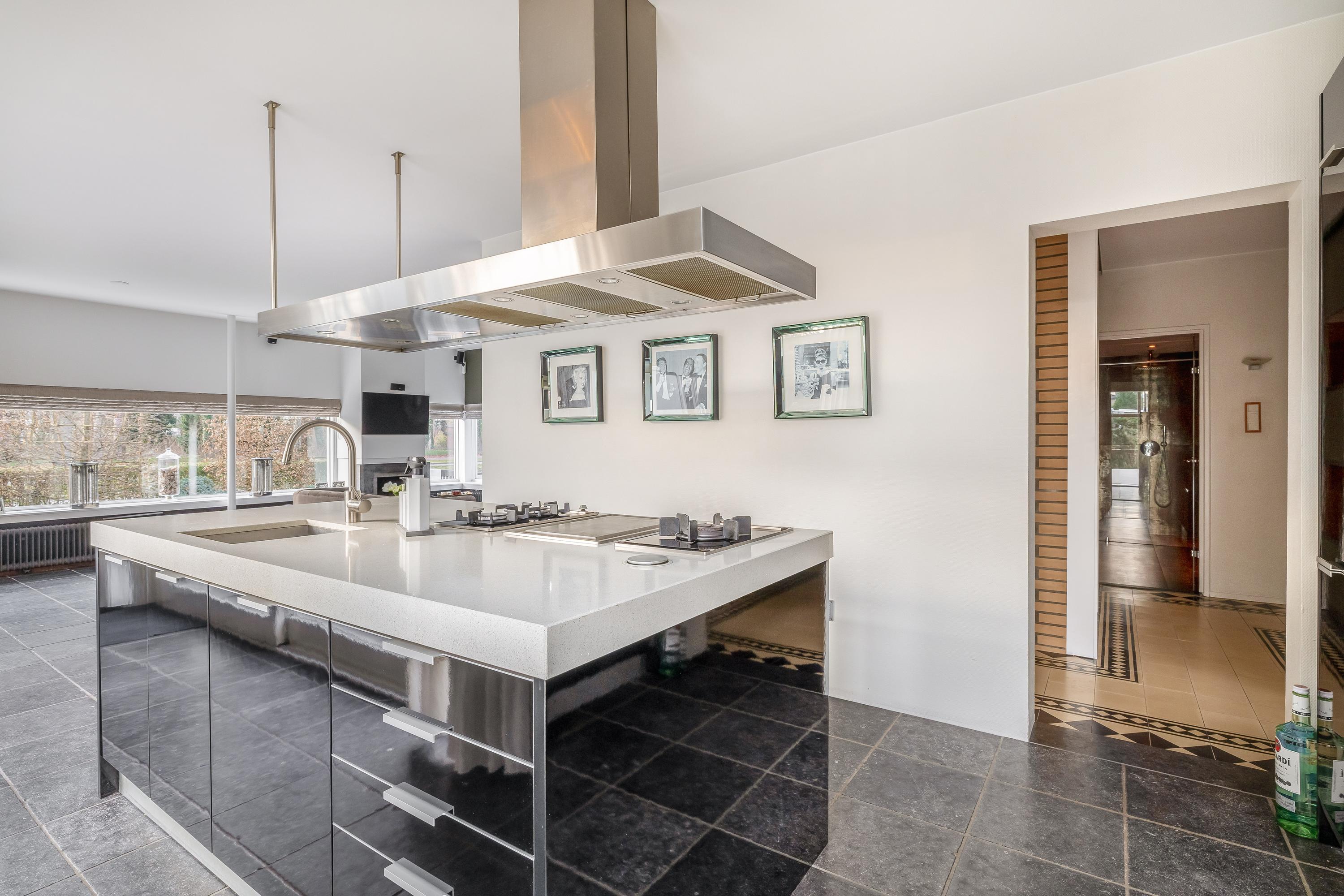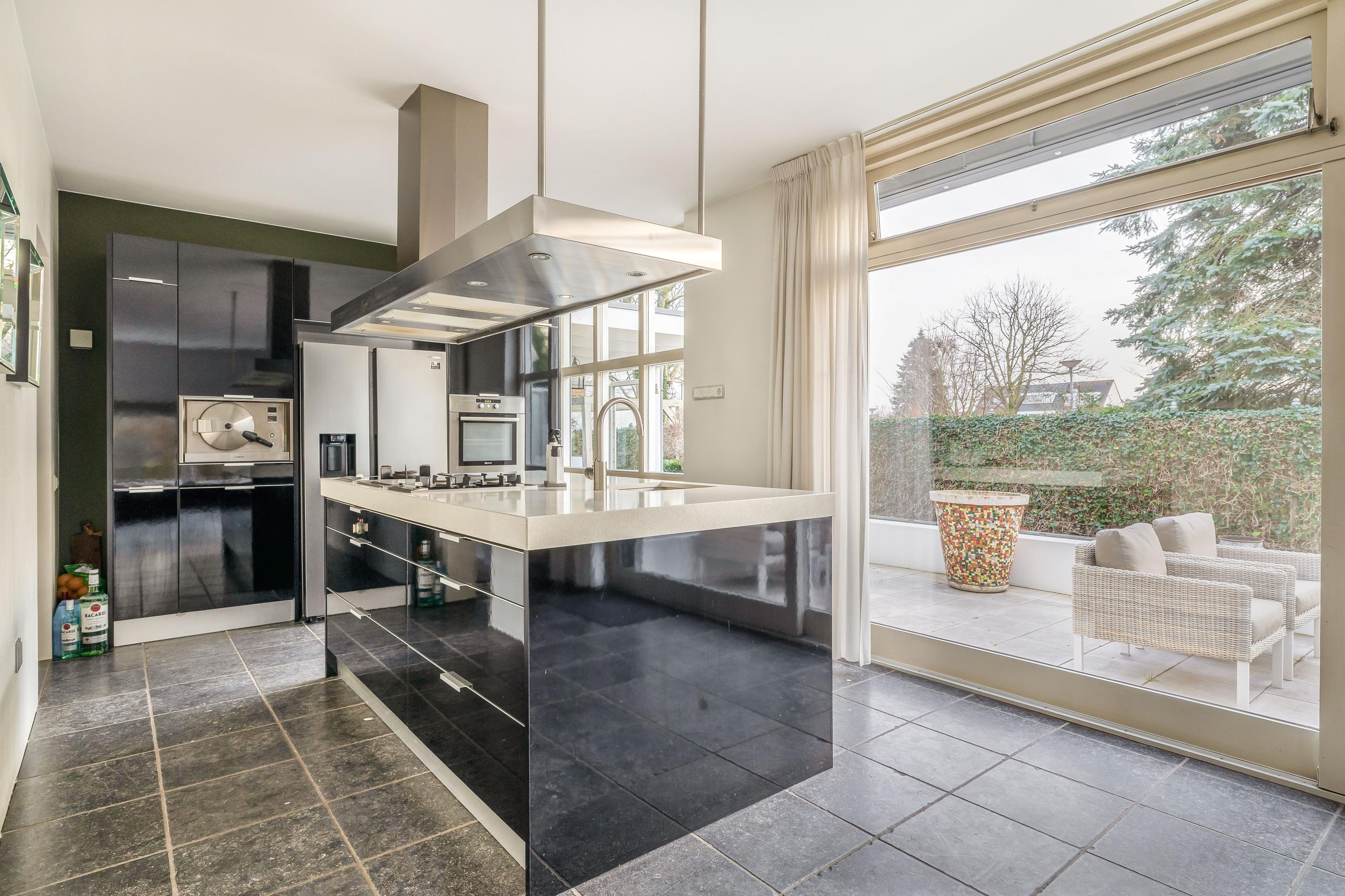 De luxe keuken is uitgevoerd met een royaal kookeiland en voorzien van diverse inbouwapparatuur. Het eiland biedt volop werkruimte en vormt een echte eyecatcher in de woning. Dankzij de grote schuifpui en ramen aan de tuinzijde is de keuken heerlijk licht en staat deze in directe verbinding met het terras. Perfect voor lange zomeravonden en gezellige diners.