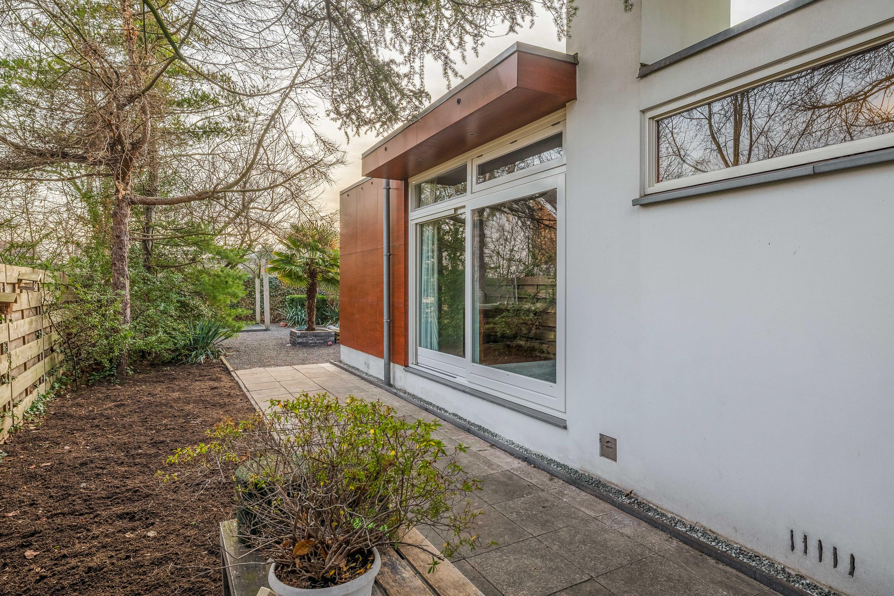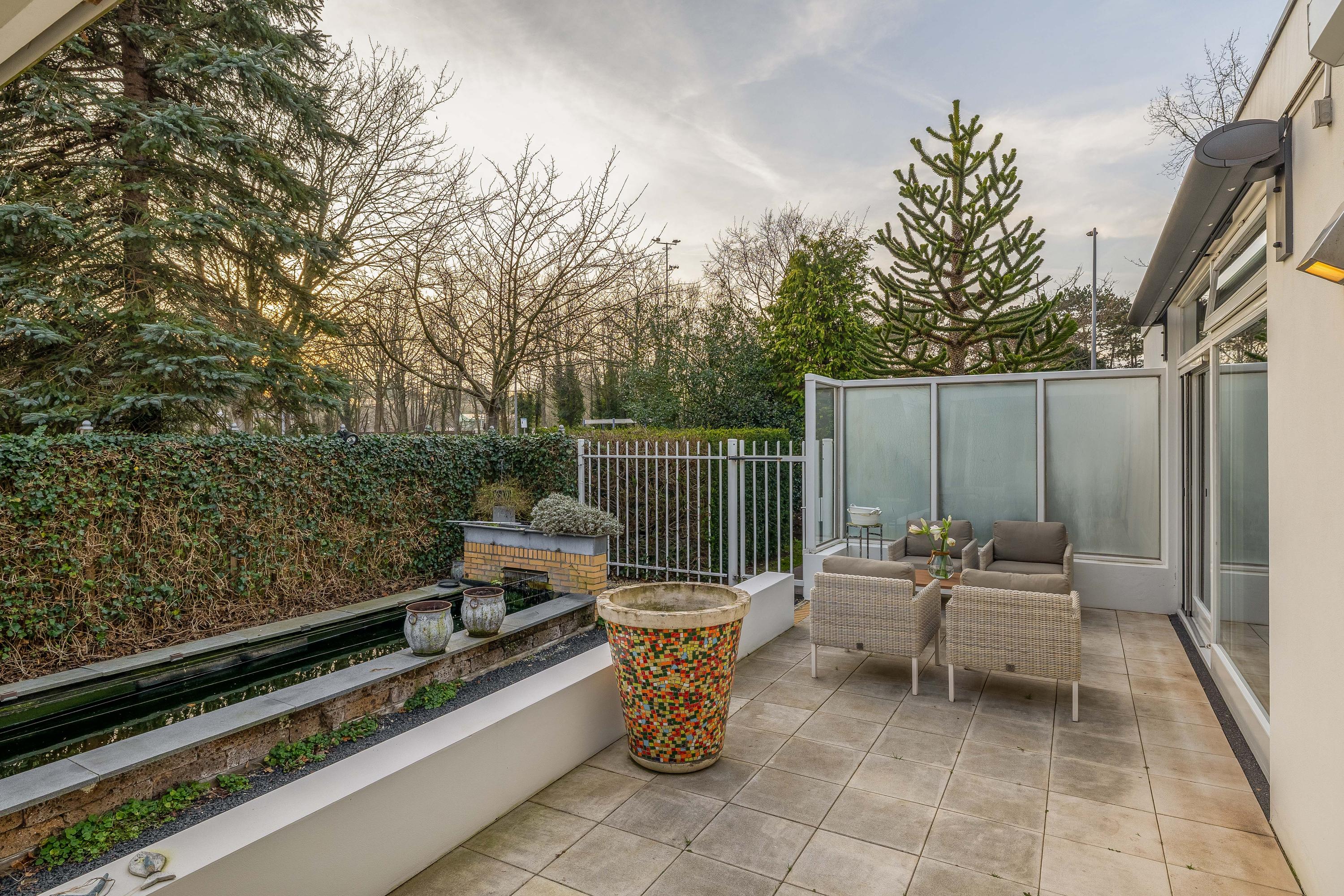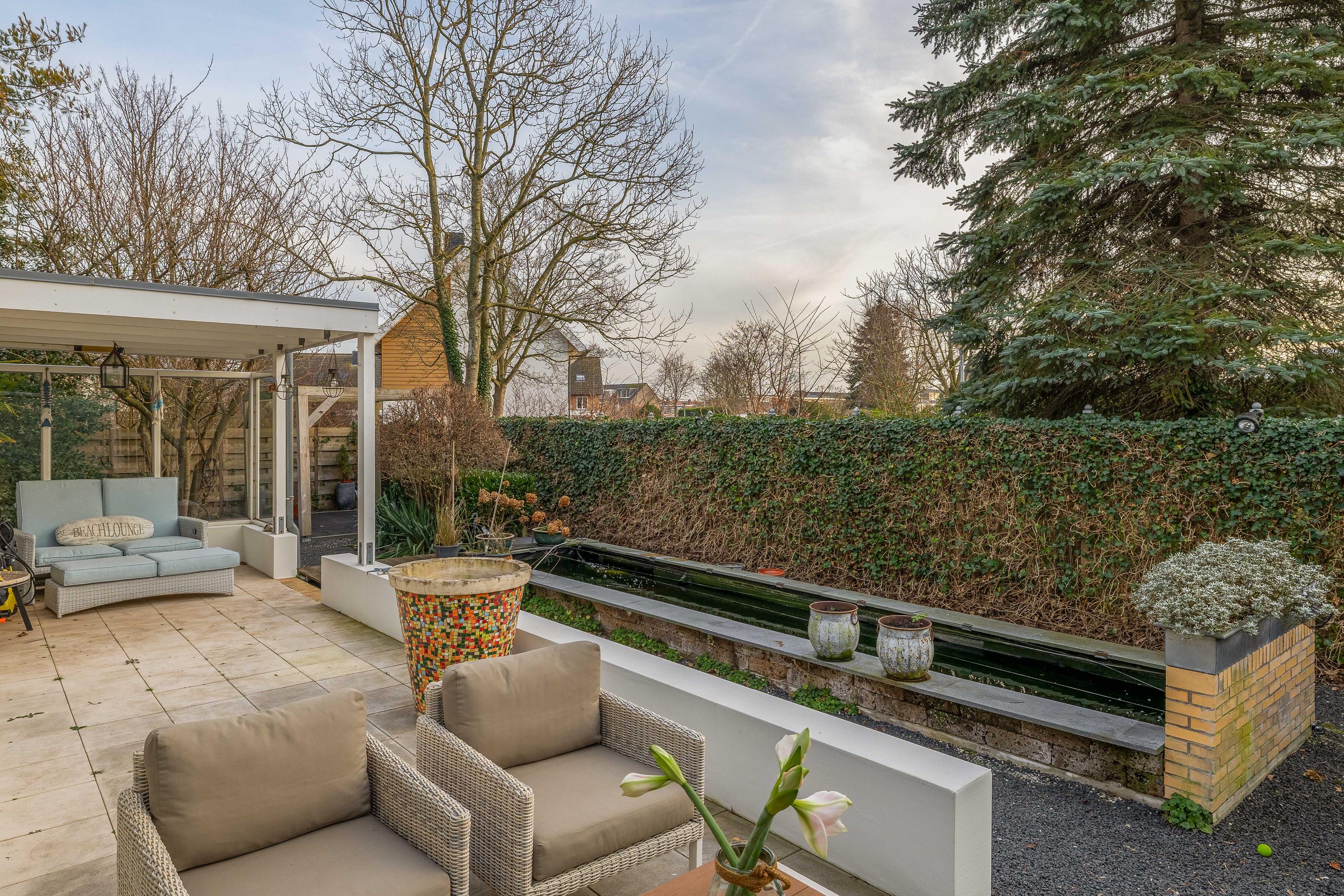 De rondom gelegen tuin is fraai aangelegd en biedt veel privacy. Geen buren die de tuin in gluren. Meerdere terrassen, een overkapping direct aan de woning en diverse zitplekken maken het mogelijk om op elk moment van de dag van zon of schaduw te genieten. De tuin is speels ingericht met waterpartijen, volwassen beplanting en groenblijvende hagen. Dit draagt bij aan een rustige en natuurlijke uitstraling.