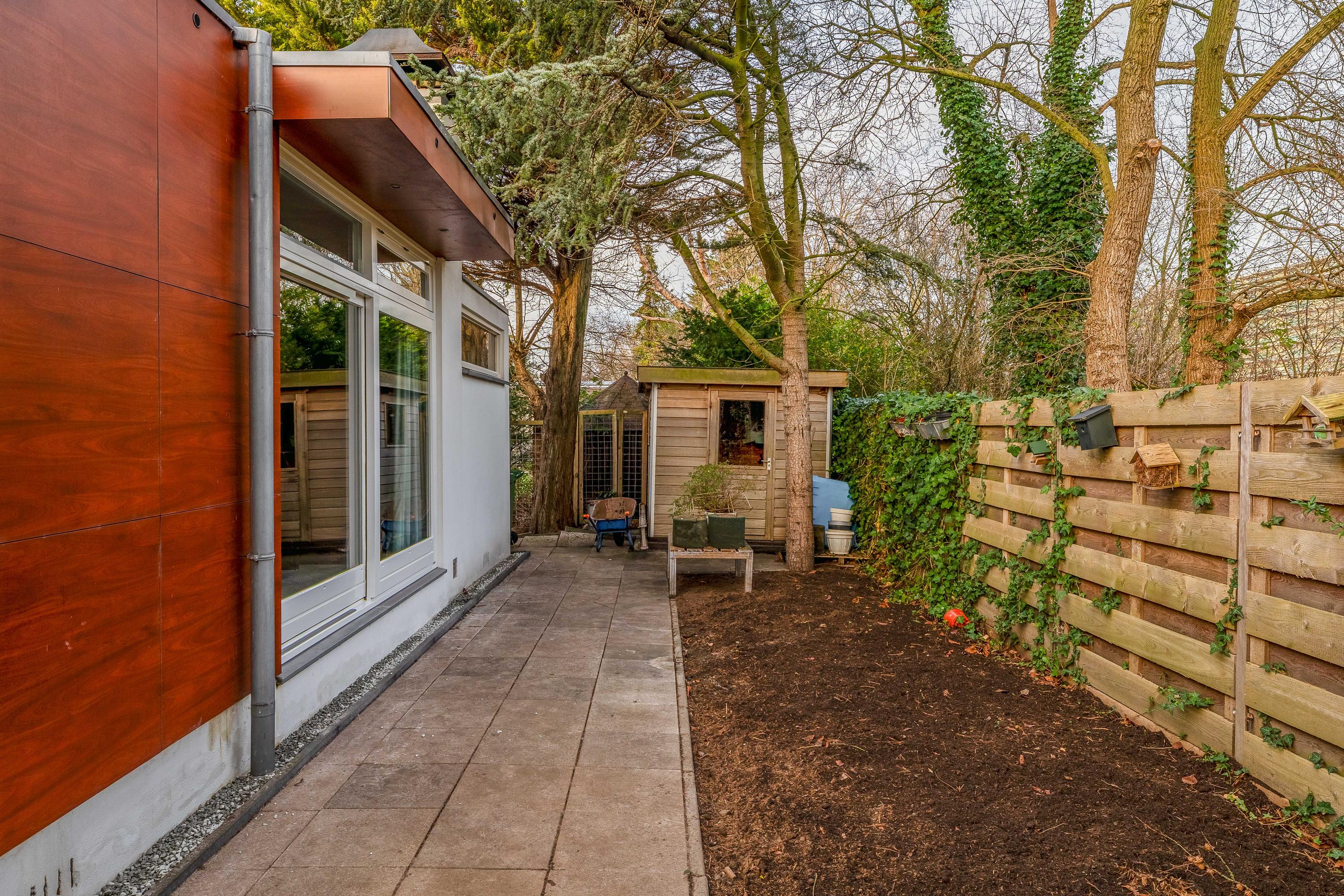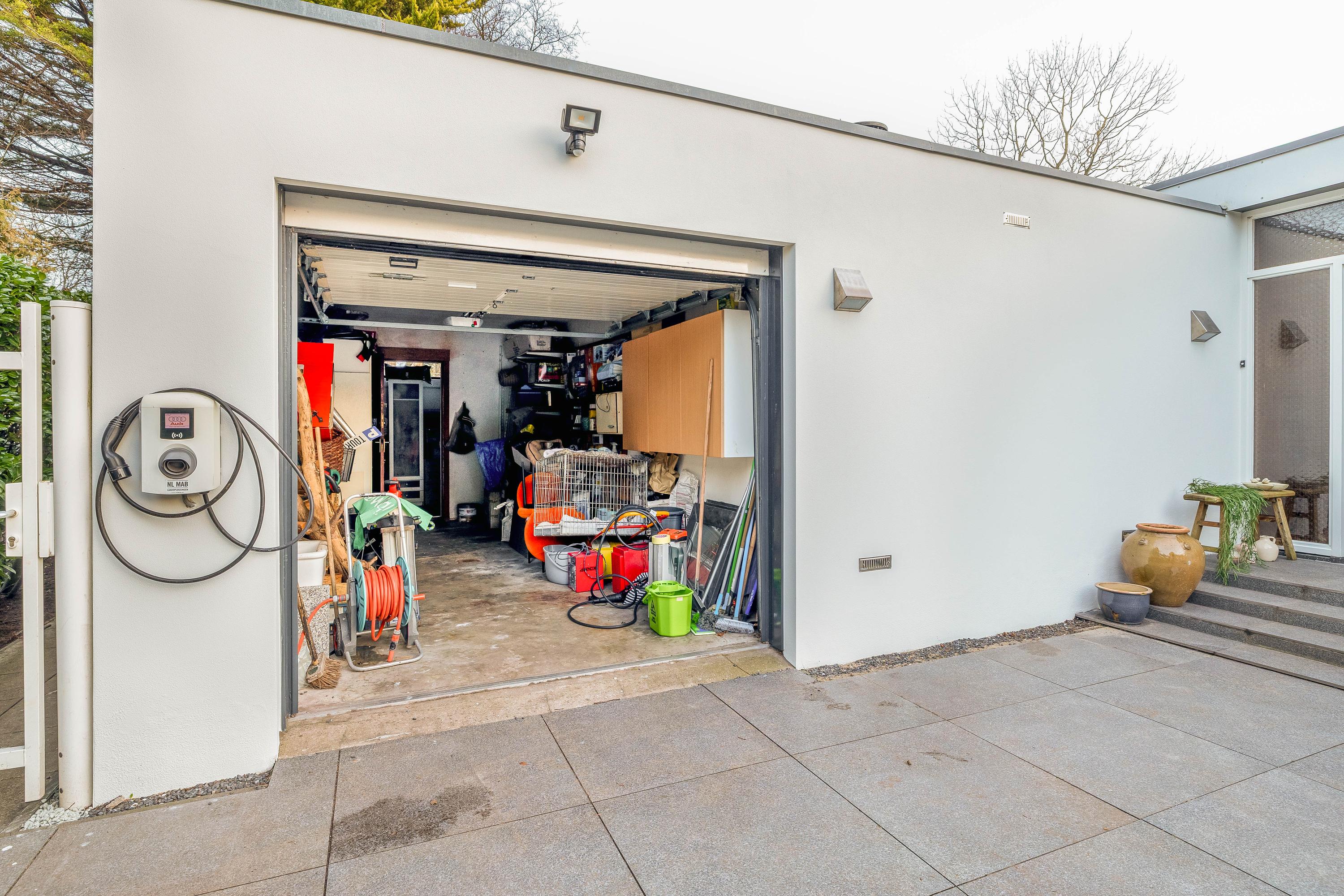 Aangrenzend aan de woning bevindt zich de inpandige garage, geschikt voor het parkeren van een auto en het opbergen van fietsen en hobbyspullen. Bij de garage is tevens een laadpaal aanwezig. Achter de garage bevindt zich een extra berging. Hier is de opstelplaats van de wasmachine en droger gesitueerd. De cv-ketel bevindt zich hier ook.