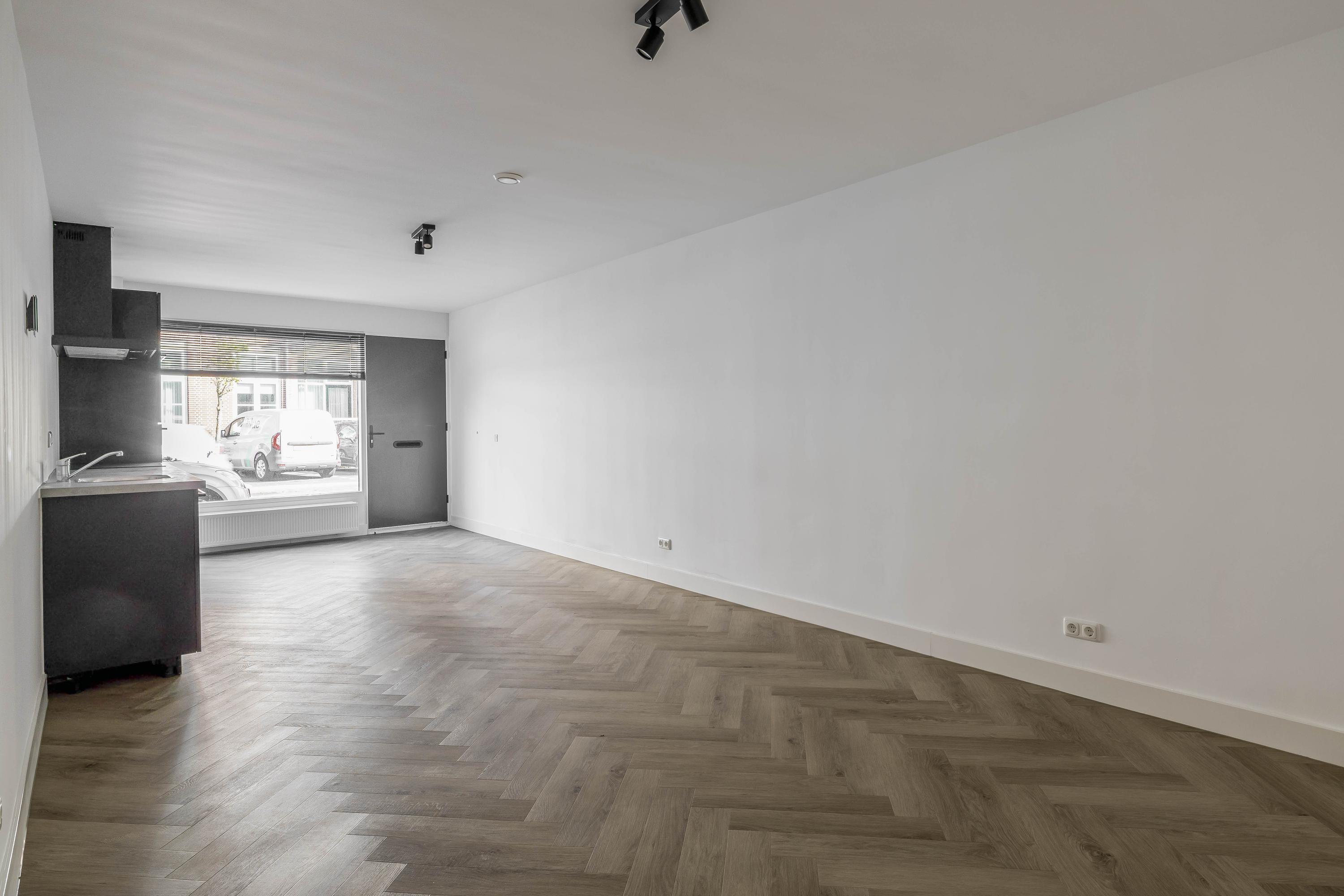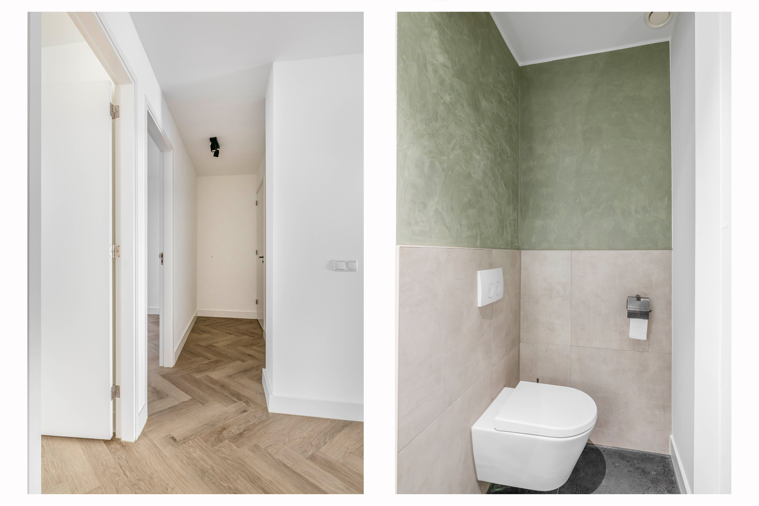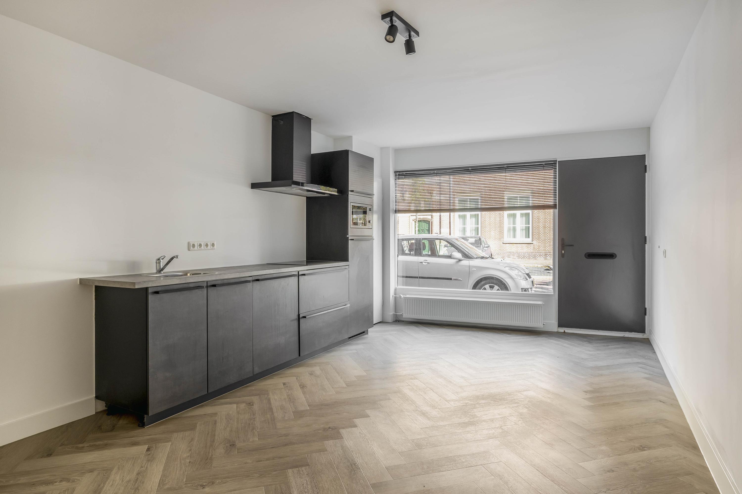 Het appartement is recent volledig gerenoveerd en heeft een moderne, industriële look met visgraat pvc-vloer en strak gestucte wanden. De woonkamer is licht en sfeervol dankzij de grote raampartij aan de voorzijde. Hier kun je een fijne zithoek creëren en hebt bovendien direct contact met de levendige straat.