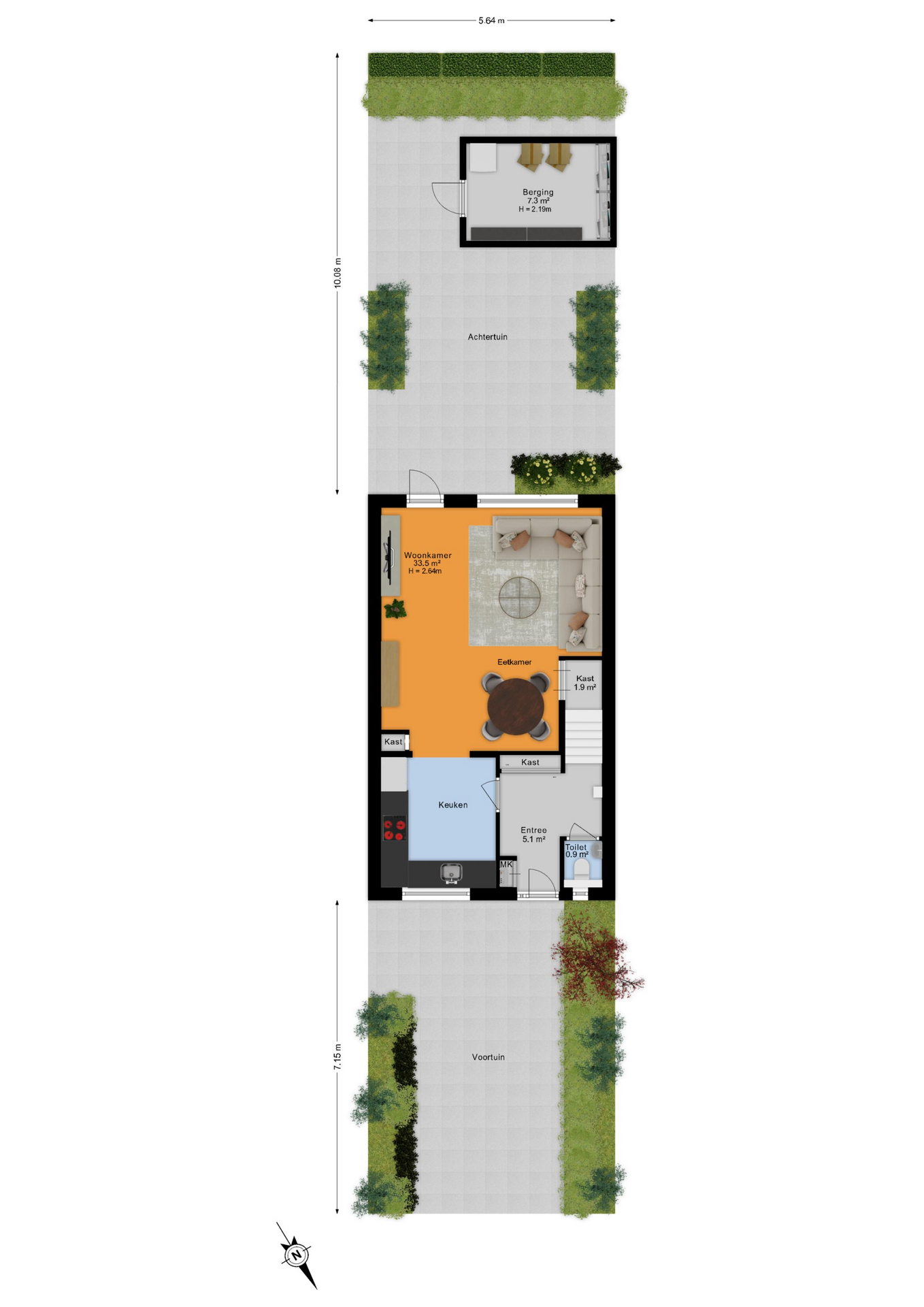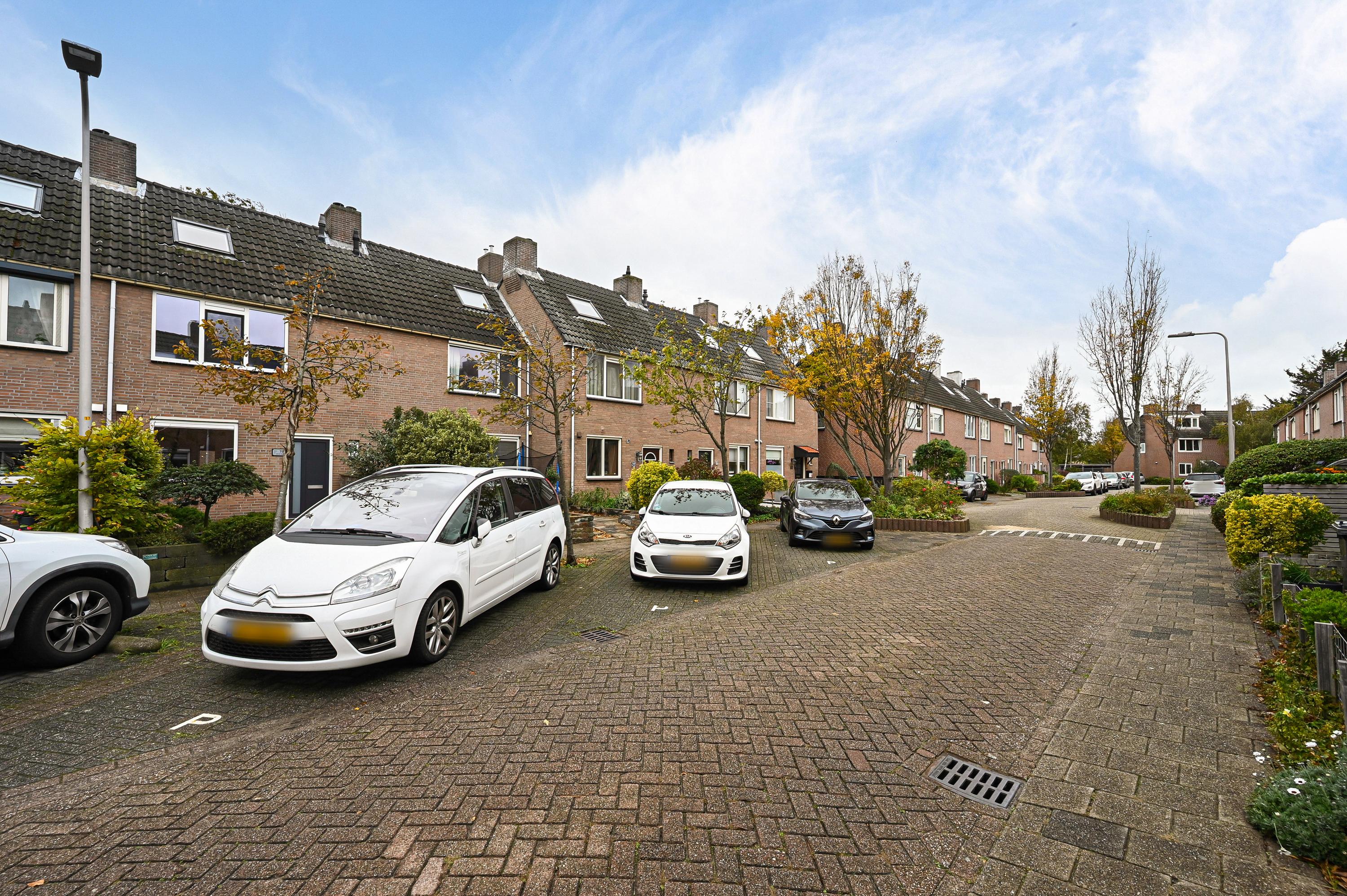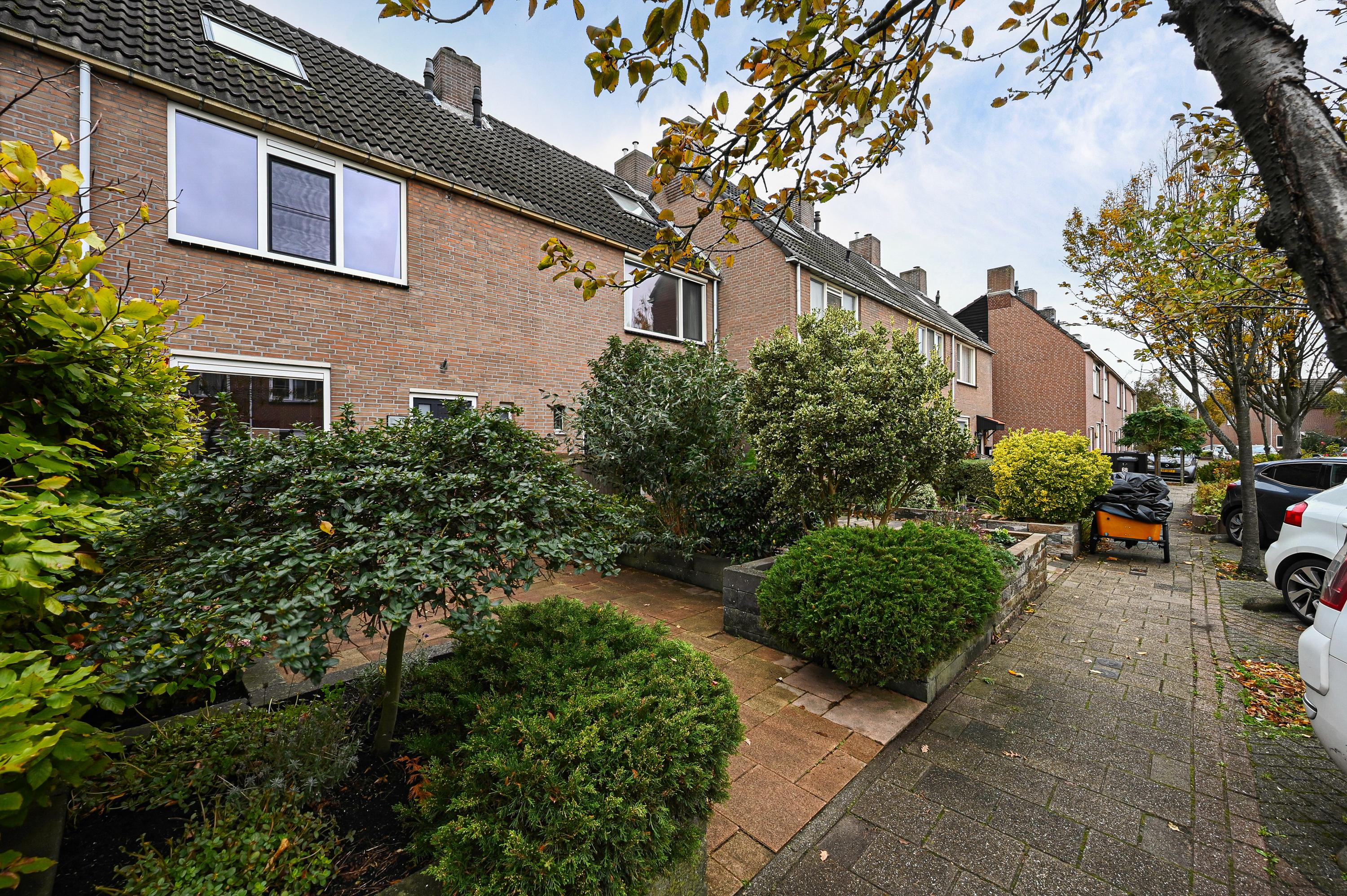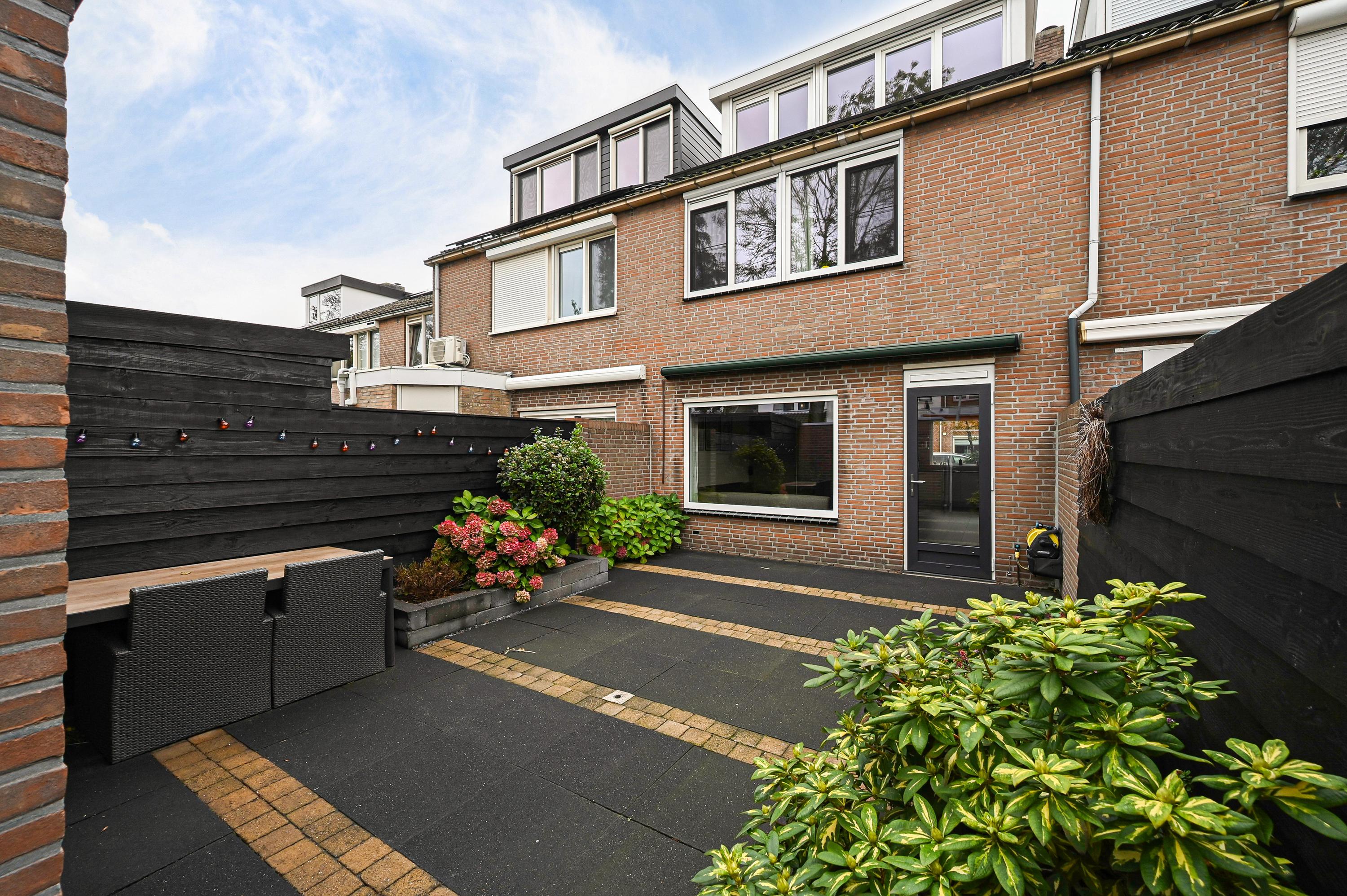 De achtertuin ligt gunstig op de zon, is verzorgd aangelegd met bestrating en beplanting, en beschikt over een praktische berging met vernieuwd dak (2016) en achterom. Aan de voorzijde is ruimte om te parkeren. Dankzij de buitenzonwering en elektrische screens kun je ook op warme dagen comfortabel buiten zitten.