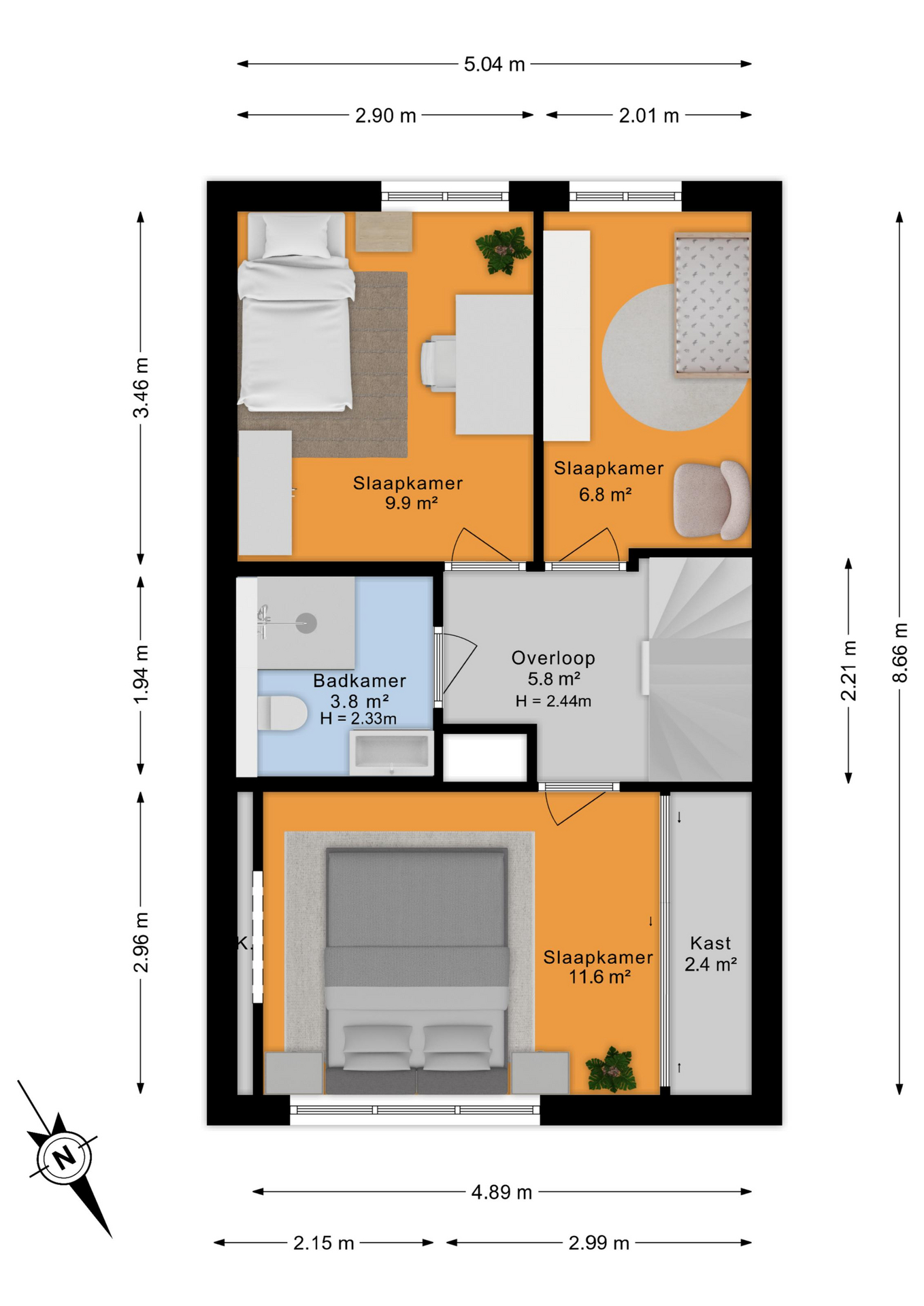 Via een vaste trap bereik je de ruime tweede verdieping waar in 2021 een grote dakkapel is geplaatst (kunststof, volledig geïsoleerd). Hier bevindt zich een vierde slaapkamer met airconditioning (Daikin, 2024) en volop bergruimte. De cv-ketel (Vaillant HR-107, 2014) en wasruimte zijn keurig afgewerkt op de overloop.