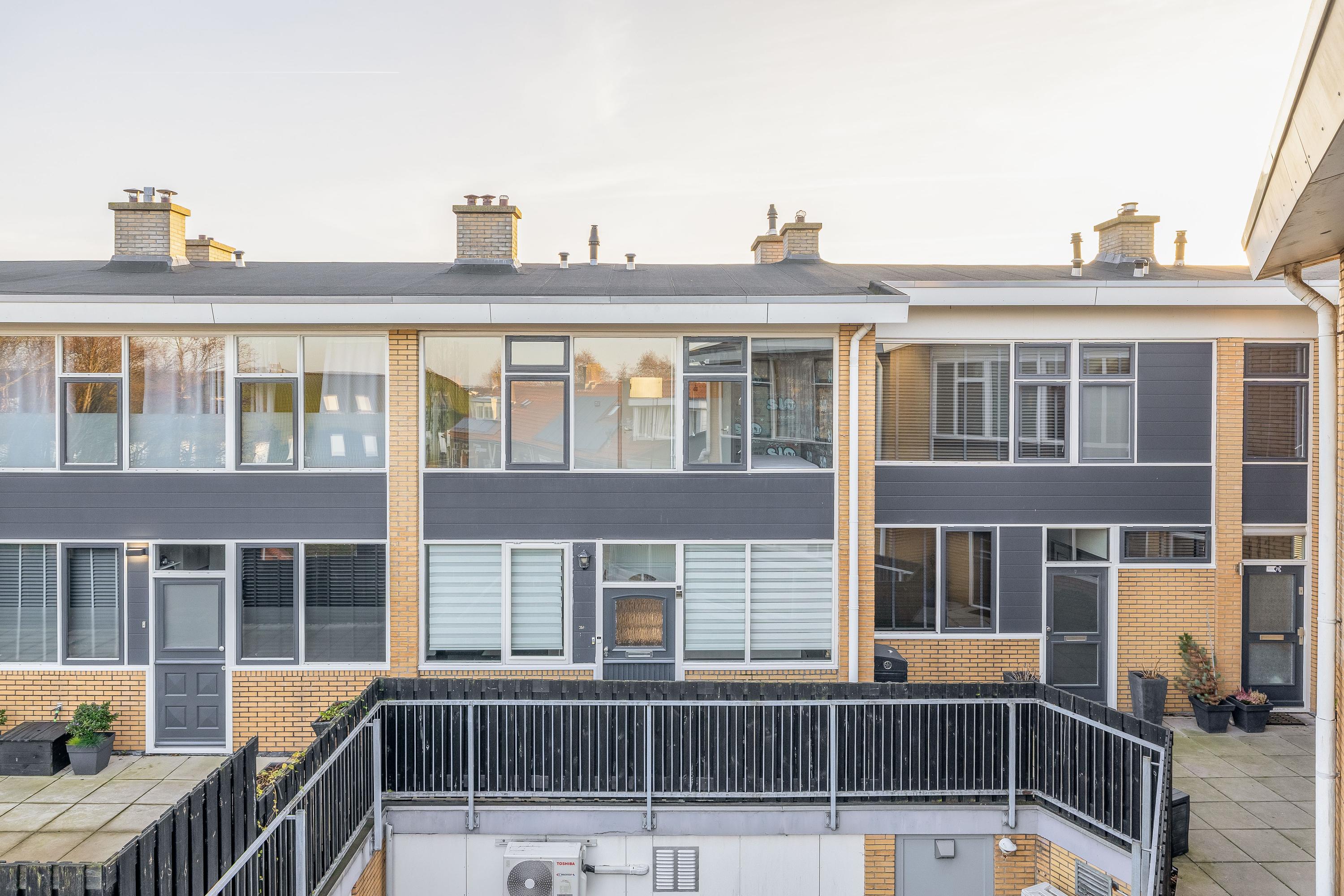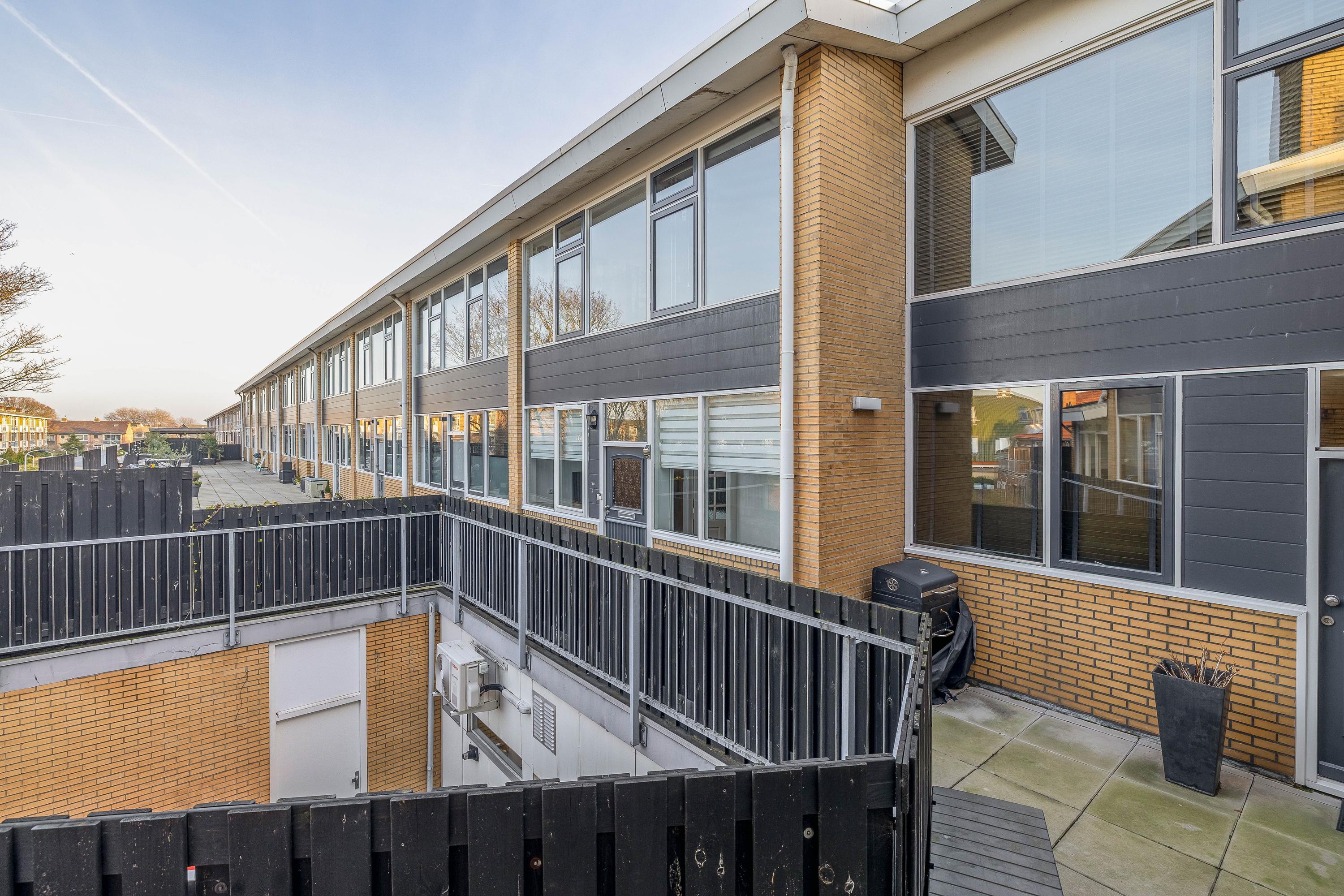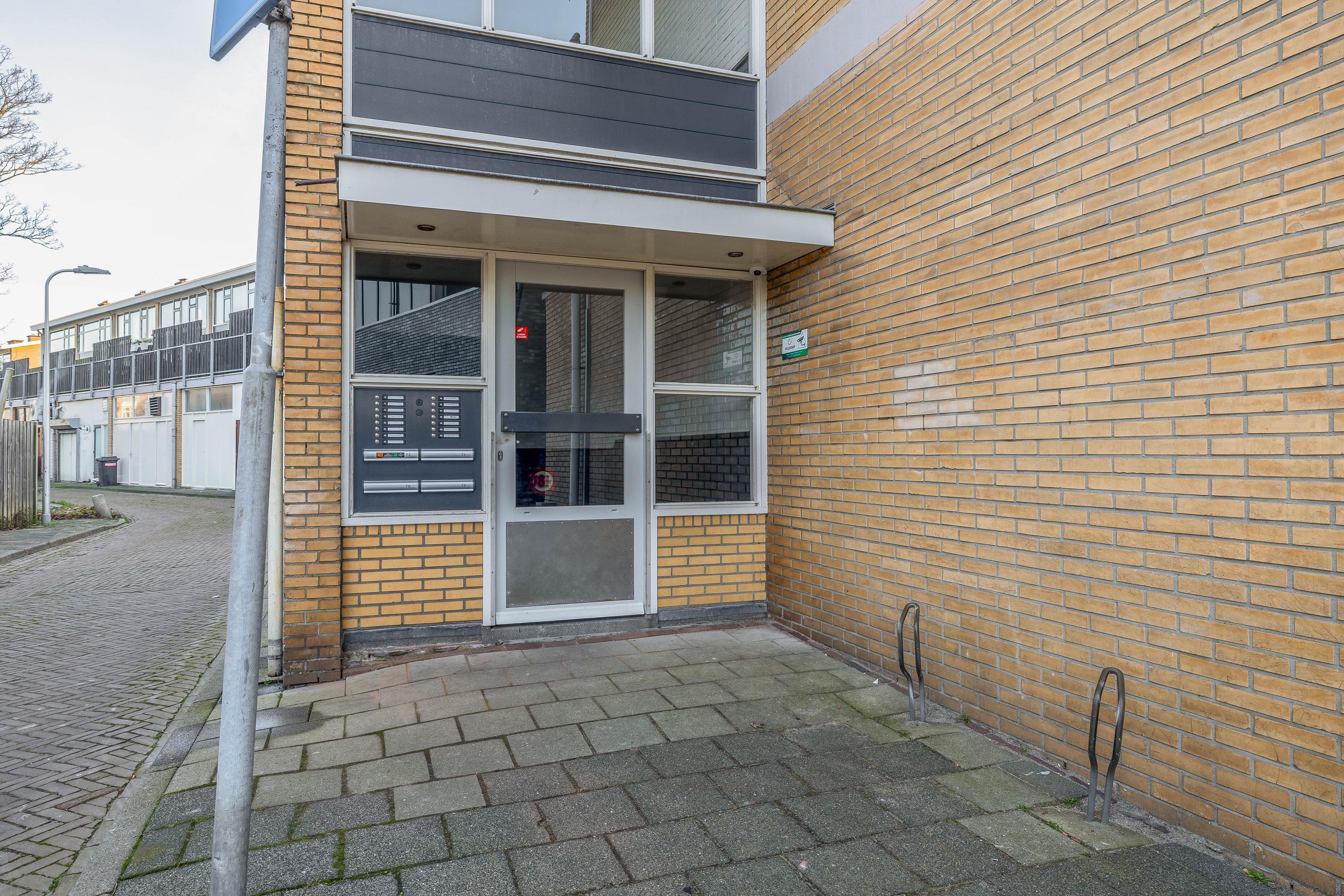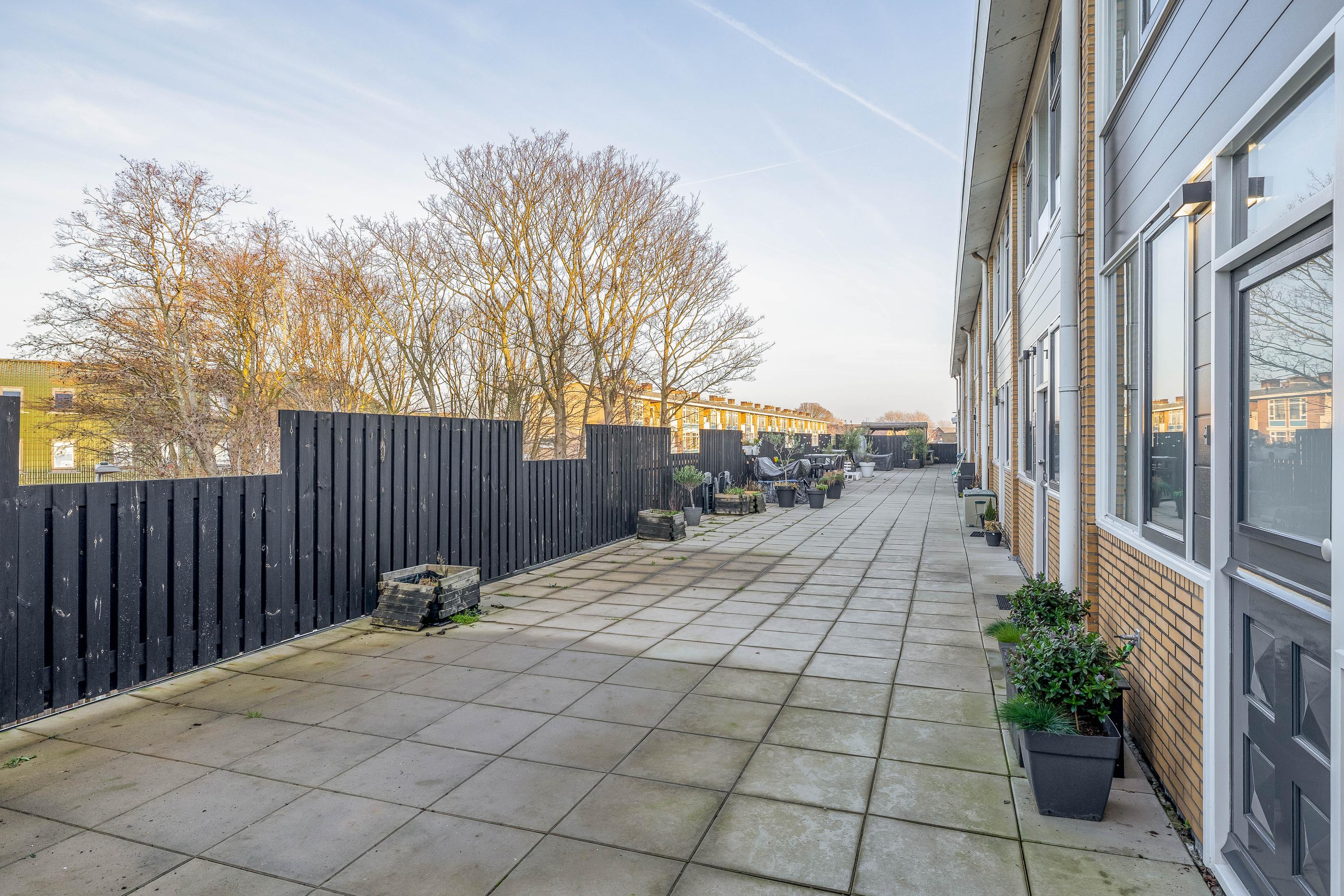 Het appartement maakt deel uit van een appartementencomplex met een gesloten portiek. Het complex is bereikbaar via een trap en biedt toegang vanaf twee buitenzijdes (Jan Barendselaan en de Dahliastraat), wat zorgt voor een praktische en overzichtelijke entree. Bij de voordeur op de 1e verdieping bevindt zich een gedeeld terras aan de voorzijde. Aan onderhoud is de afgelopen jaren ook voldoende aandacht besteed. Het bitumen dak is hersteld in 2024 en de buitenzijde van de woning is in 2022 opnieuw geschilderd, wat bijdraagt aan een verzorgde uitstraling en een goede staat van onderhoud door de VvE.