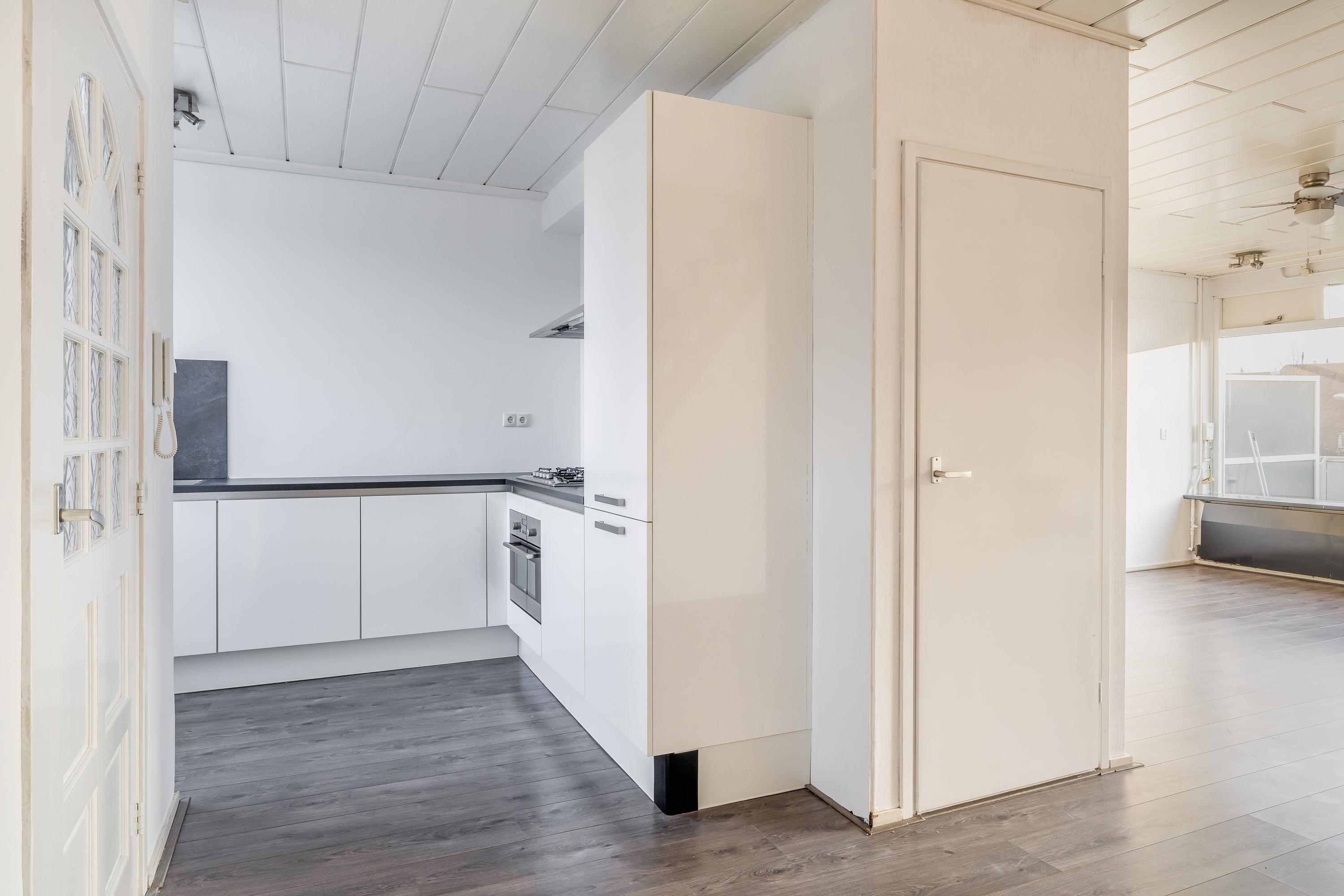 Aansluitend bevindt zich de keuken, die in 2017 is vernieuwd. De keuken is strak en modern uitgevoerd en voorzien van diverse inbouwapparatuur, waaronder een gaskookplaat, afzuigkap, oven en spoelbak. In de keuken is een boiler aanwezig ten behoeve van het warme water. Dankzij de praktische opstelling en het ruime werkblad is dit een functionele en prettige plek om te koken.