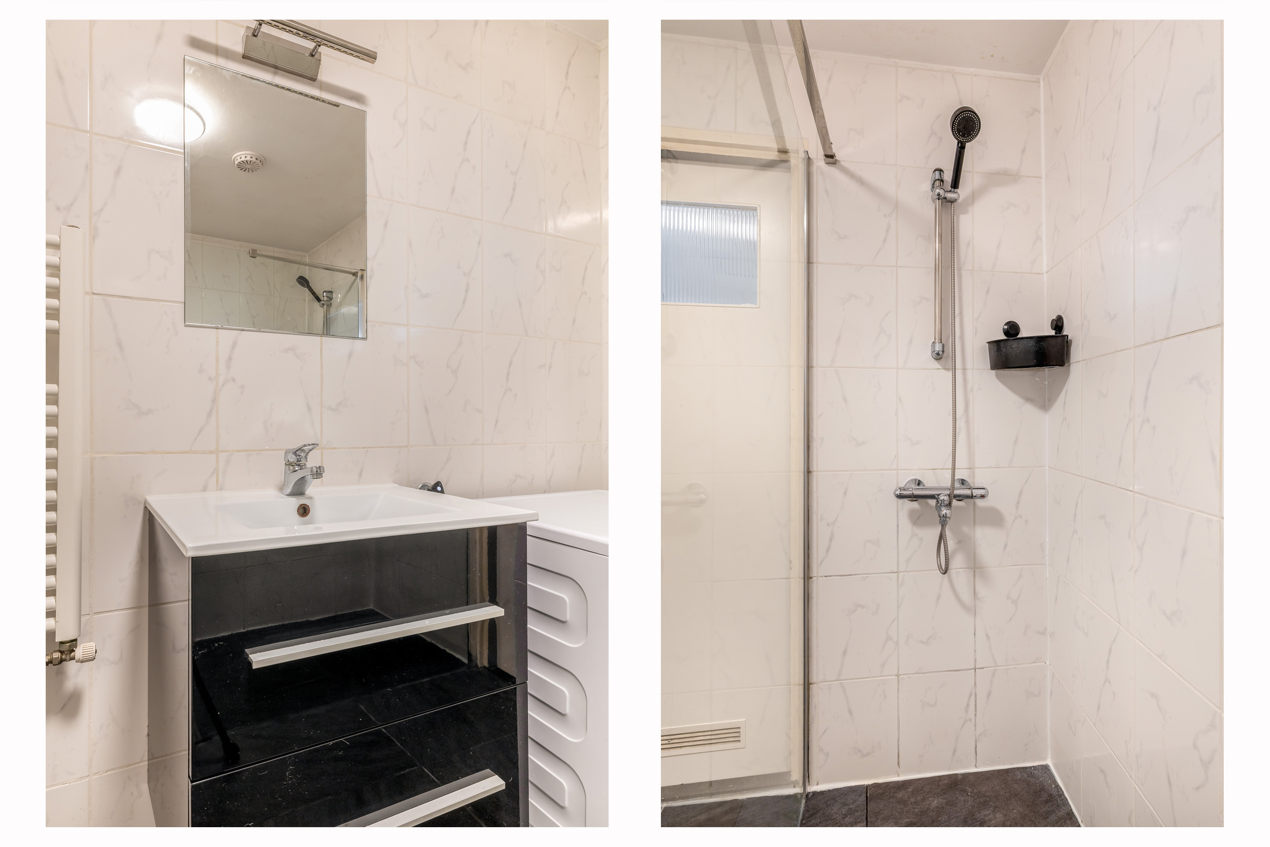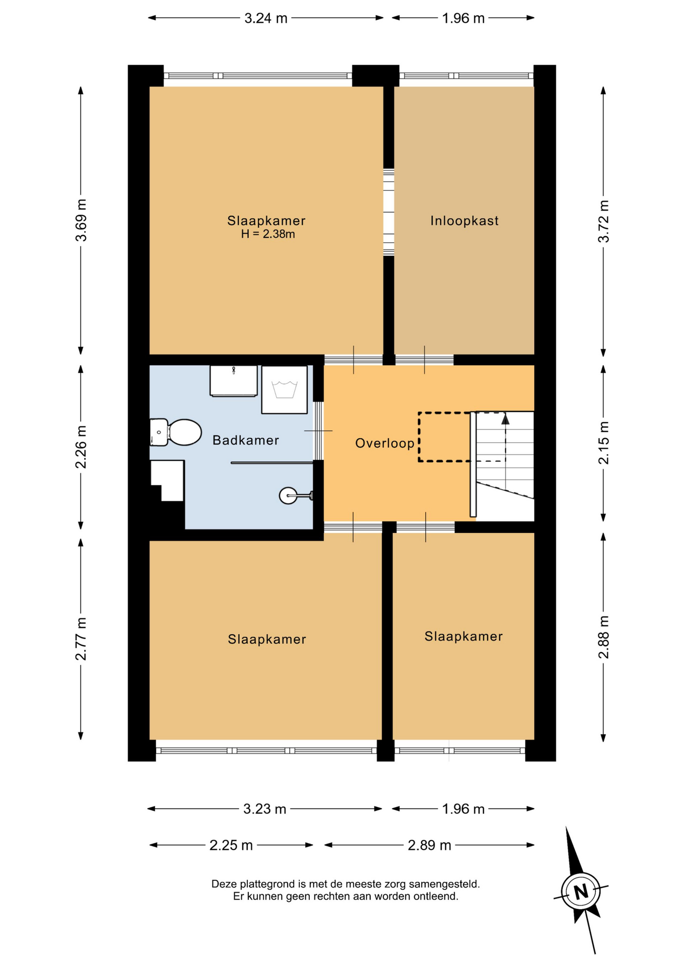 Op de tweede verdieping vind je drie slaapkamers. Oorspronkelijk waren dit vier slaapkamers, maar één kamer is bij een slaapkamer getrokken en ingericht als walk-in closet. De verdieping beschikt over een ruime overloop, wat zorgt voor een prettig ruimtelijk gevoel. De badkamer (2015) is praktisch en verzorgd uitgevoerd en volledig betegeld in een lichte kleurstelling. Je beschikt hier over een douche, toilet en een wastafelmeubel met spiegel. Daarnaast is de badkamer voorzien van de wasmachineaansluiting, wat de ruimte extra functioneel maakt. Een handdoekradiator zorgt voor comfort en het geheel is netjes en onderhoudsvriendelijk afgewerkt.