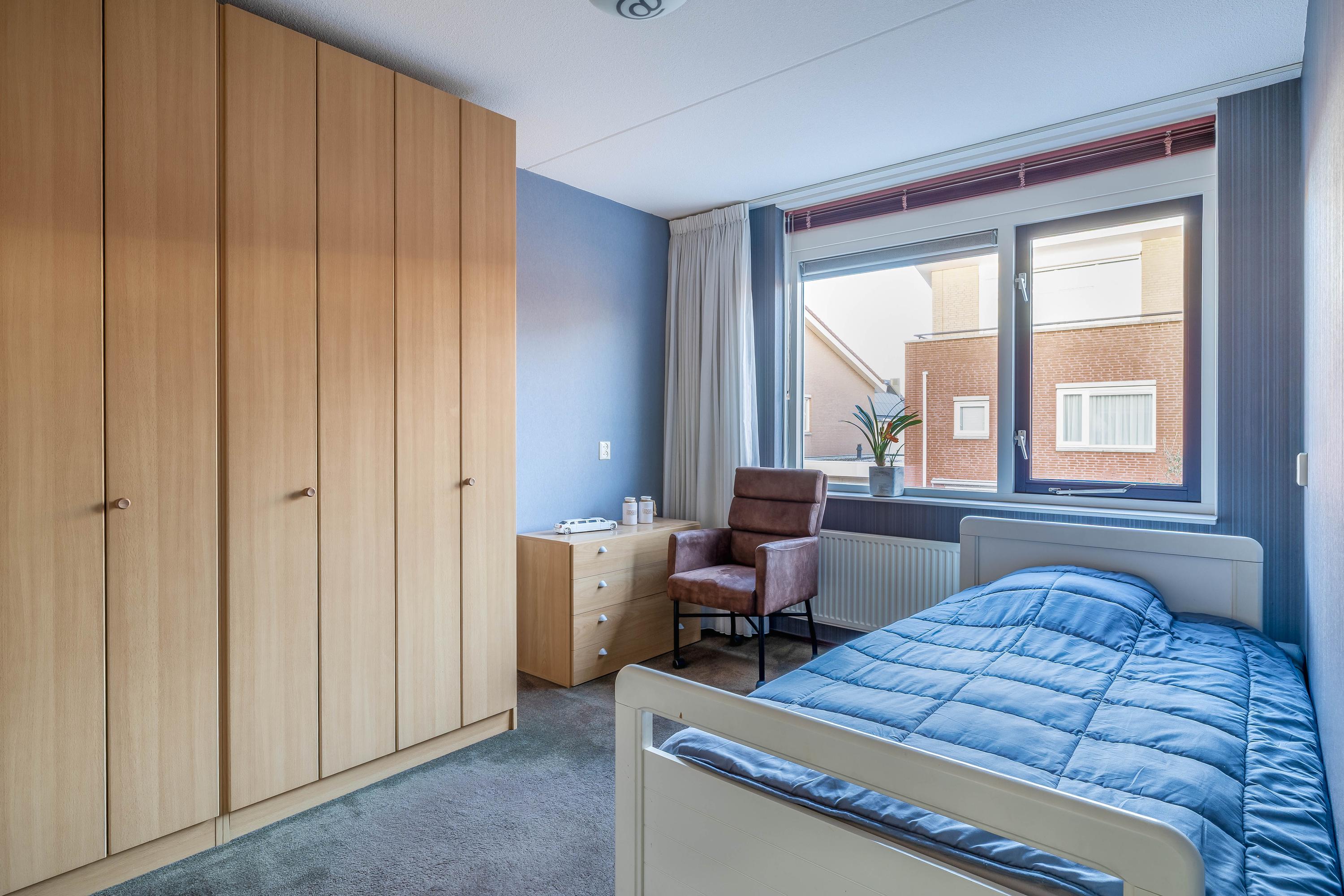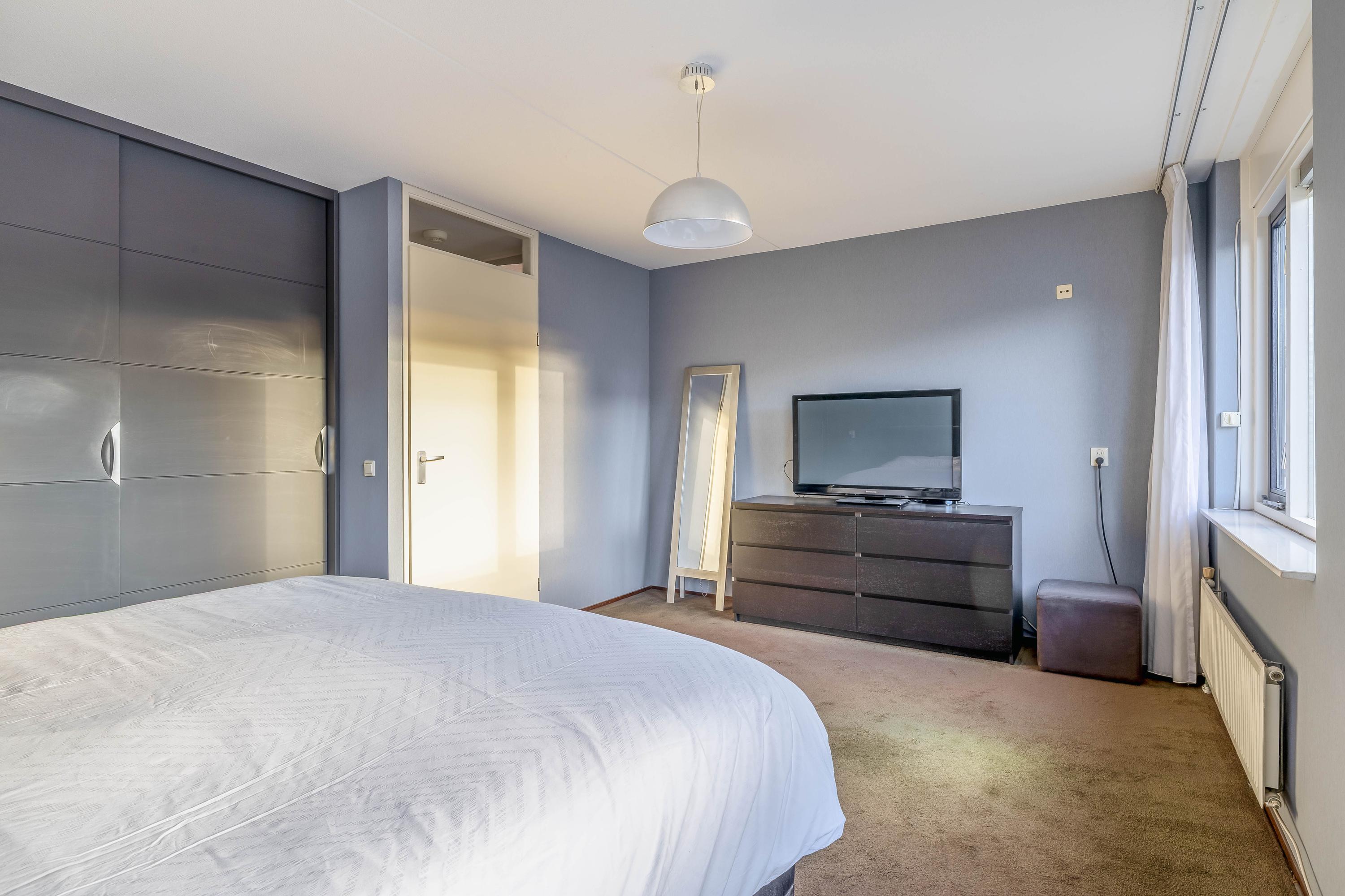 Op de eerste verdieping bevinden zich twee (voorheen 3) ruime slaapkamers, beide keurig afgewerkt en prettig licht. De hoofdslaapkamer is royaal van formaat en biedt voldoende ruimte voor een groot bed en kasten.
