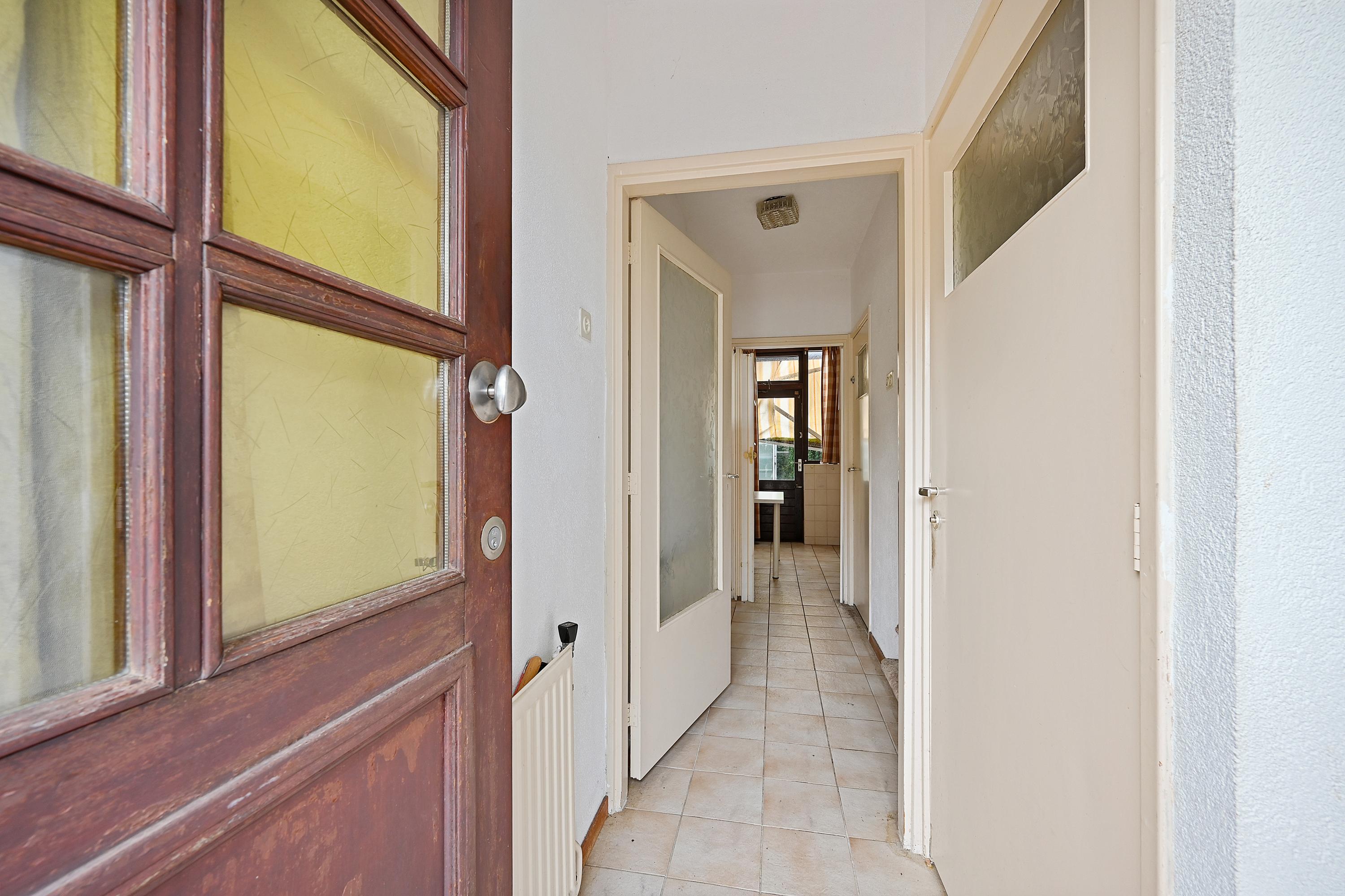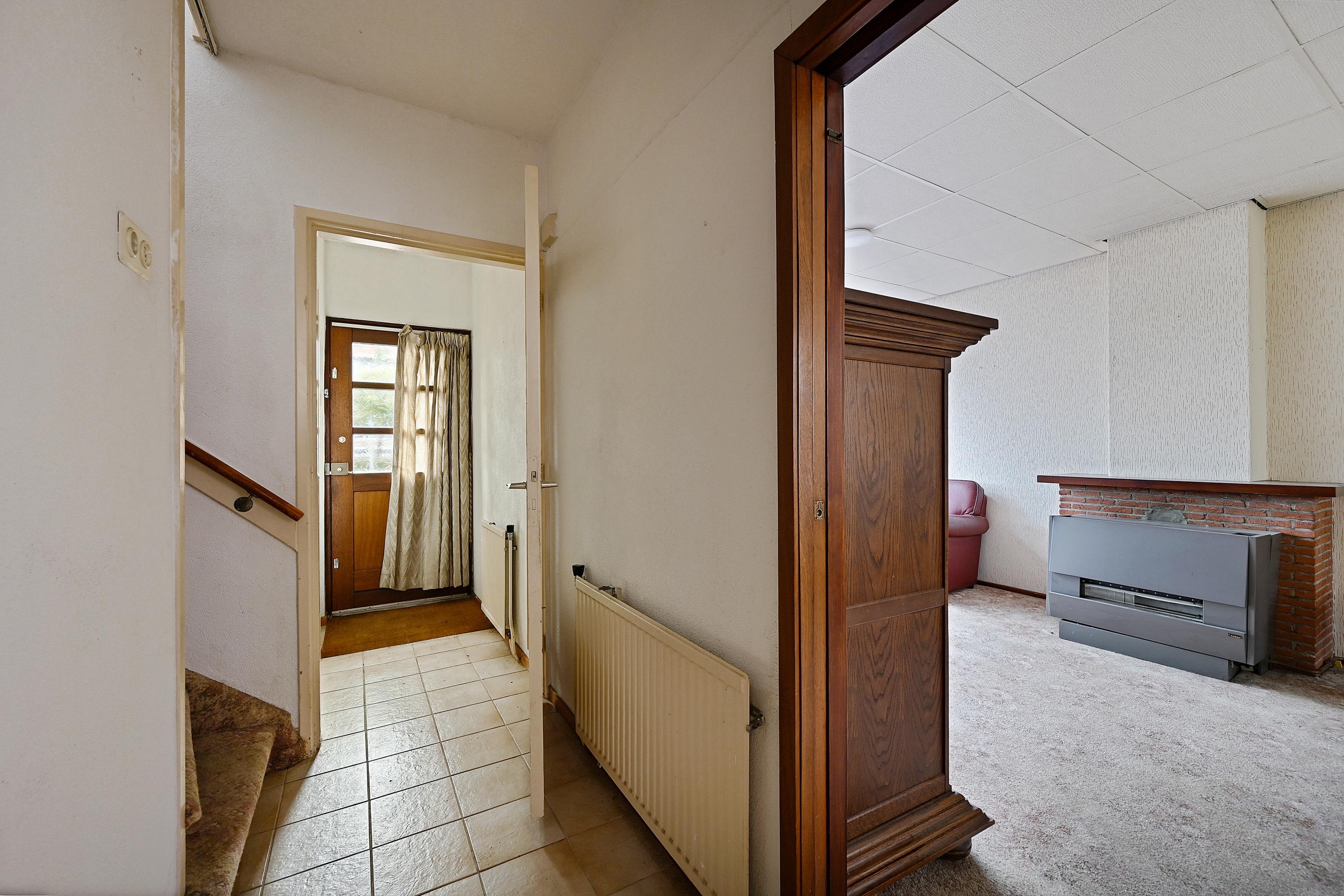 Via de voortuin bereik je de entree van de woning. In de hal bevinden zich het toilet en de meterkast, met daarnaast toegang tot de keuken. De keuken is eenvoudig opgezet en geeft toegang tot de achtertuin. De doorzon-woonkamer is lekker licht en beschikt nog over een ouderwetse moederhaard. De woning is daarnaast voorzien van houten kozijnen.