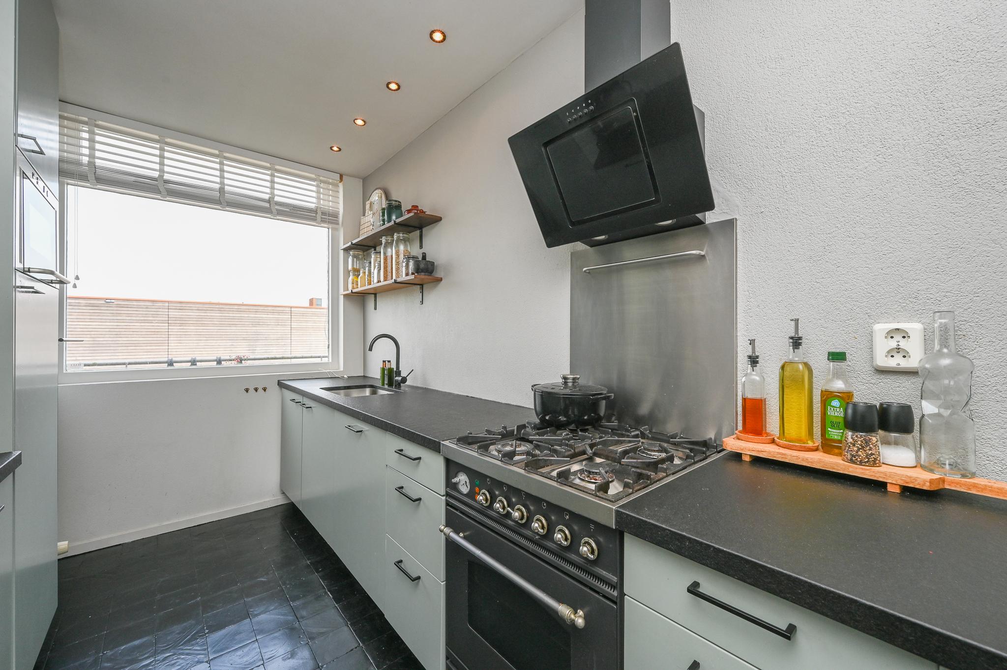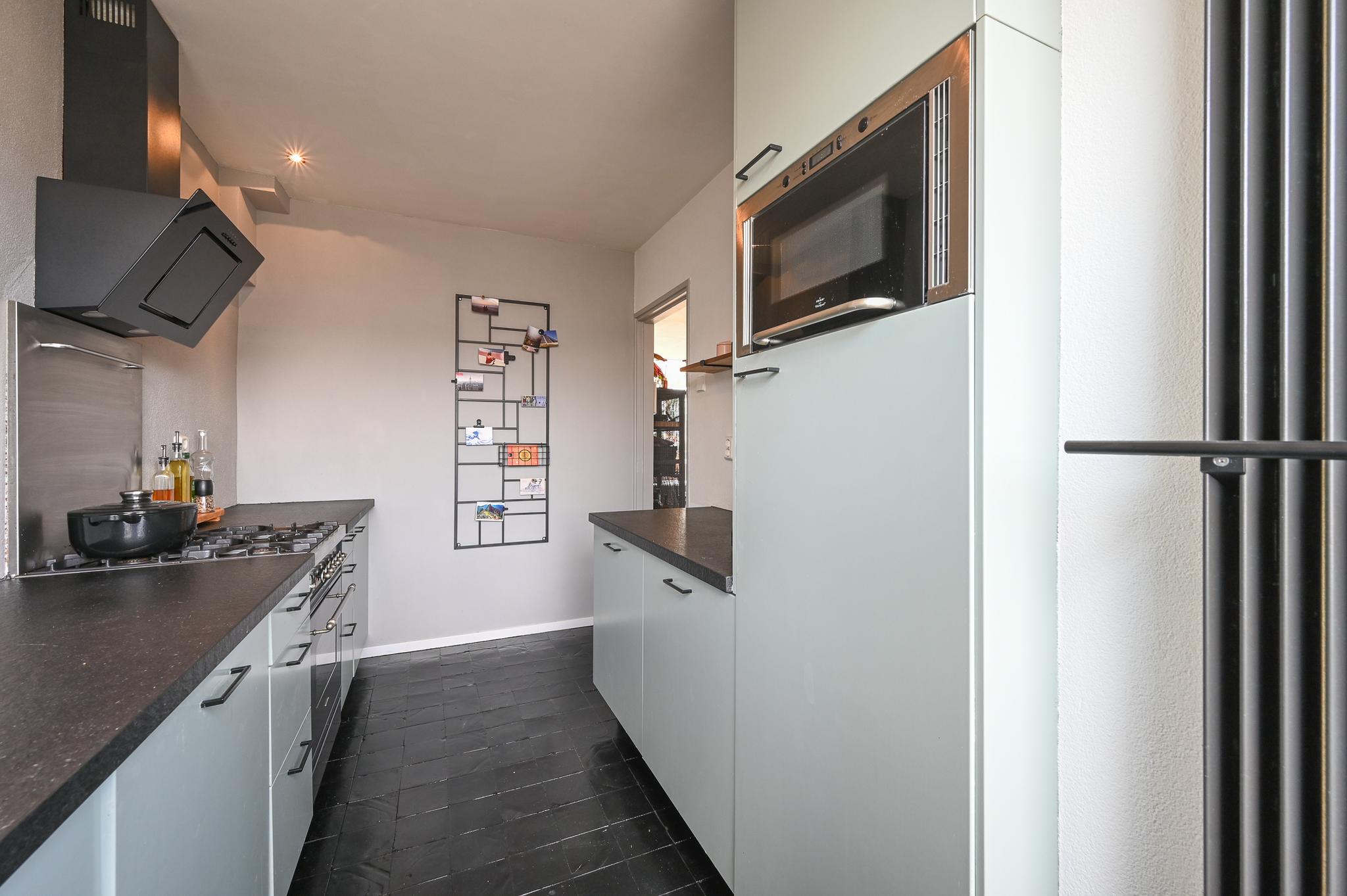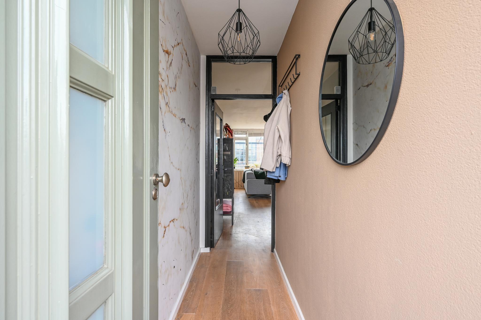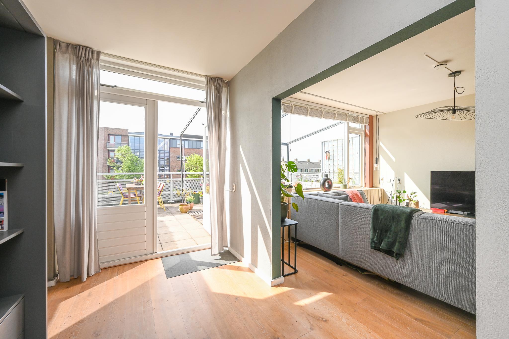 Een extra ruimte ligt aan de achterzijde van het appartement. Voordat de dakopbouw geplaatst werd was hier een praktische slaapkamer. De muur is eruit gehaald waardoor er ruimte is ontstaan voor een thuis kantoor, een extra slaapkamer of een fijne plek om te lezen.