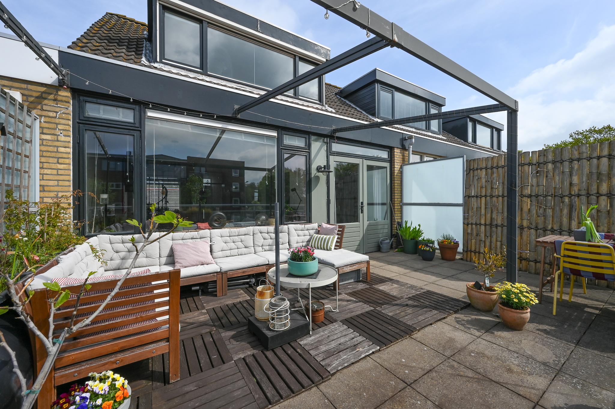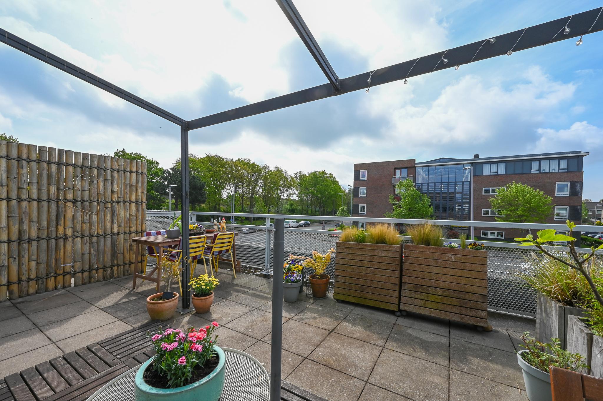 Grenzend aan de woonkamer bevindt zich een zonnig dakterras op het zuiden. Hier kun je al vanaf februari genieten van de zon, zonder hinder van druk verkeer of wind. Met meer dan 24M² het dakterras ruim genoeg voor een loungehoek, een eettafel én planten of bloemen. Buiten leven wordt hier een dagelijkse vakantie.