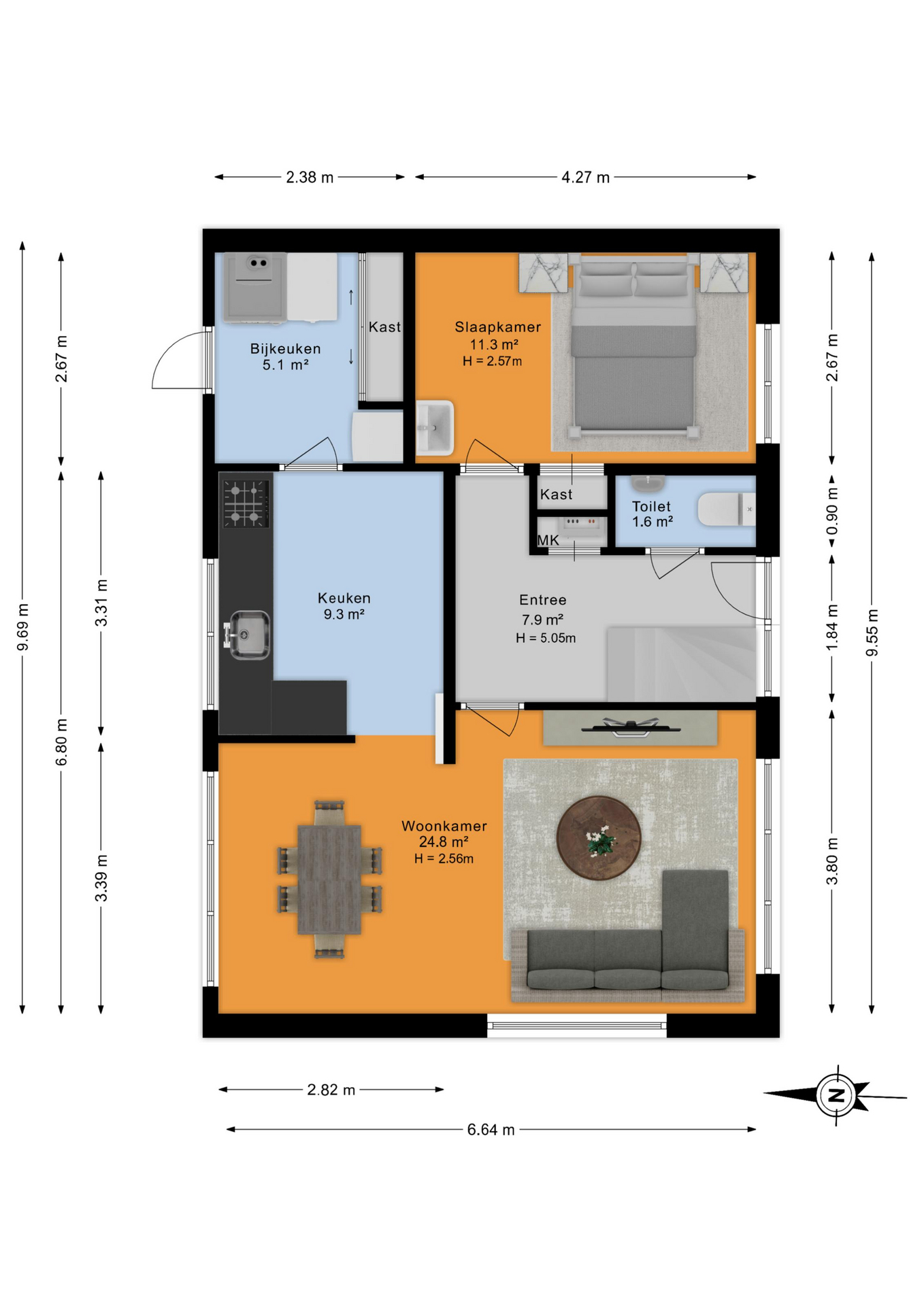 Met een woonoppervlakte van ca. 105 m² en vier slaapkamers (waarvan één op de begane grond) biedt deze woning verrassend veel mogelijkheden. Of je nu op zoek bent naar eengezinswoning, gelijkvloers wilt wonen of ruimte nodig hebt voor mantelzorg: hier kun je echt alle kanten op.
