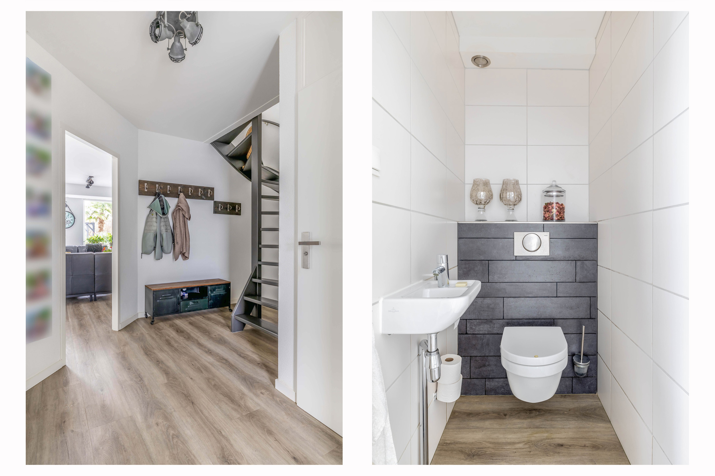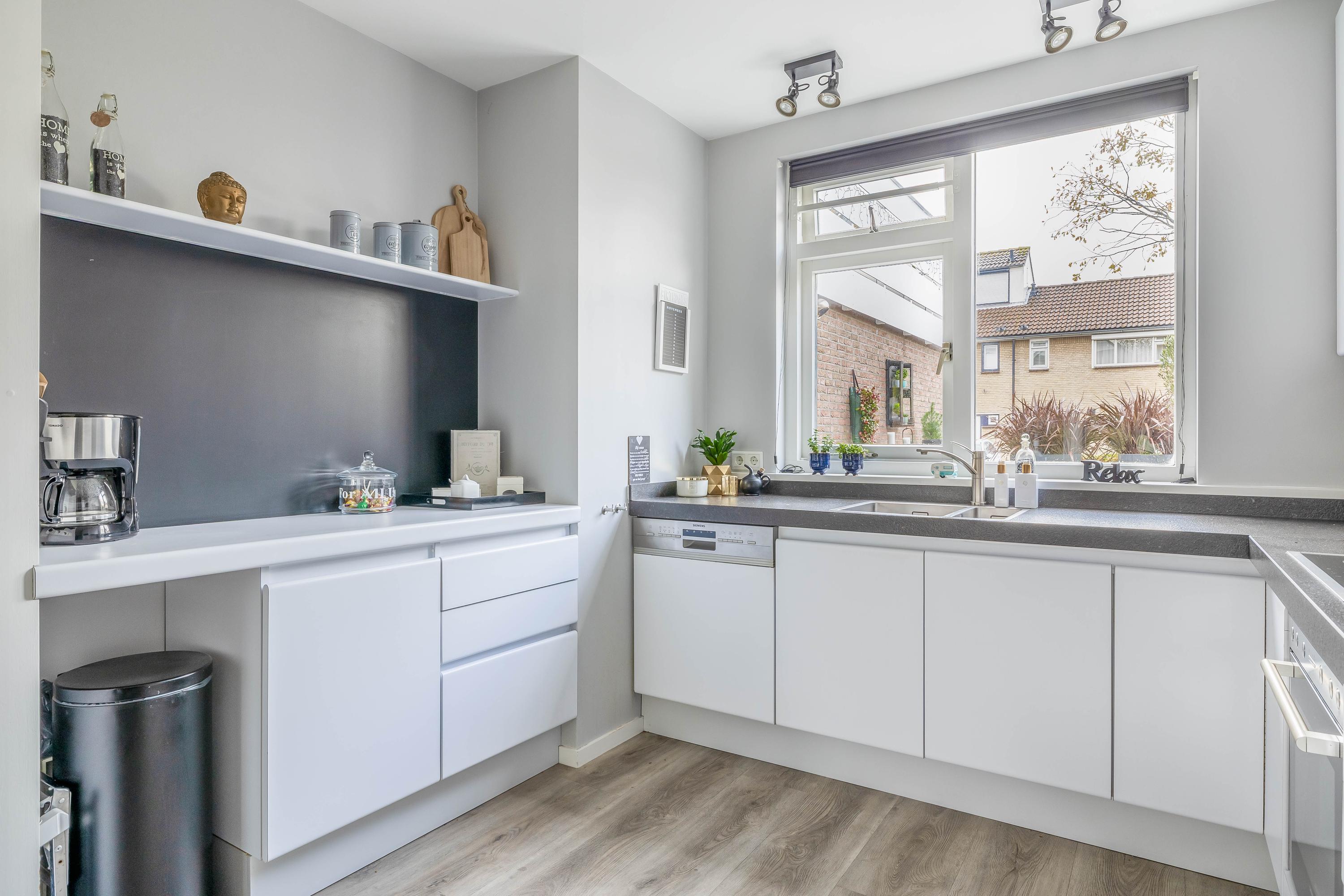 Voortuin met eigen parkeerplaats, via de ruime entree met vernieuwde meterkast (2017), toilet en trapopgang betreedt u de royale woonkamer (maar liefst 6.40m breed) met gezellige gashaard en fraaie pvc vloer. De grote raampartijen met schuifpui naar de tuin zorgen voor een zee van licht en geven direct verbinding met de groenrijke tuin aan het water. De begane grond is geheel voorzien van vloerverwarming, wat zorgt voor aangenaam wooncomfort. De keuken aan de voorzijde is uitgevoerd in een moderne, lichte kleurstelling en voorzien van diverse inbouwapparatuur zoals kookplaat, afzuigkap, oven, magnetron, koelkast en vaatwasser. Vanuit de hal is tevens de garage binnendoor bereikbaar.
