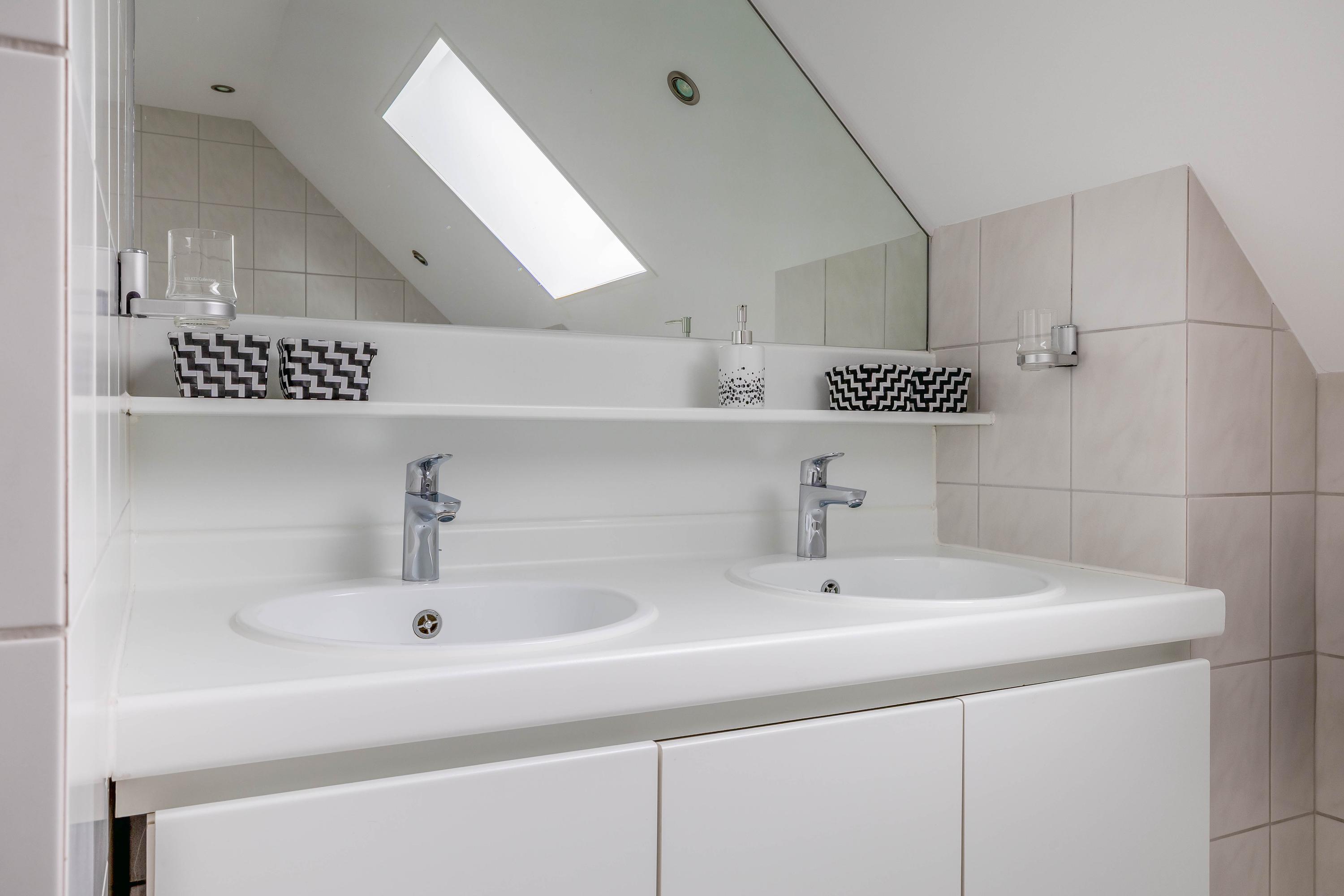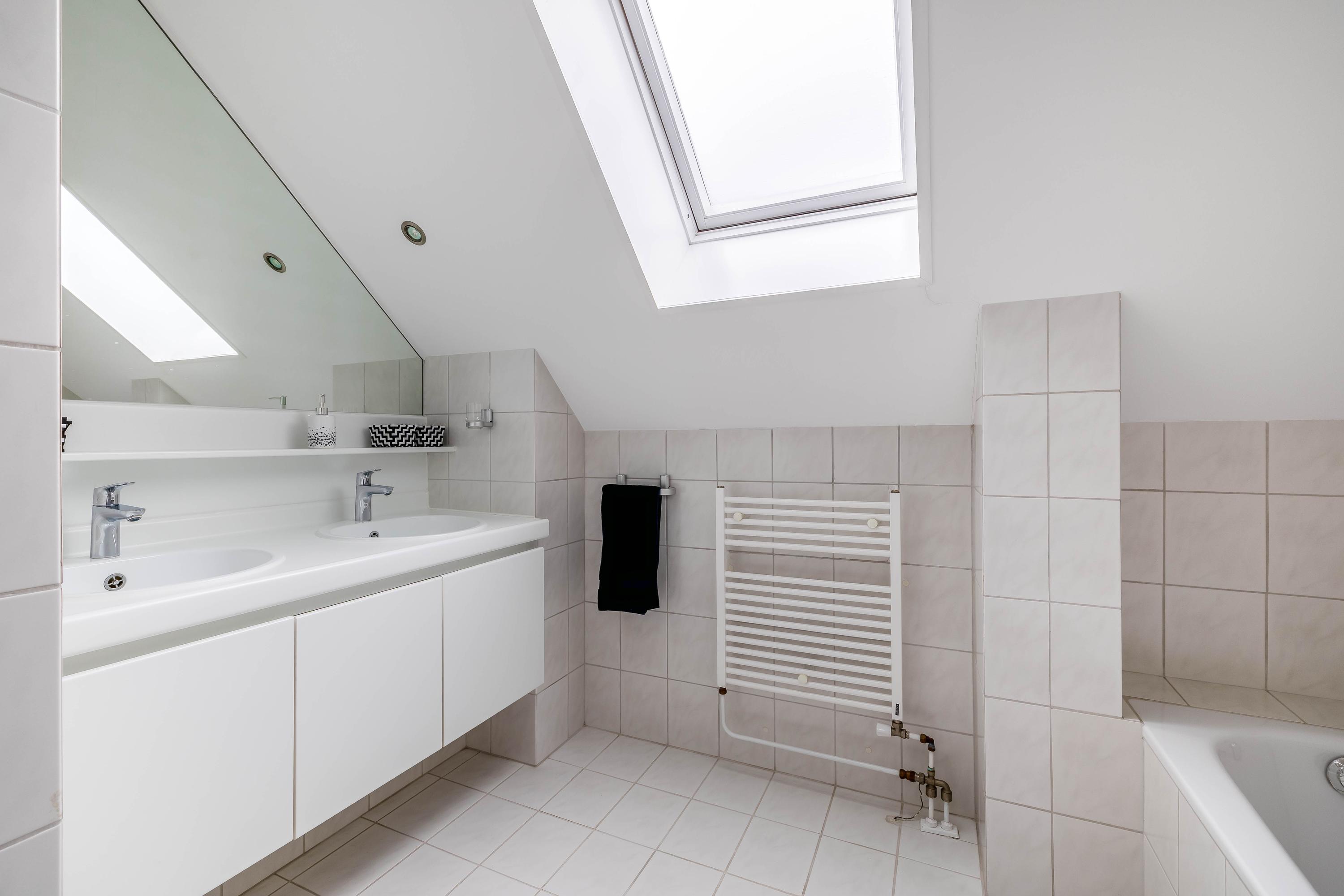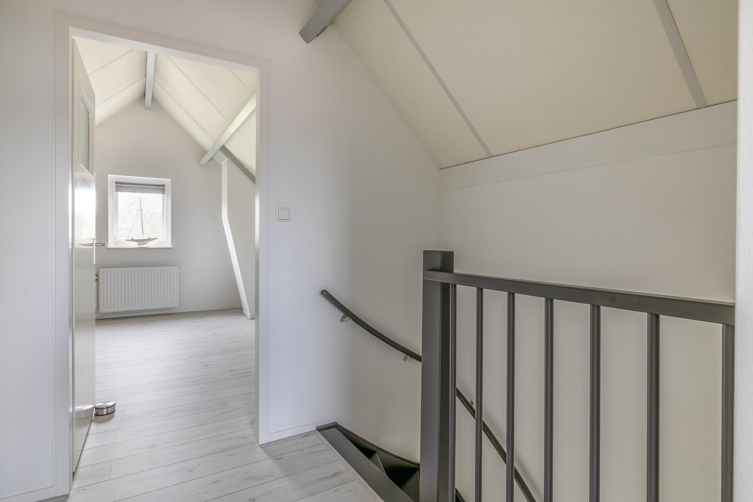De eerste verdieping telt drie kamers. De hoofdslaapkamer ligt aan de rustige waterzijde en is voorzien van een inloopkast . De badkamer is compleet ingericht met ligbad, douche, dubbele wastafel. Daarnaast bevind er ook een apart toilet op de tweede etage. Ook is er een praktische waskamer met opstelplaats wasmachine/droger en toegang tot het dakterras.