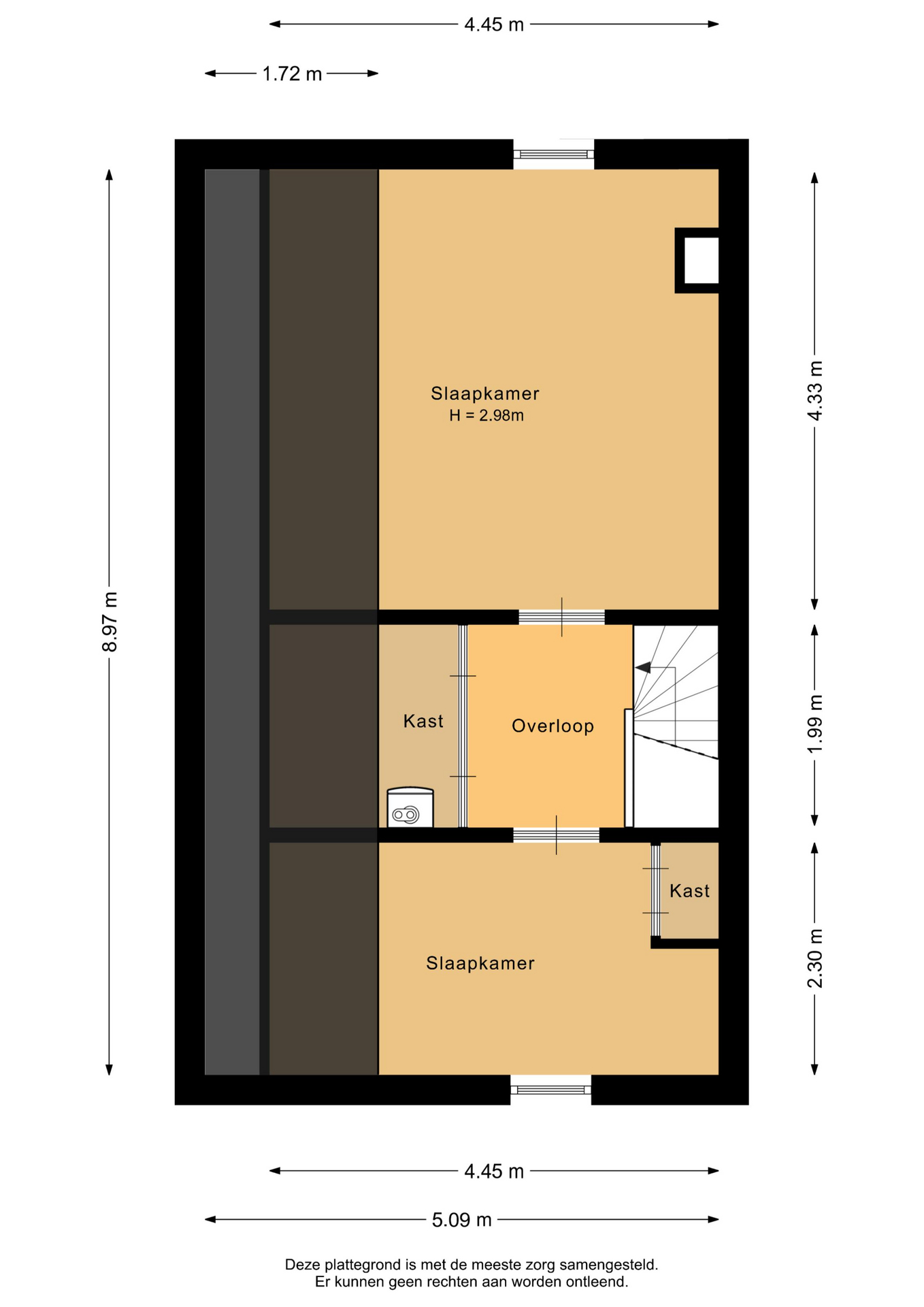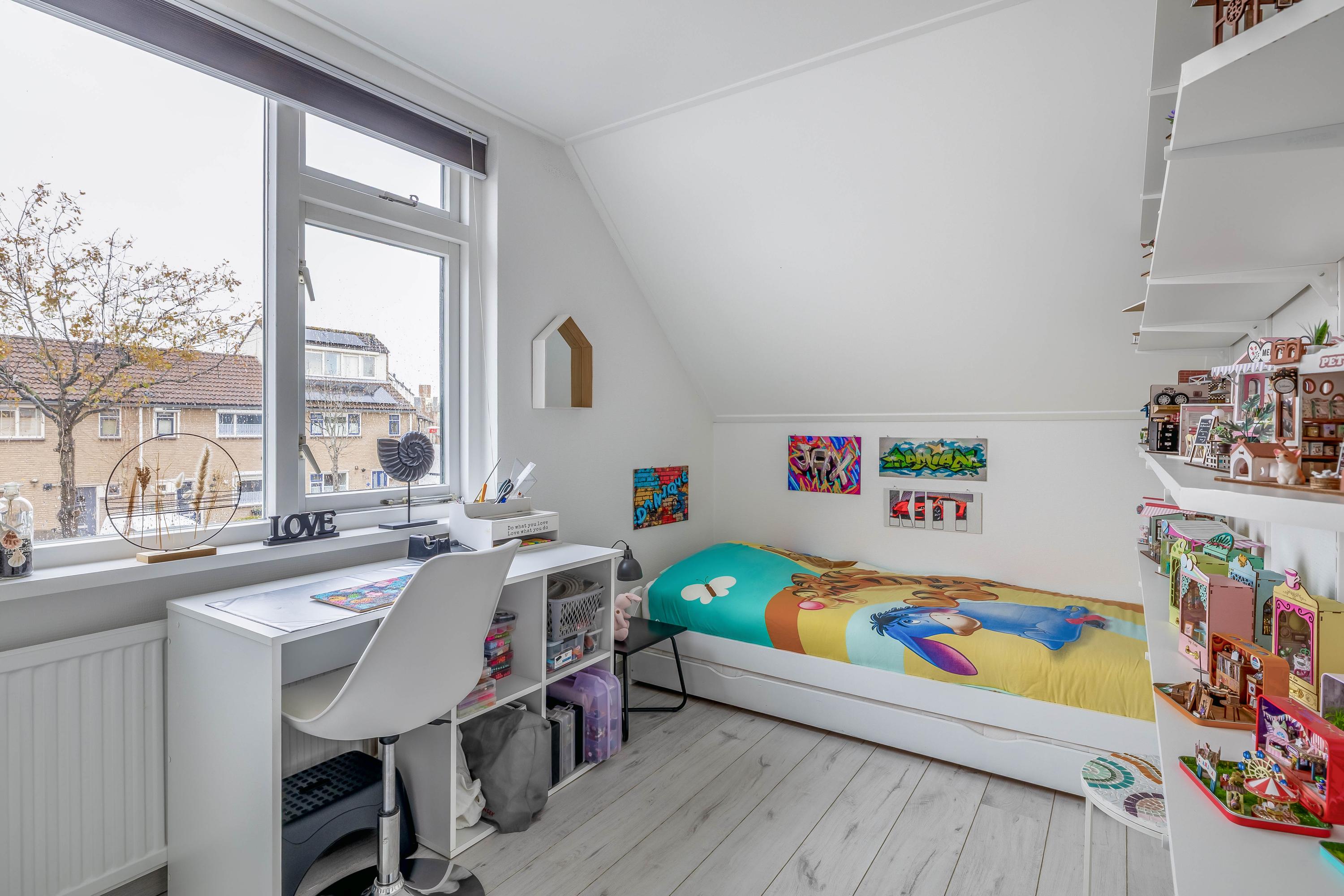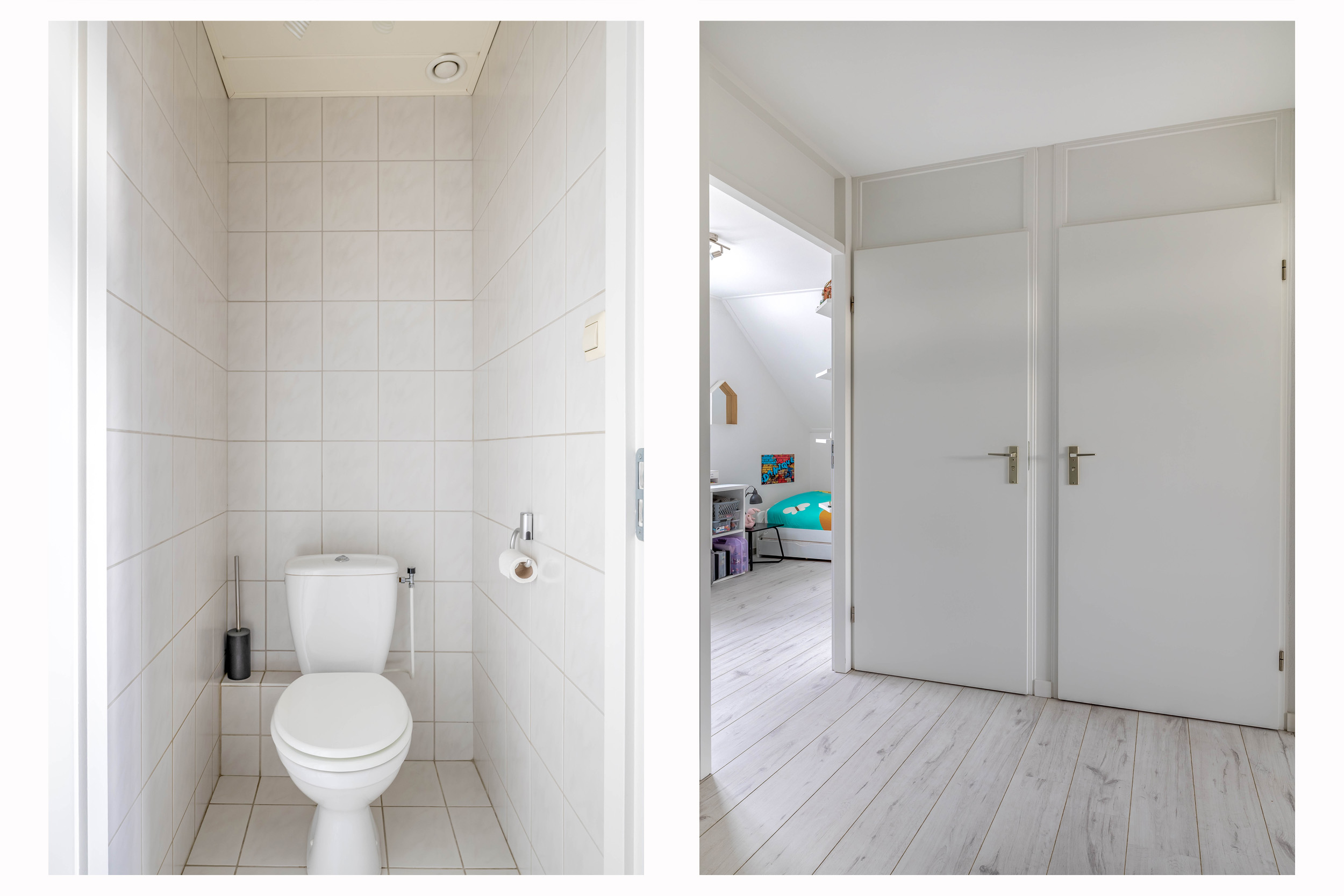 De bovenste verdieping beschikt over nog twee volwaardige slaapkamers, waarvan één met een vaste kast. Op de overloop bevindt zich nog een extra bergruimte en opstelplaats CV ketel. Deze verdieping is zeer veelzijdig en kan uitstekend dienen als o.a. thuiskantoor, tienerkamer, logeerruimte of hobbykamer.