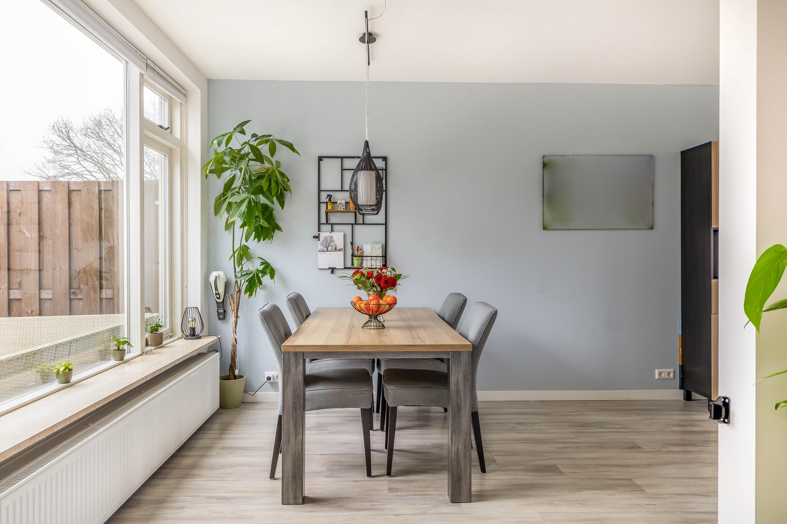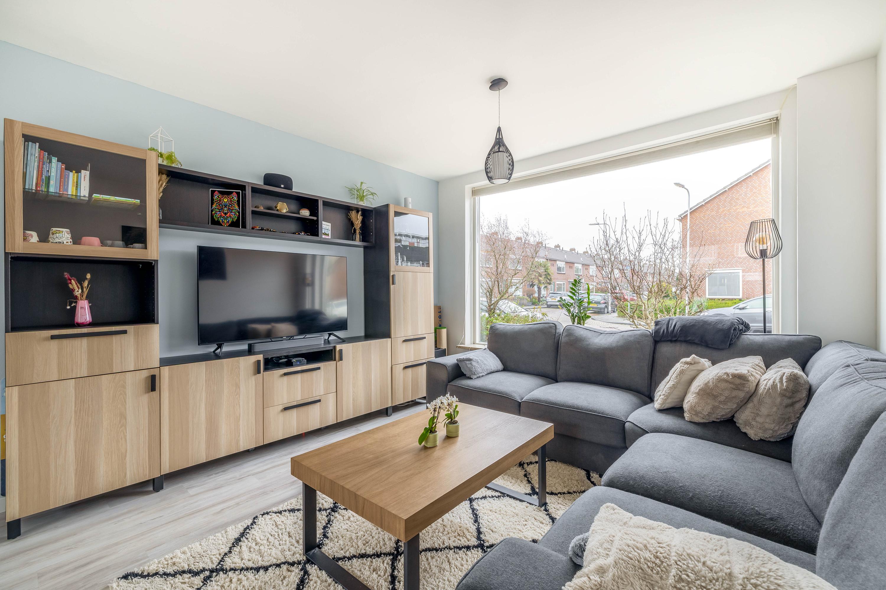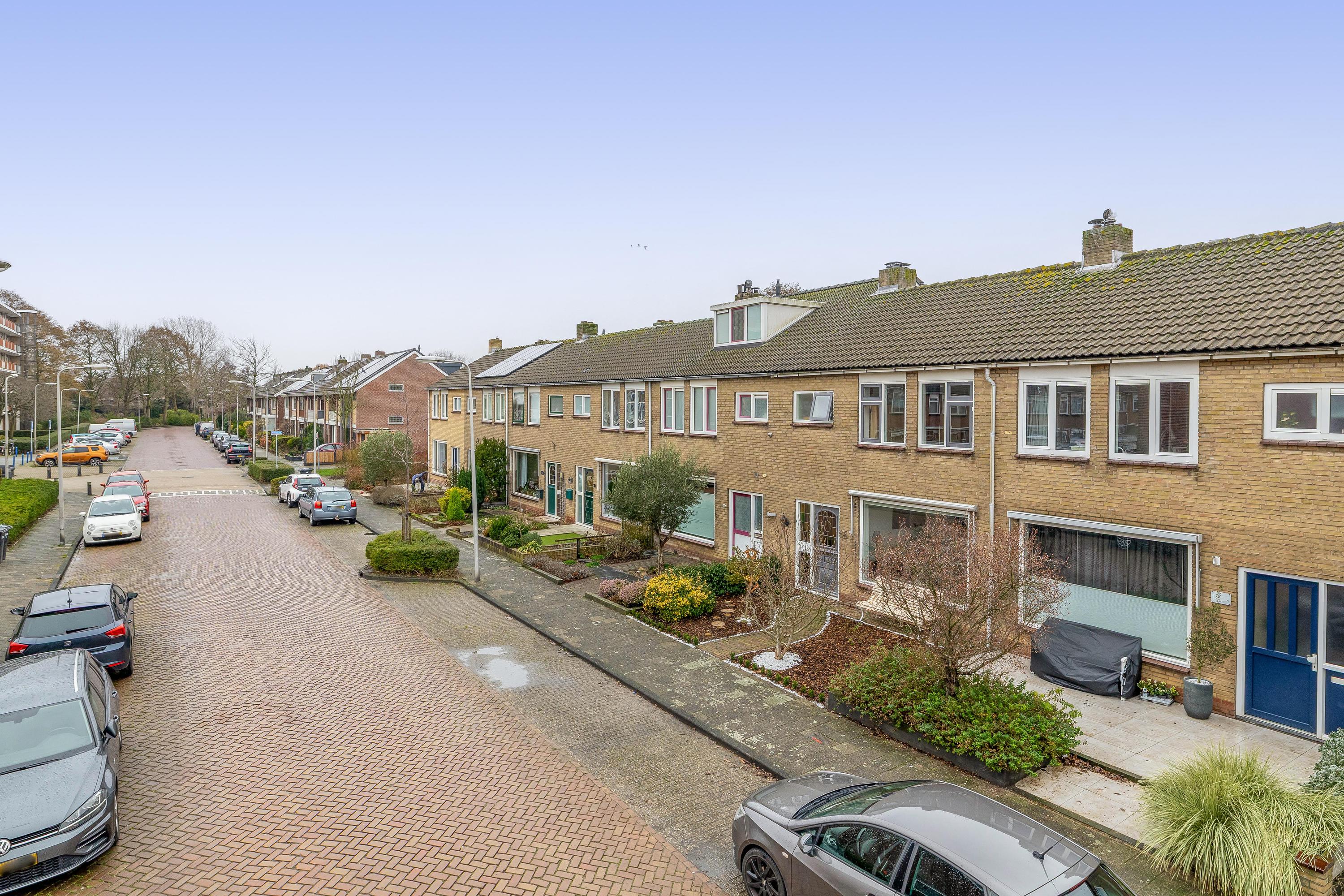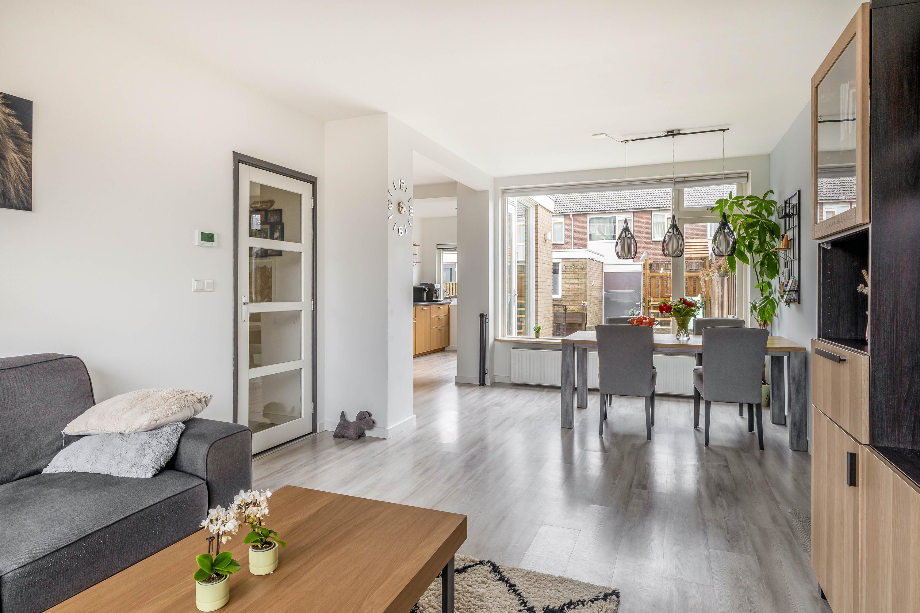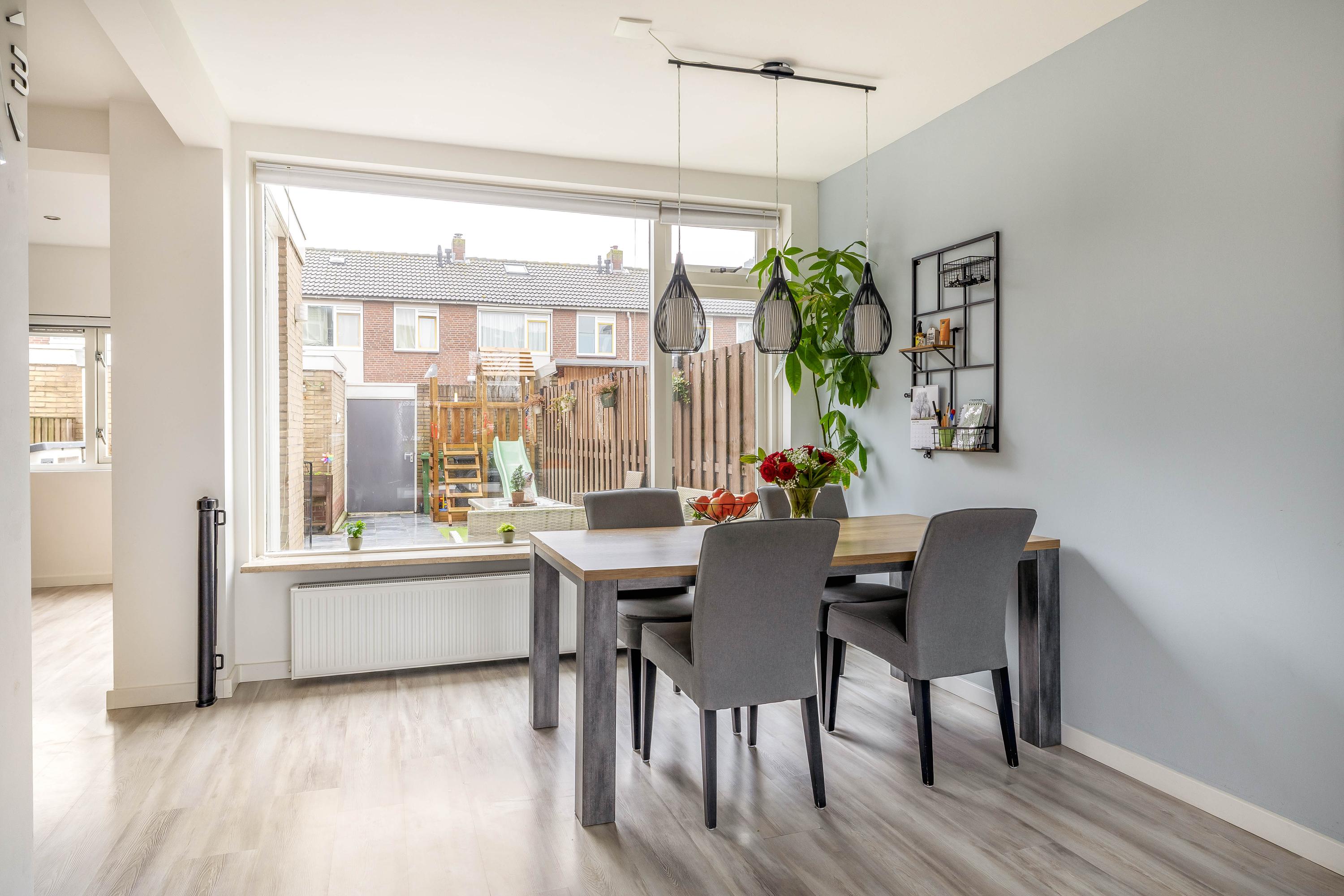 De achtertuin is een fijne plek om te ontspannen en te genieten van het buitenleven. Er is voldoende ruimte voor een terras, speelplek en groen. Extra prettig is de directe achterom: zodra je de poort uitloopt, kunnen kinderen meteen spelen. De voortuin zorgt daarnaast voor een prettige afstand tot de straat.