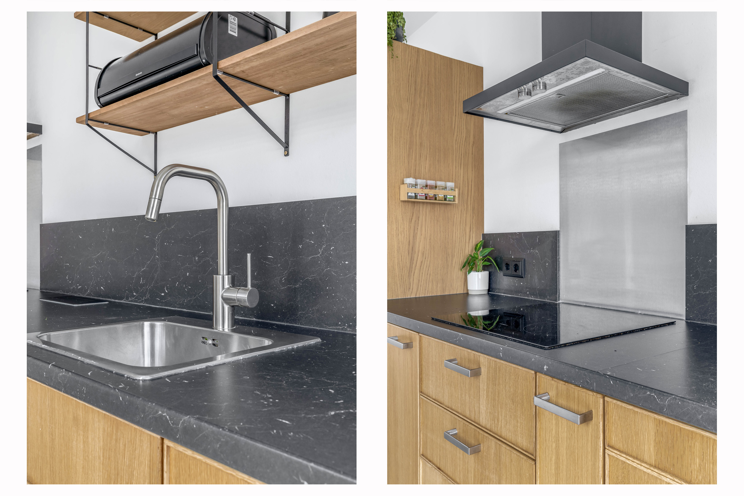 Daarnaast is hier een aparte wasruimte aanwezig met een granieten vloer: praktisch, onderhoudsvriendelijk en fijn uit het zicht.