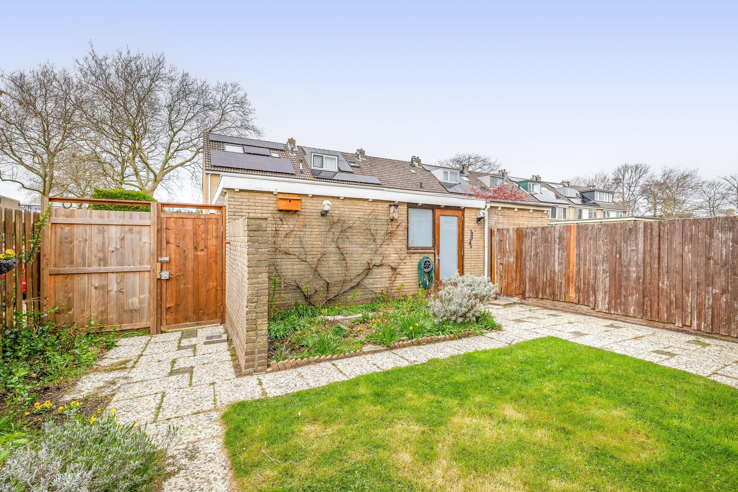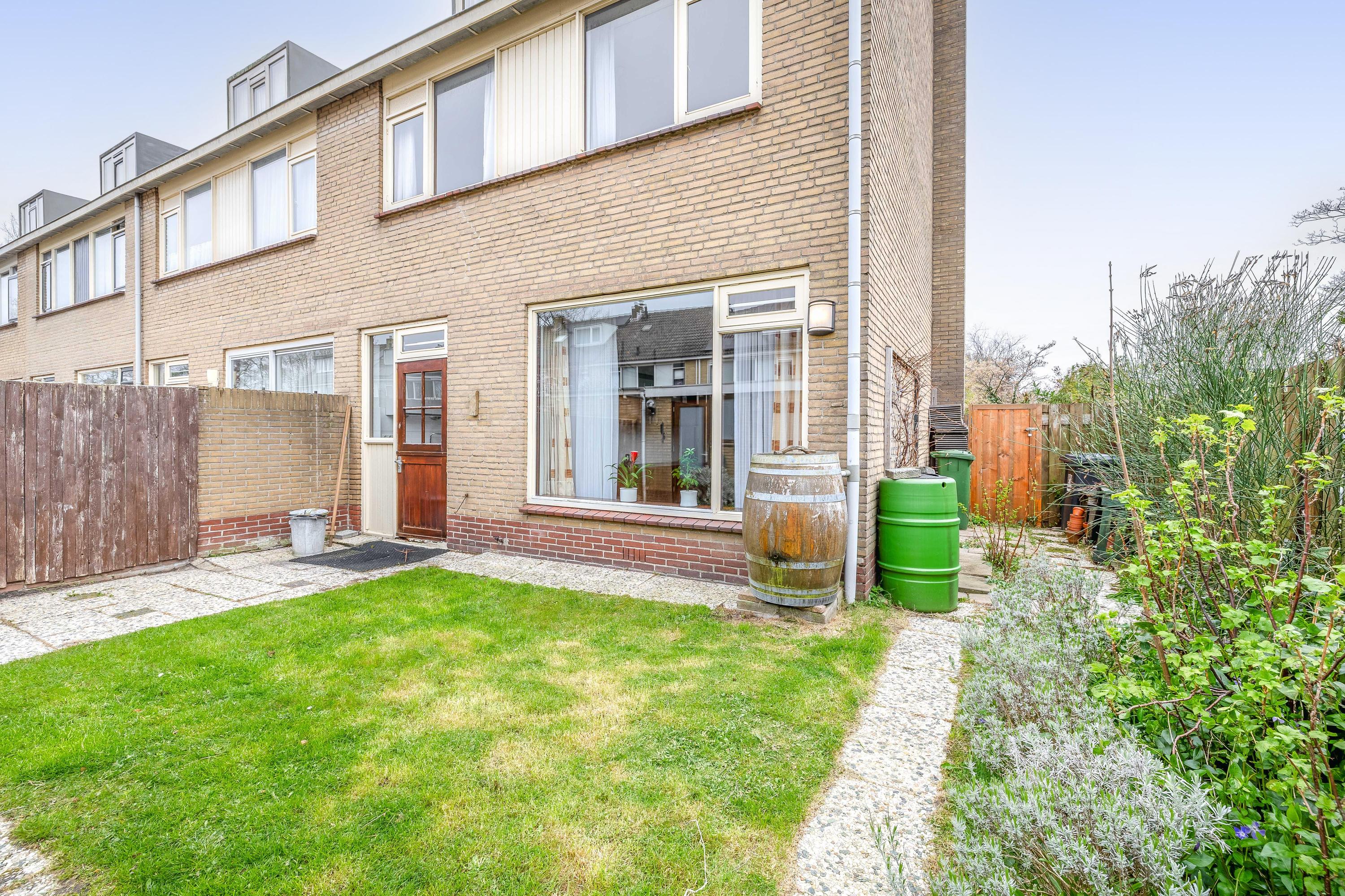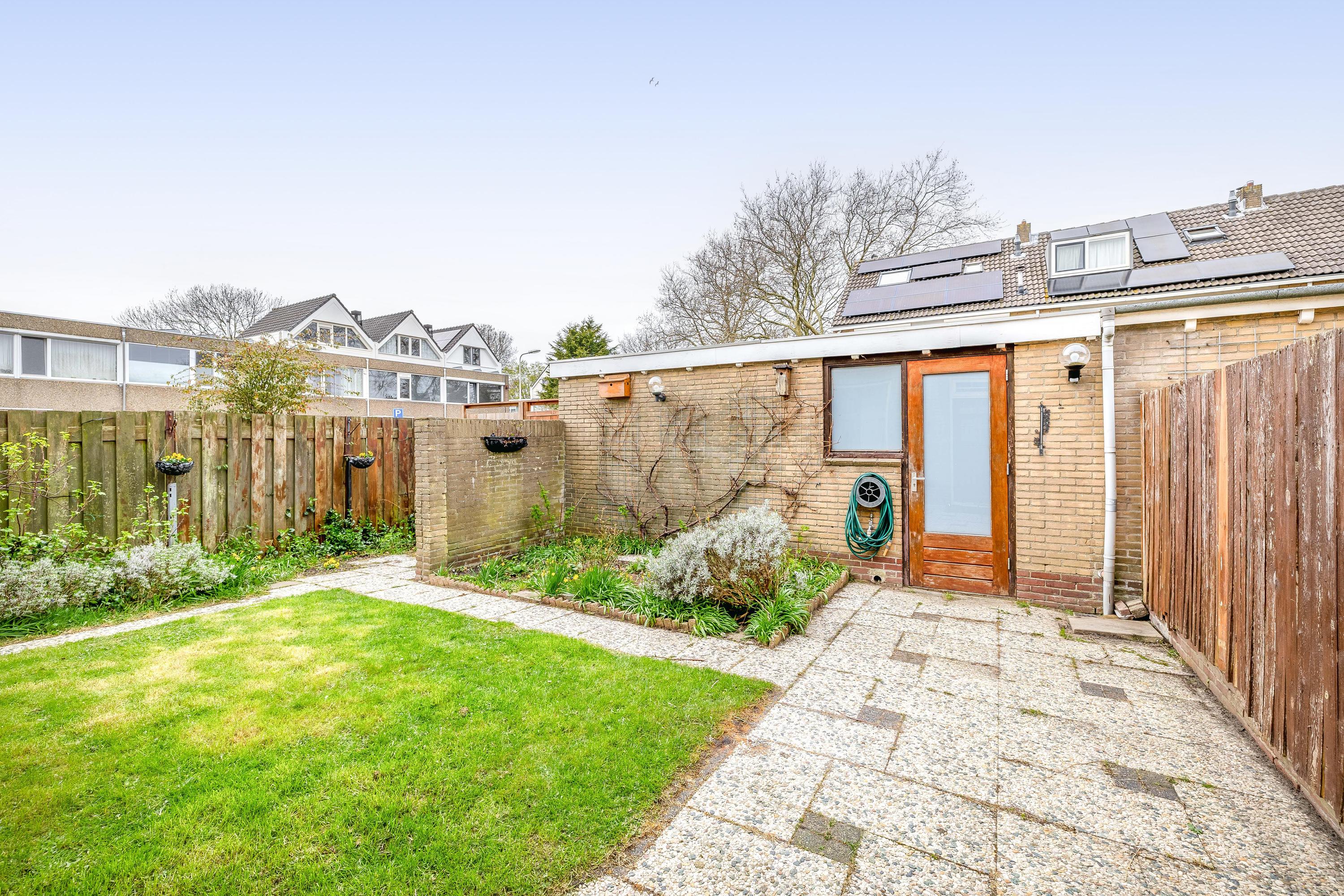 De woning beschikt over een zijtuin van circa 60 m². Dit betreft een strook grond die in het verleden door de gemeente in gebruik is gegeven aan de huidige bewoners, en door hen sindsdien als tuin wordt onderhouden en gebruikt. Het perceel is niet als eigendom kadastraal bij de woning inbegrepen.