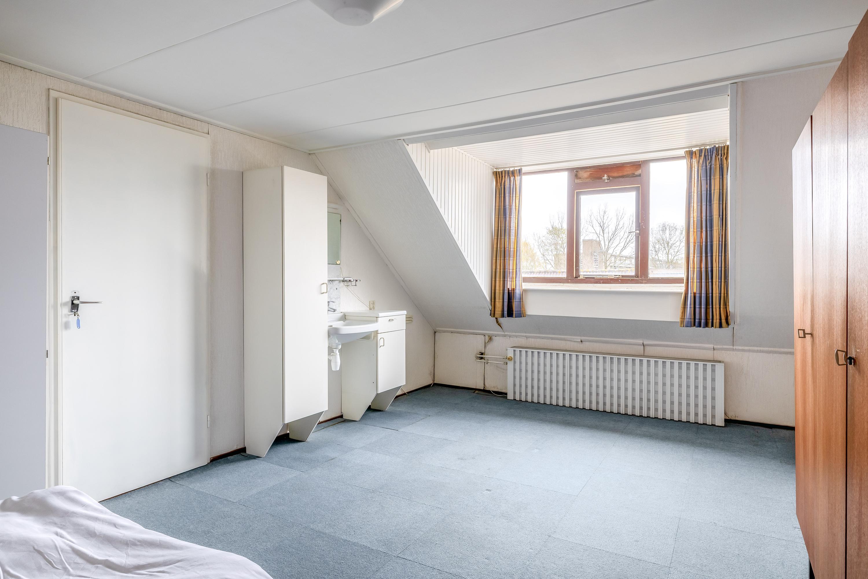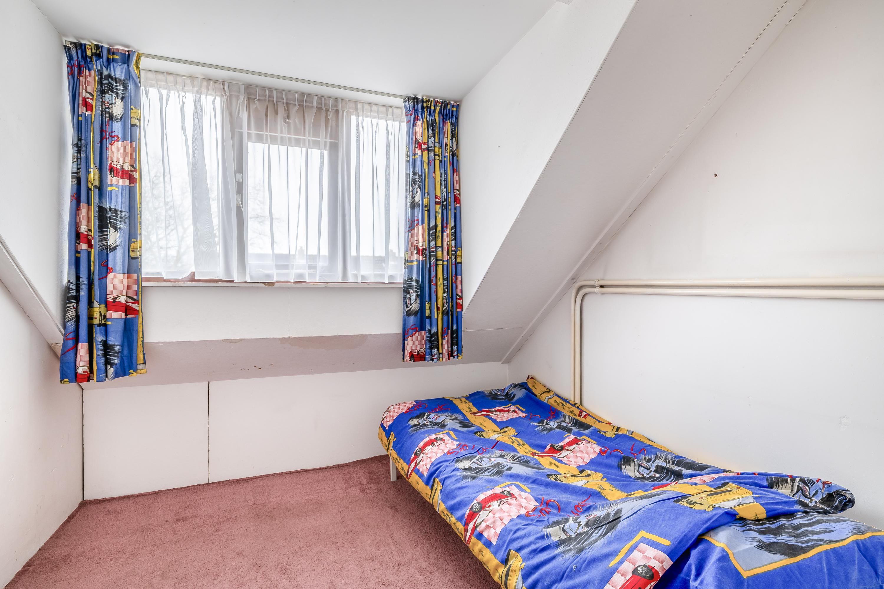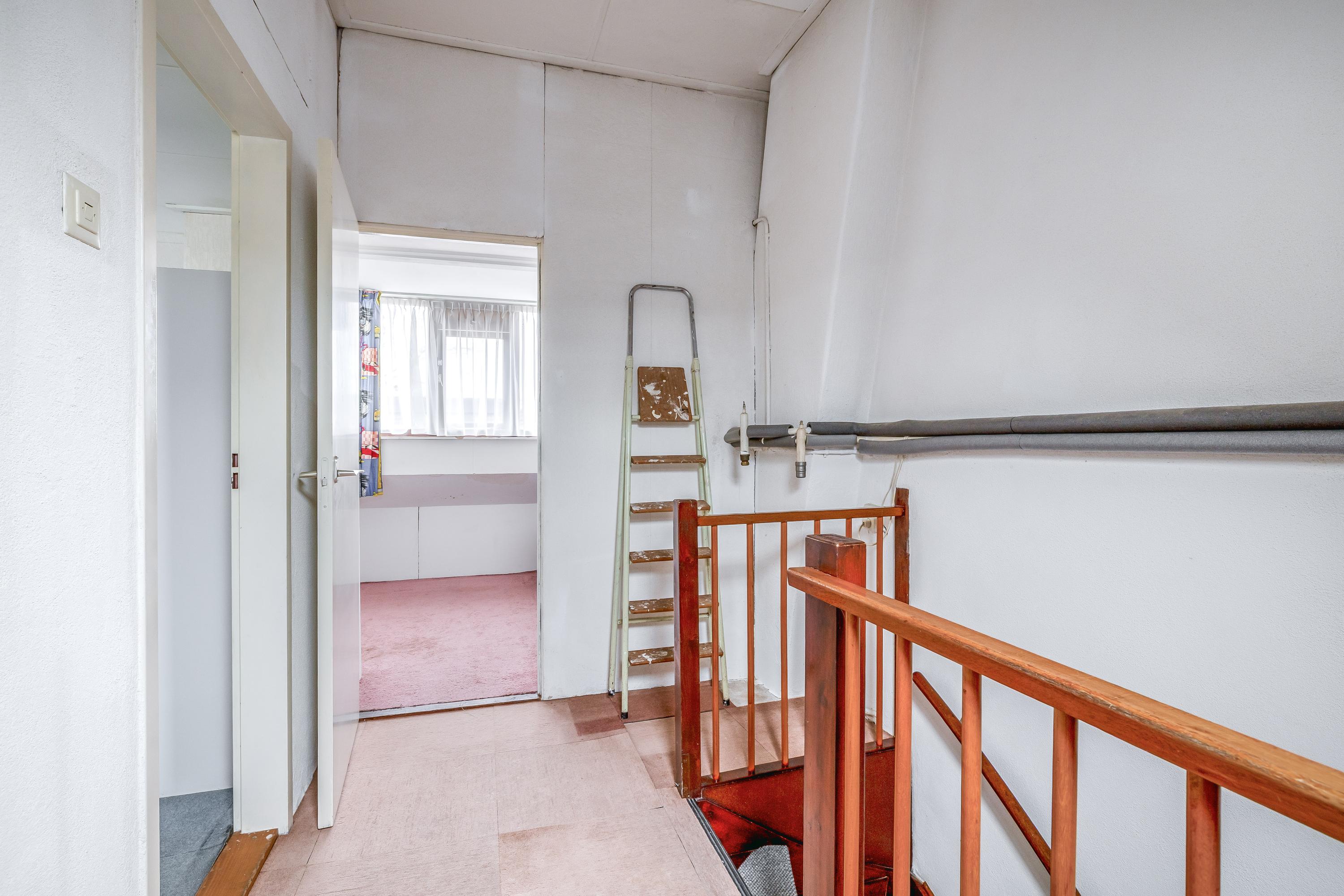 De tweede verdieping beschikt over een overloop met dakraam, wat zorgt voor prettig daglicht. Hier bevindt zich tevens de opstelplaats van de CV-ketel Intergas (2019). Aan zowel de voor- als achterzijde zijn dakkapellen geplaatst, waardoor er extra ruimte en lichtinval is gecreëerd. Op deze verdieping zijn twee slaapkamers aanwezig, beide van goed formaat. Eén van de kamers is voorzien van een wastafelmeubel en daarnaast is er praktische bergruimte aanwezig achter de dakschotten.