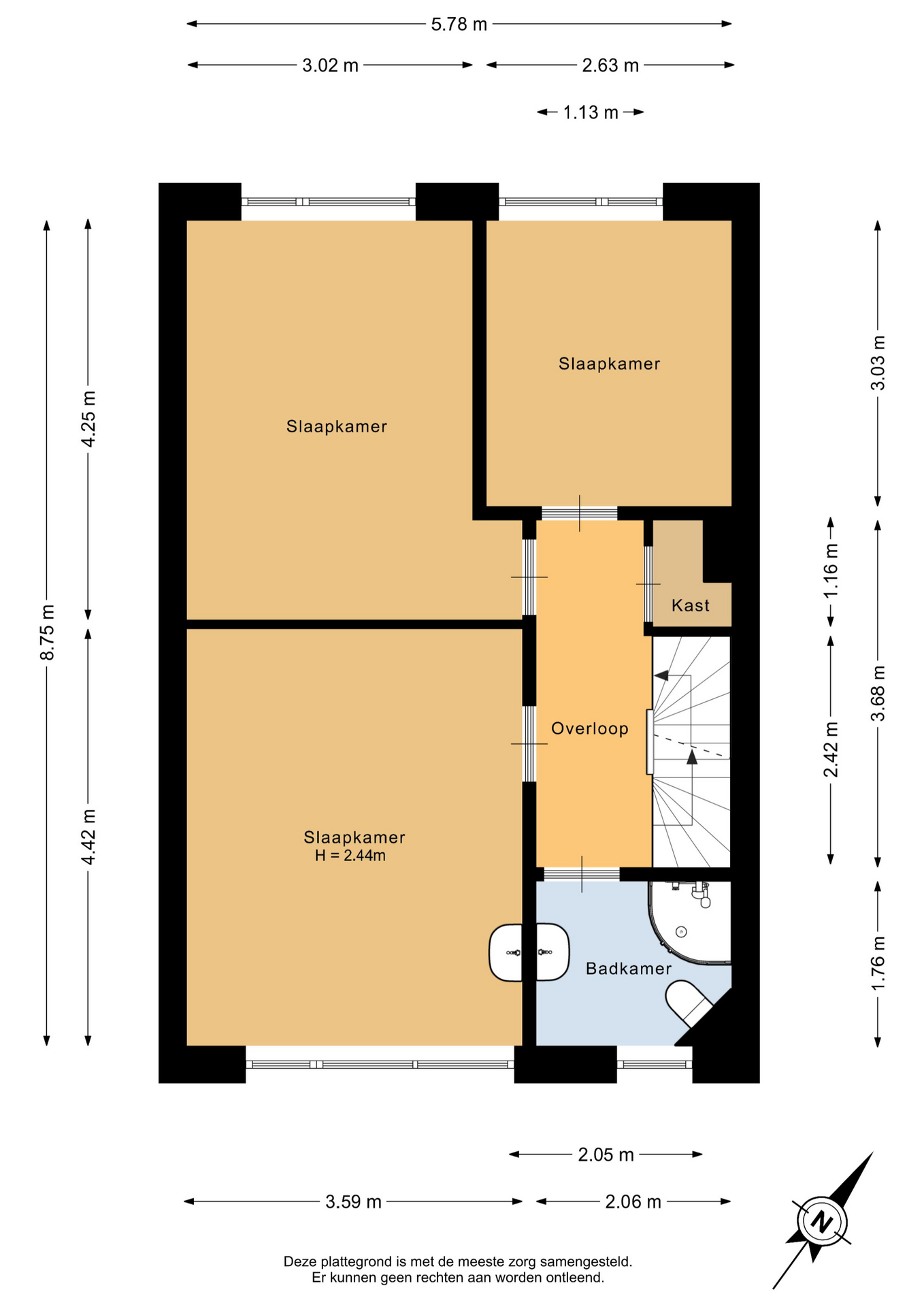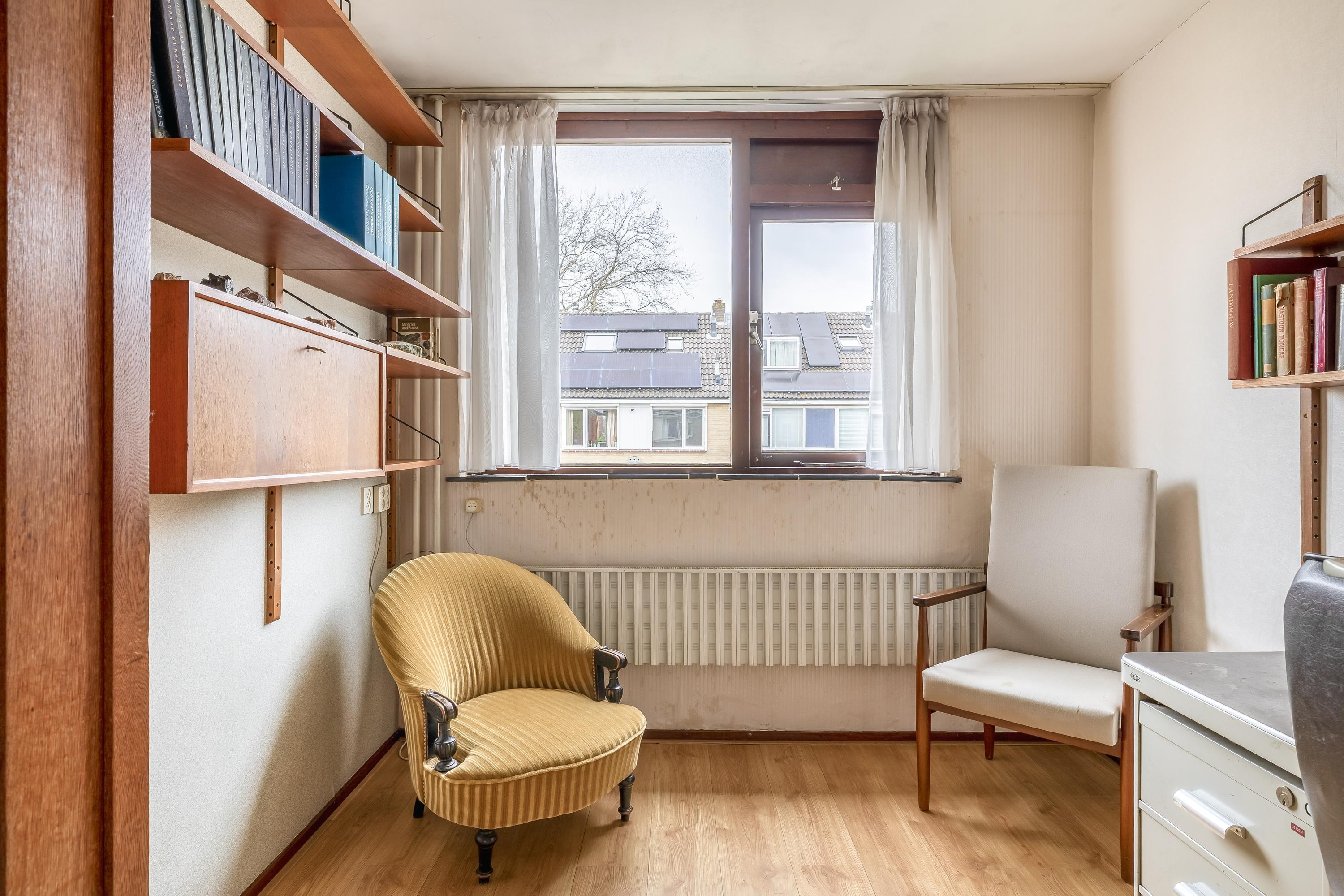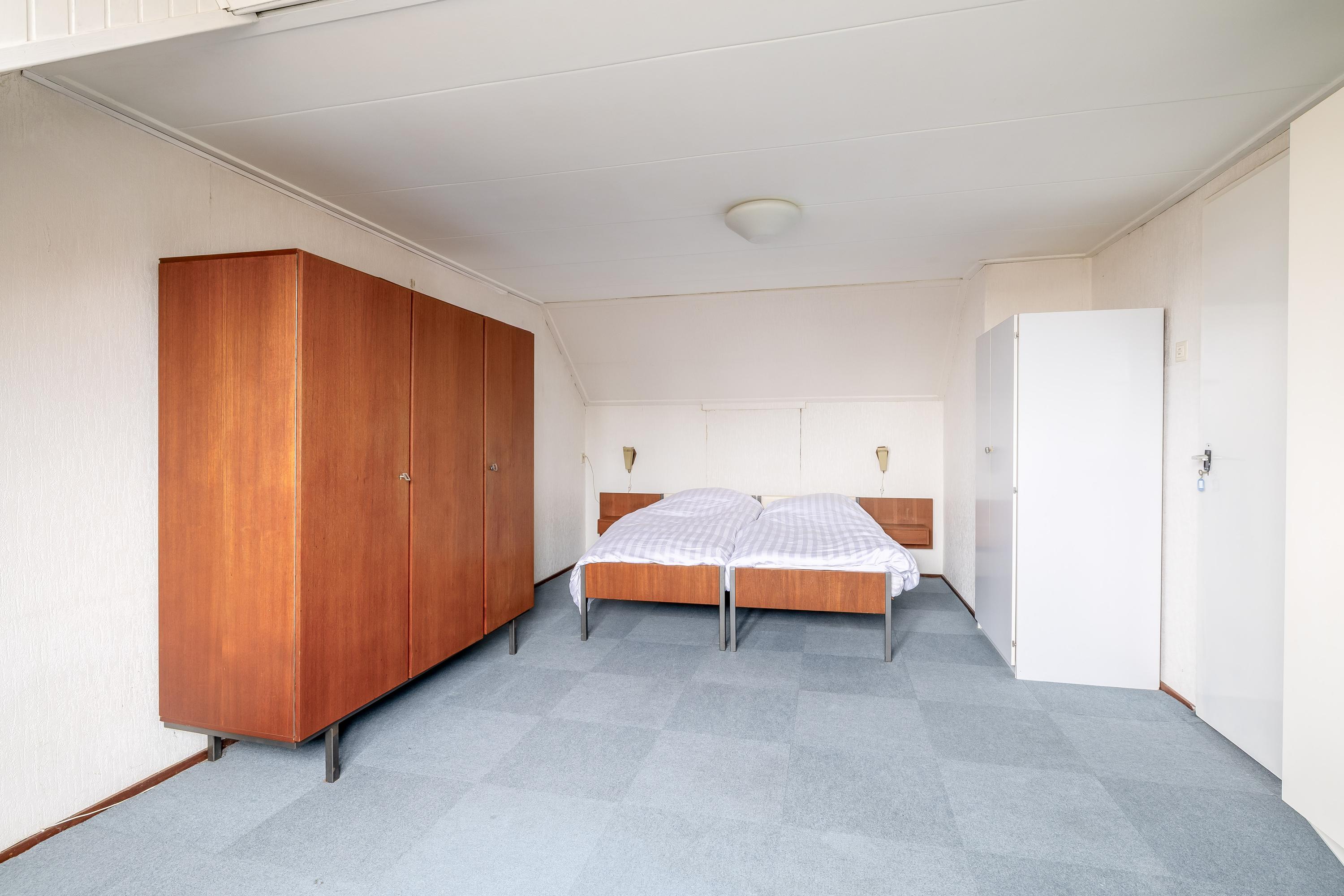 De tweede verdieping beschikt over een overloop met dakraam, wat zorgt voor prettig daglicht. Hier bevindt zich tevens de opstelplaats van de CV-ketel Intergas (2019). Aan zowel de voor- als achterzijde zijn dakkapellen geplaatst, waardoor er extra ruimte en lichtinval is gecreëerd. Op deze verdieping zijn twee slaapkamers aanwezig, beide van goed formaat. Eén van de kamers is voorzien van een wastafelmeubel en daarnaast is er praktische bergruimte aanwezig achter de dakschotten.