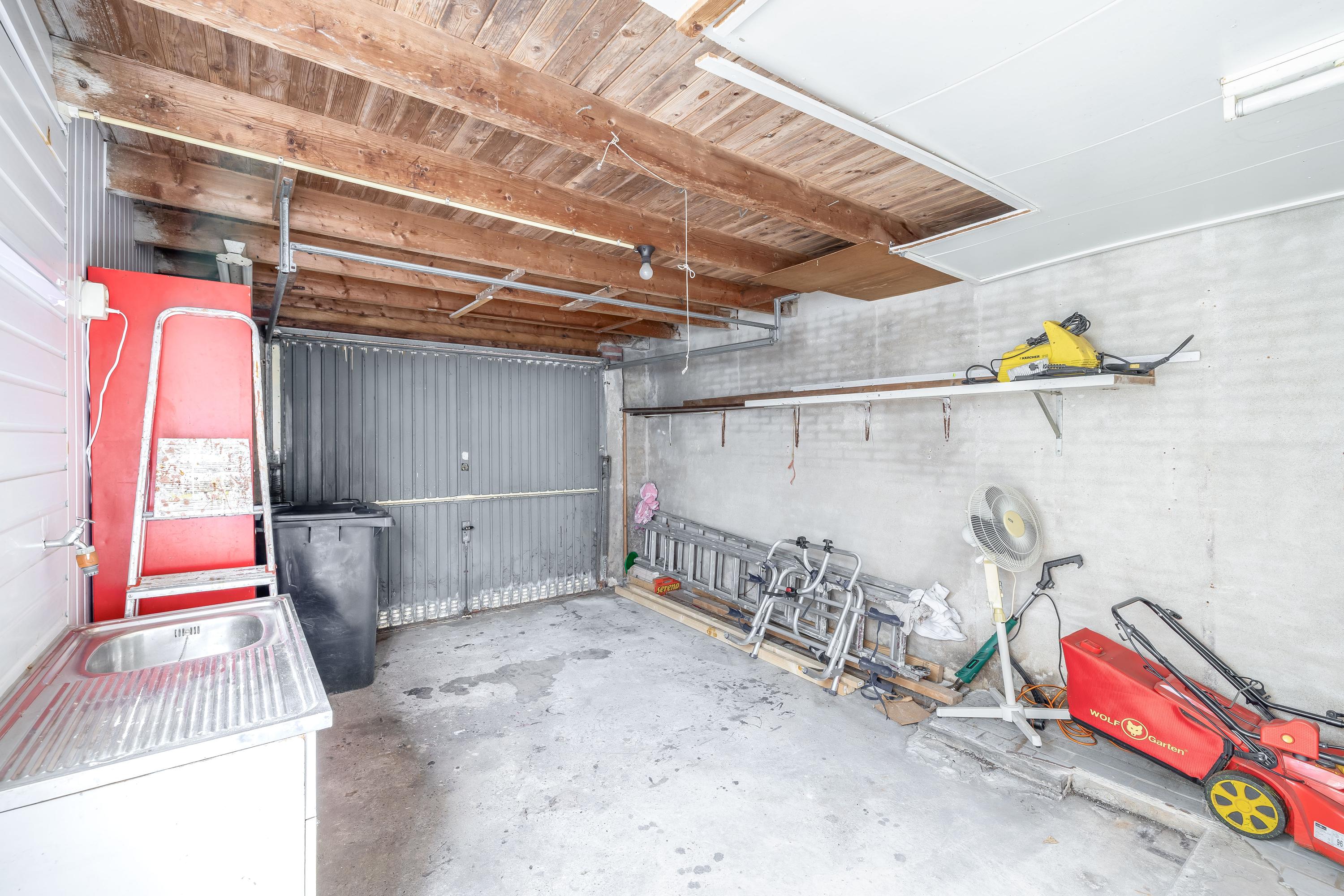 - Naastgelegen garage, voorzien van water en elektra, met mogelijkheid tot het parkeren van een auto