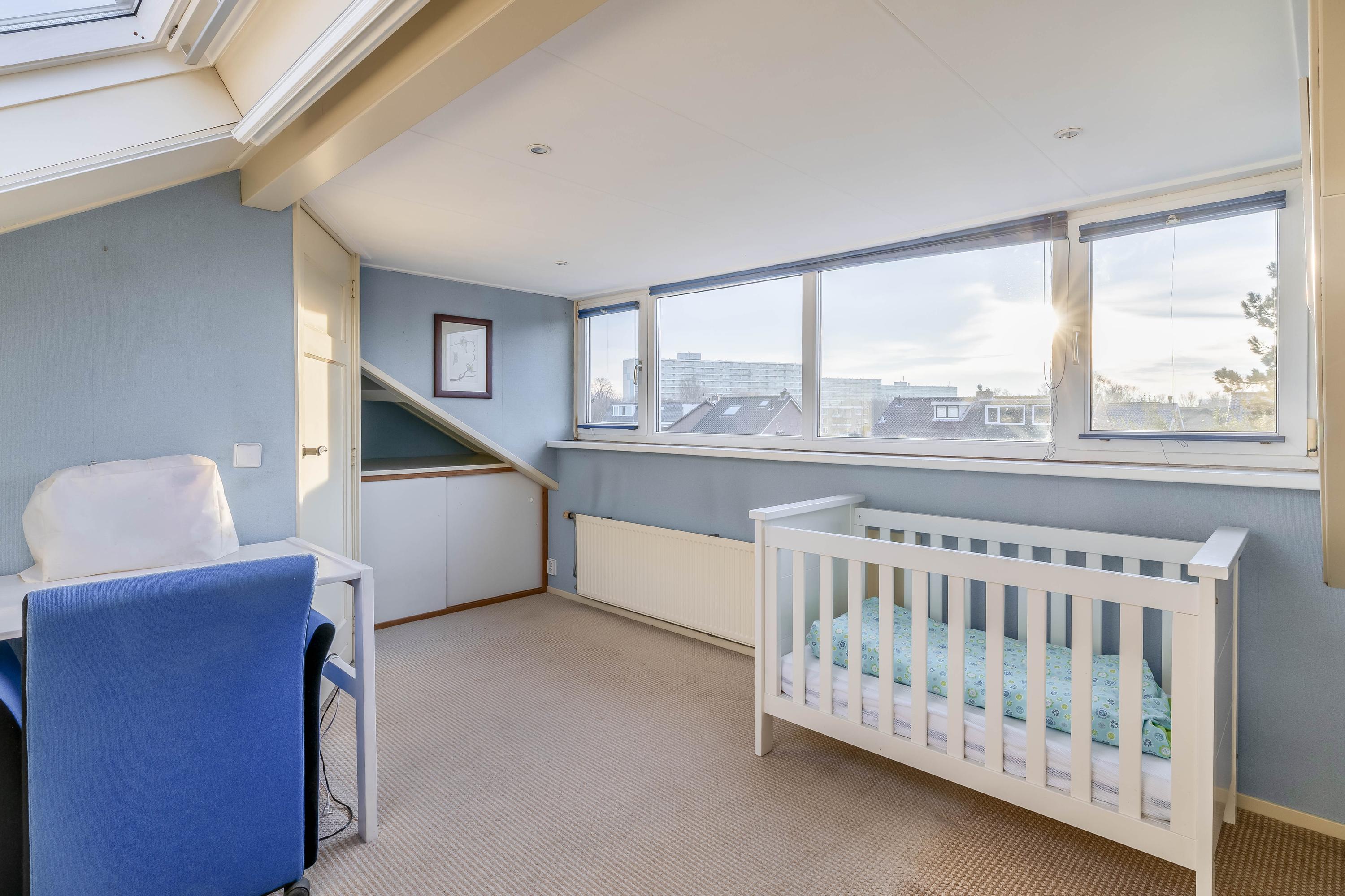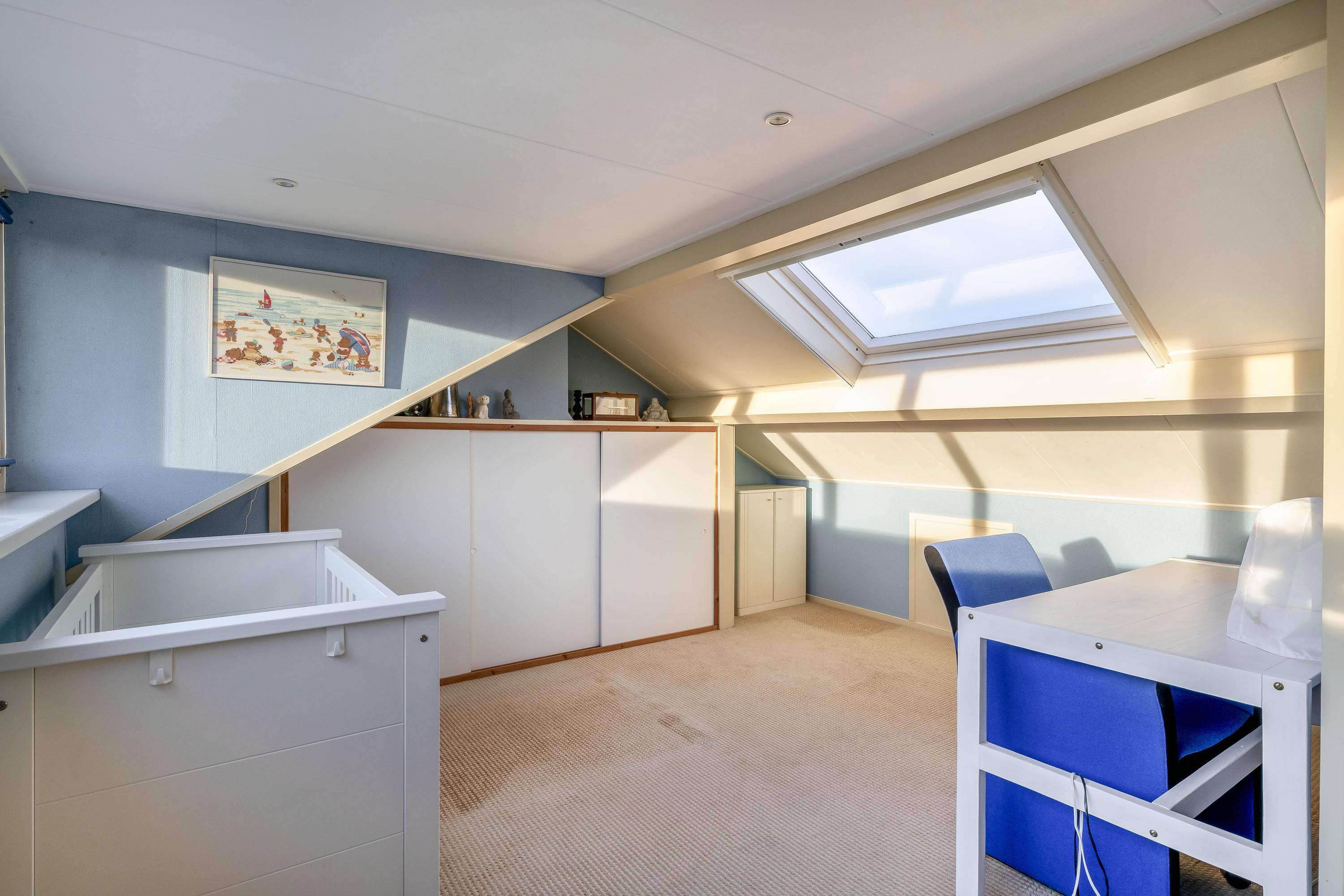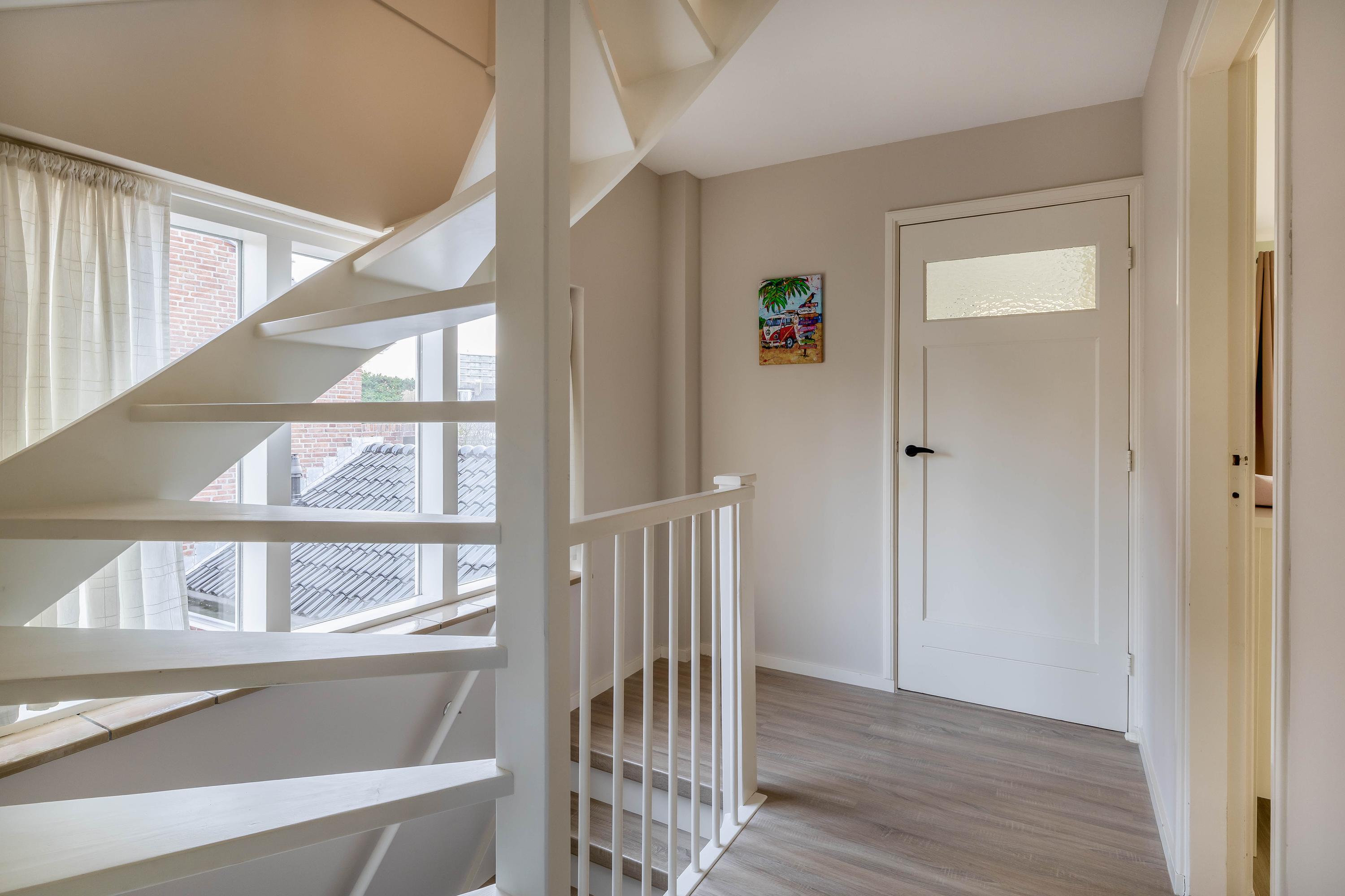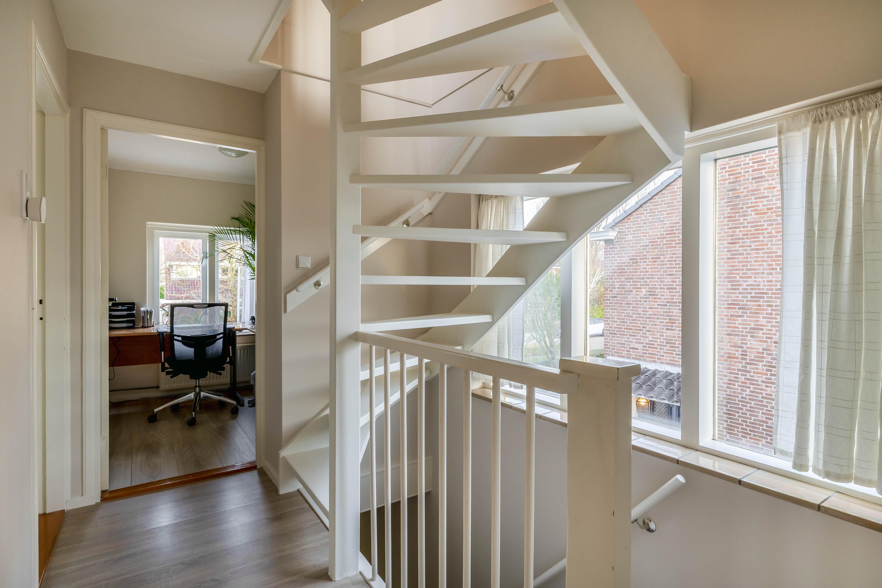 Trap naar de tweede verdieping, overloop met toegang tot de 4e slaapkamer met dakkapel en zeer veel bergruimte achter de knieschotten.