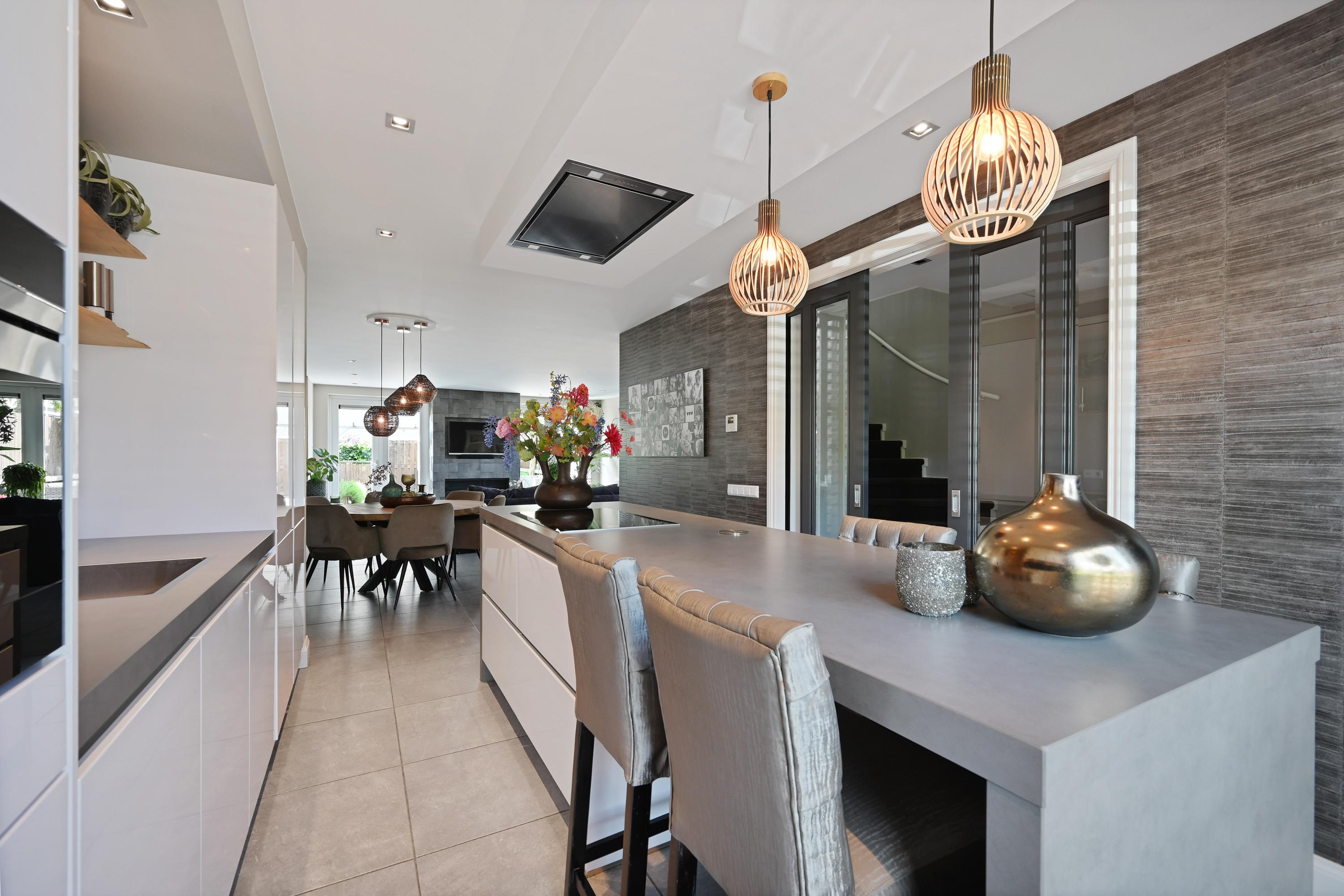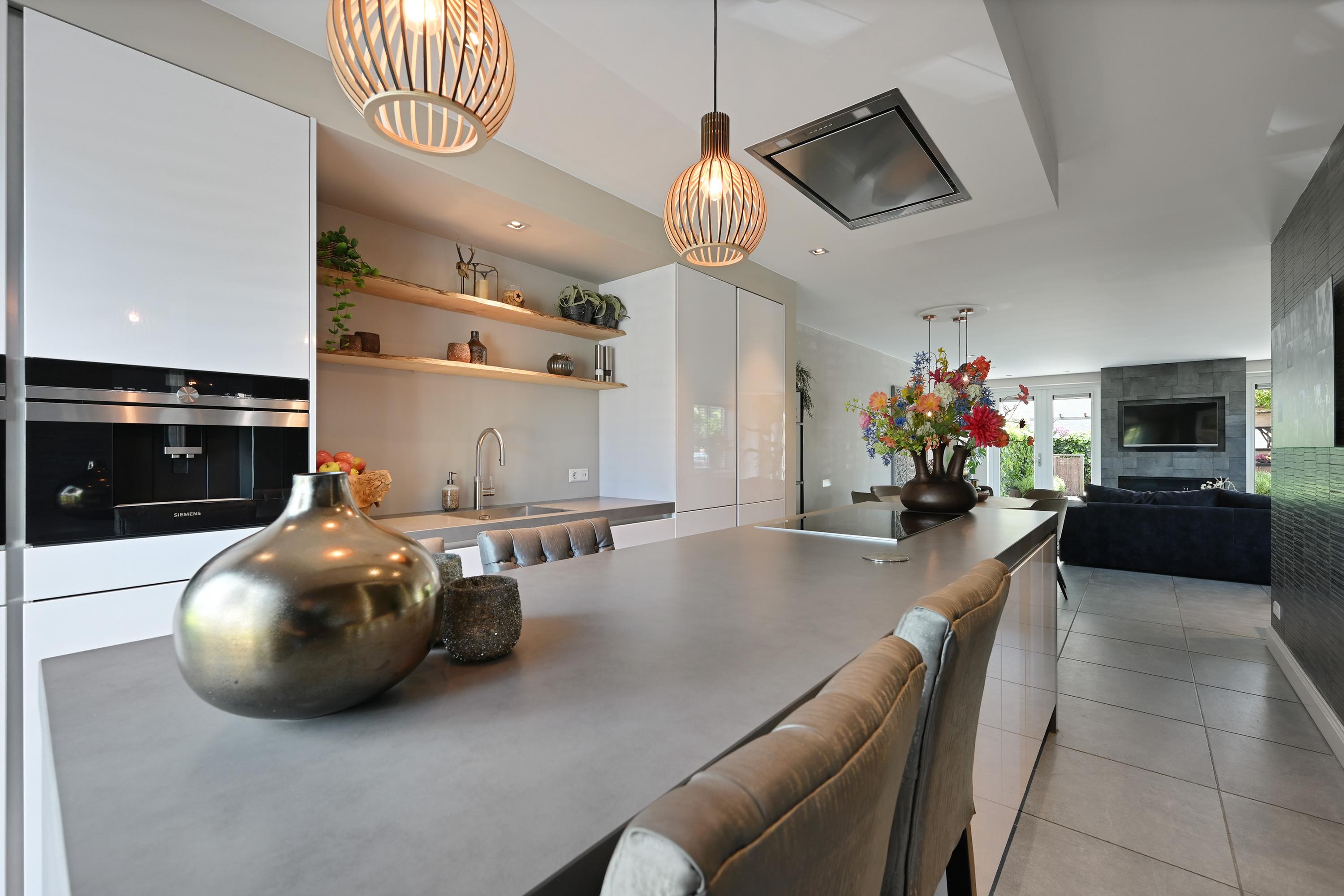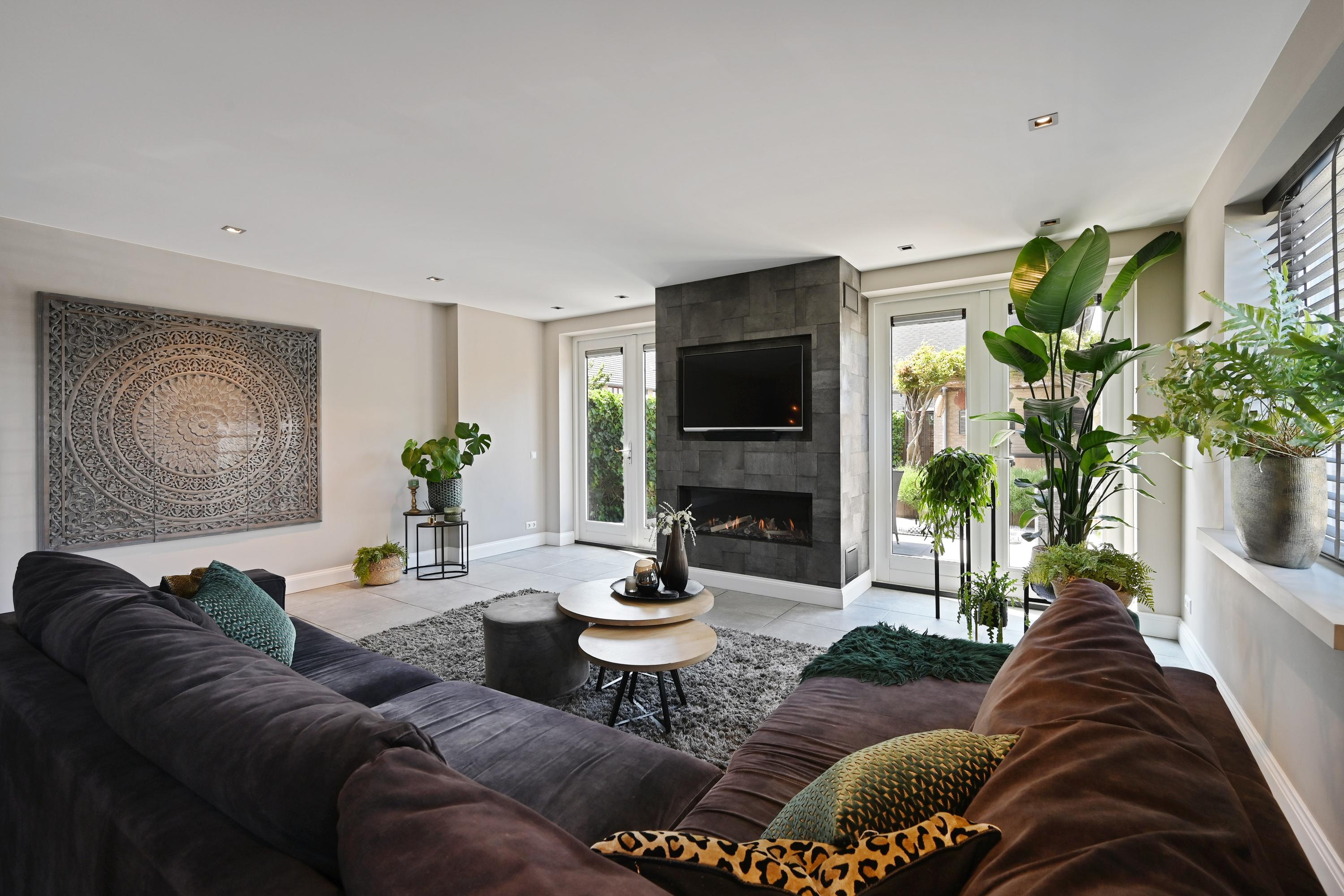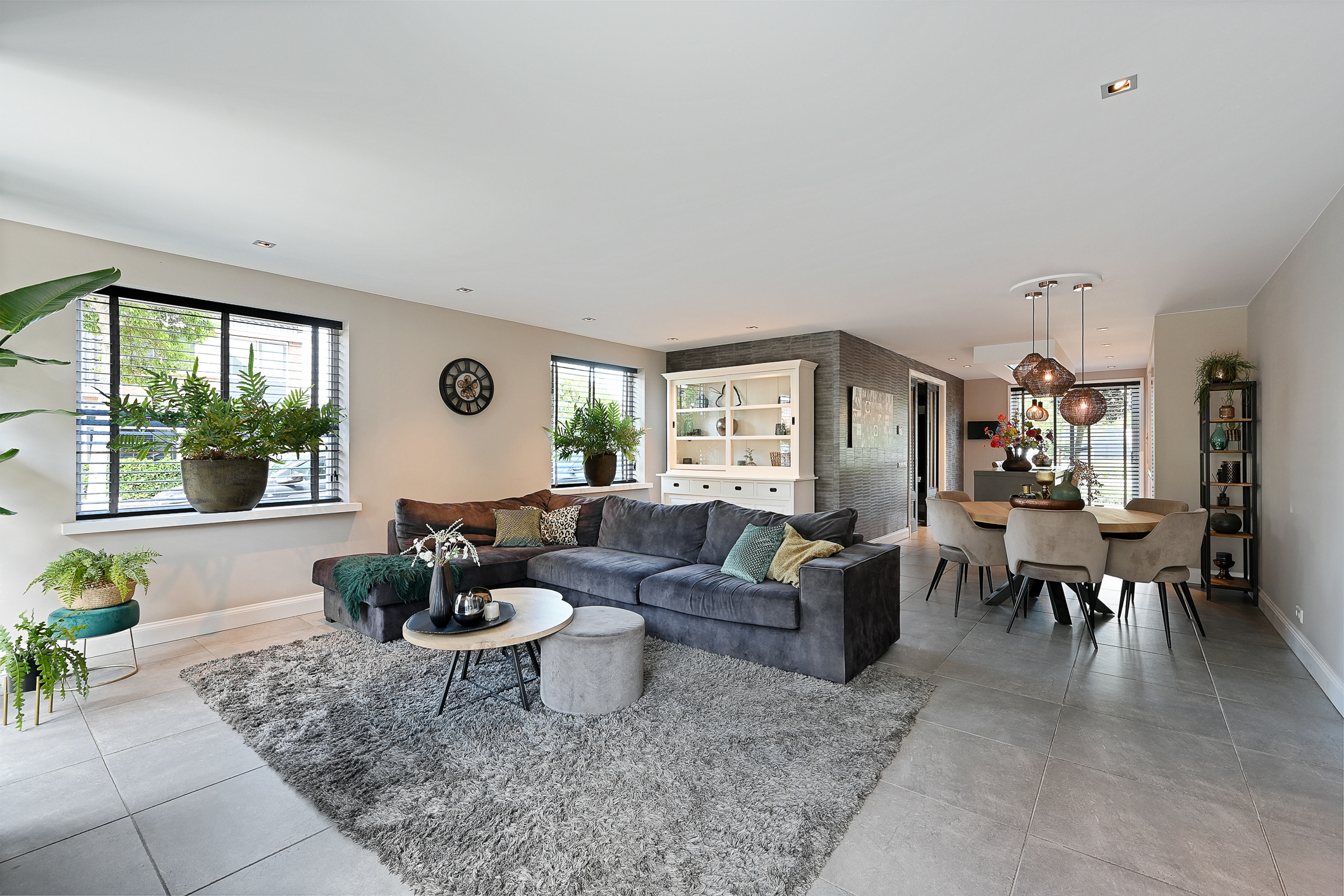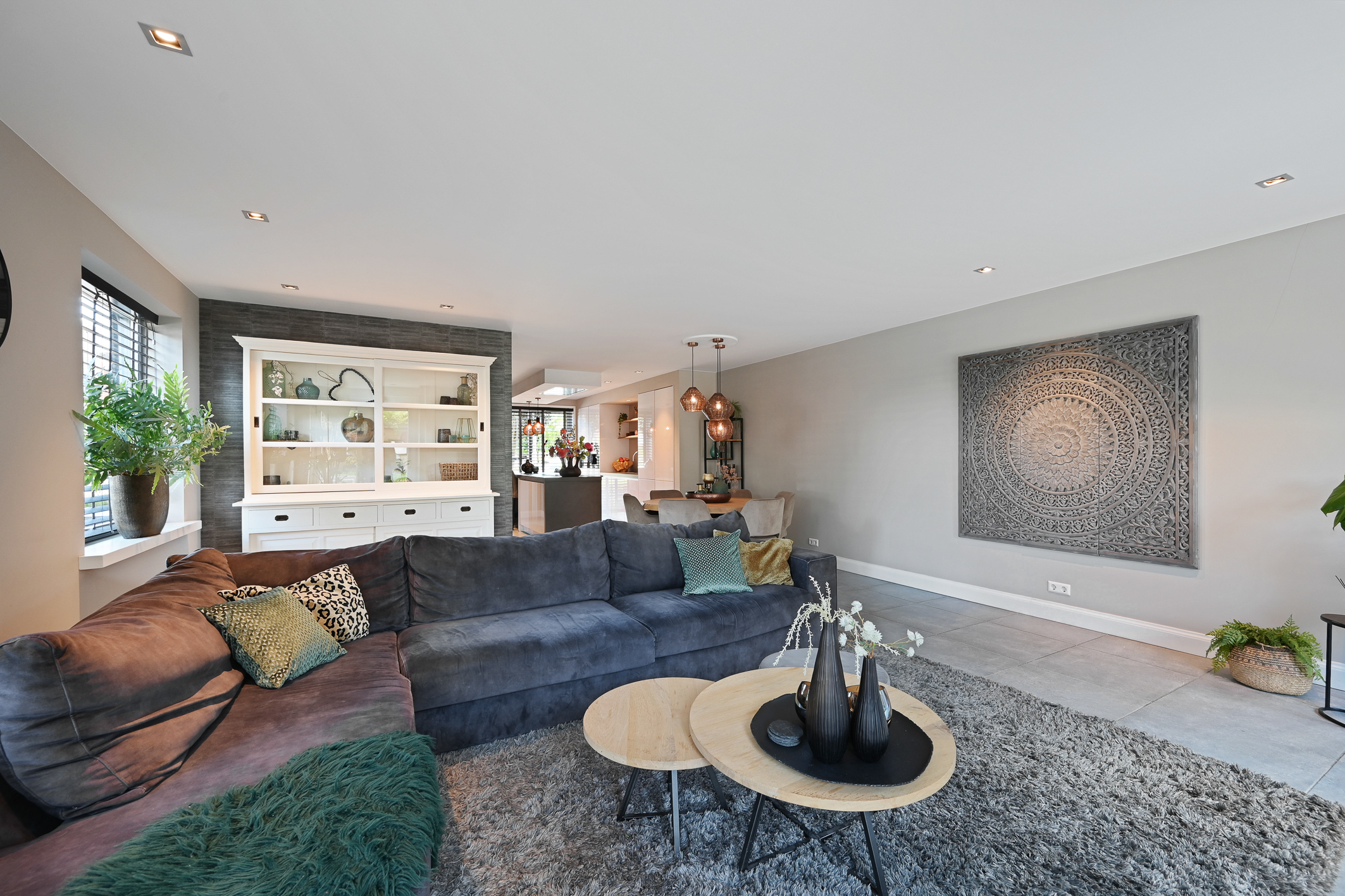 Je komt de woning binnen via een nette hal, waar direct aan de rechterzijde een ruime trapkast is gesitueerd, welke ideaal is voor jassen, schoenen en extra bergruimte. In de hal bevinden zich tevens het toilet en de trapopgang naar de eerste verdieping. Loop je verder, dan kom je via fraaie en suite deuren in de royale woonkeuken met modern kookeiland (2018) inclusief Quooker kraan. De keuken is van alle gemakken voorzien en vormt het hart van de woning. Aansluitend vind je de sfeervolle woon- en eetkamer. In de woonkamer staat een prachtig TV/gashaard meubel. Op de gehele begane grond is er vloerverwarming aanwezig. Tevens is er vloerverkoeling door de gehele woning te vinden.