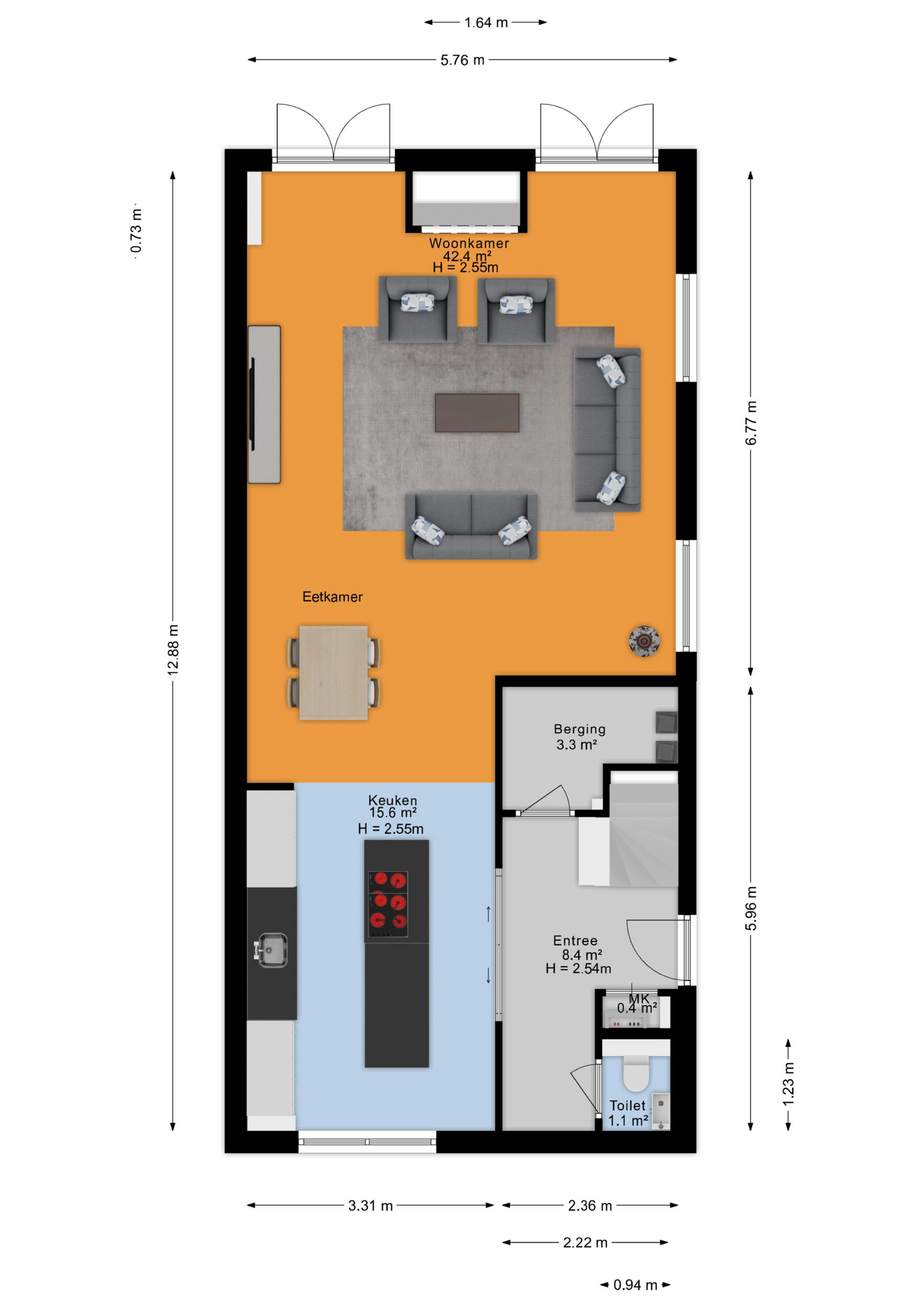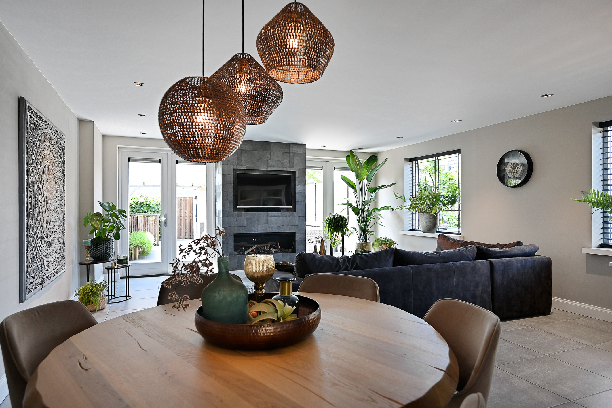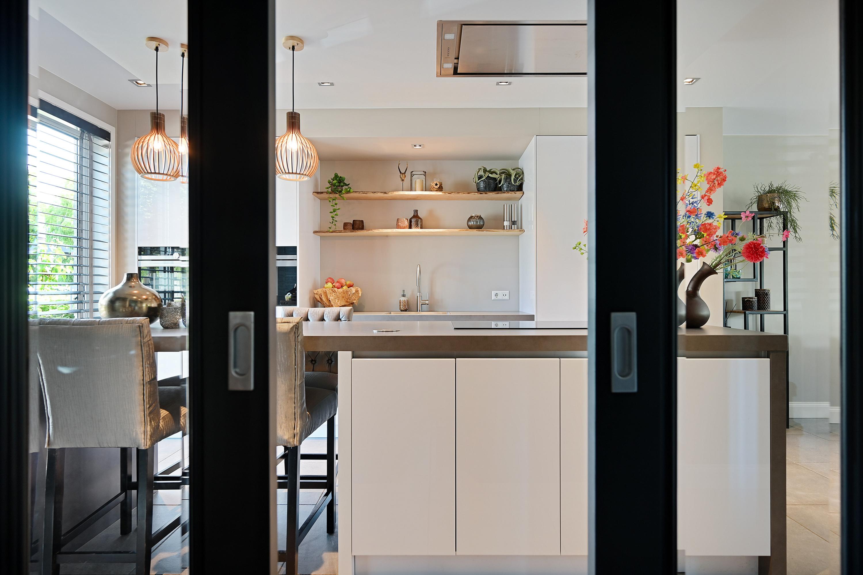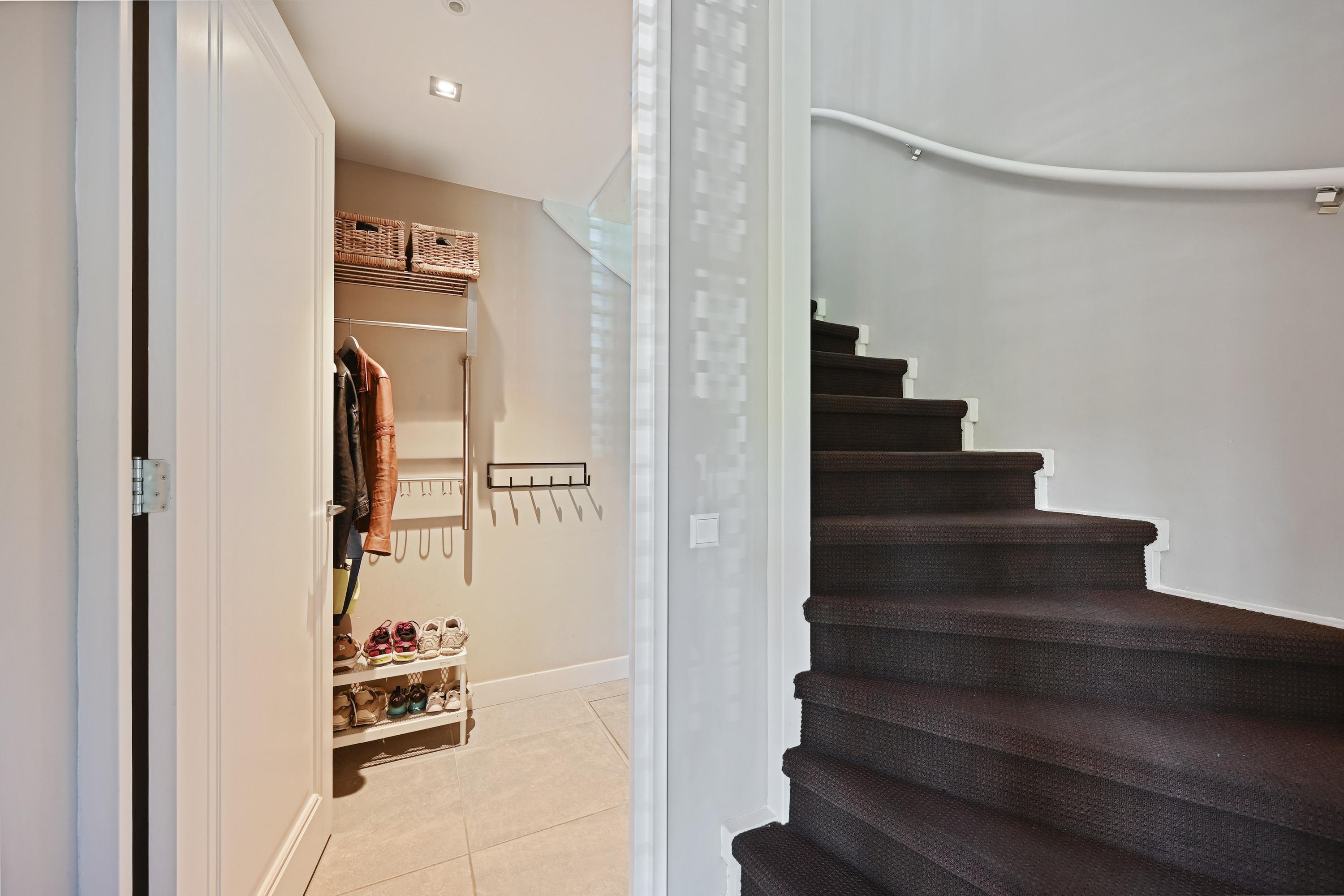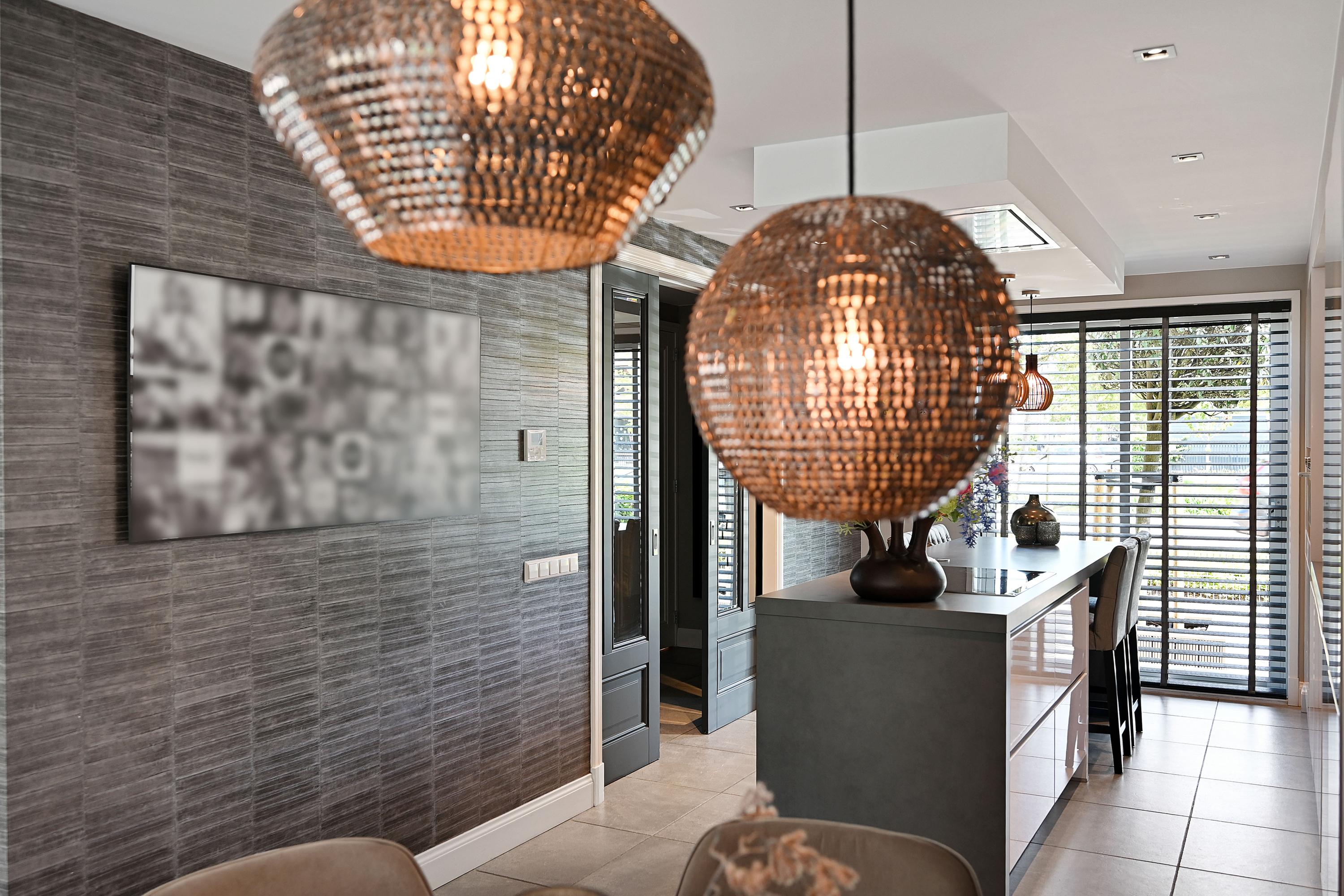 Je komt de woning binnen via een nette hal, waar direct aan de rechterzijde een ruime trapkast is gesitueerd, welke ideaal is voor jassen, schoenen en extra bergruimte. In de hal bevinden zich tevens het toilet en de trapopgang naar de eerste verdieping. Loop je verder, dan kom je via fraaie en suite deuren in de royale woonkeuken met modern kookeiland (2018) inclusief Quooker kraan. De keuken is van alle gemakken voorzien en vormt het hart van de woning. Aansluitend vind je de sfeervolle woon- en eetkamer. In de woonkamer staat een prachtig TV/gashaard meubel. Op de gehele begane grond is er vloerverwarming aanwezig. Tevens is er vloerverkoeling door de gehele woning te vinden.