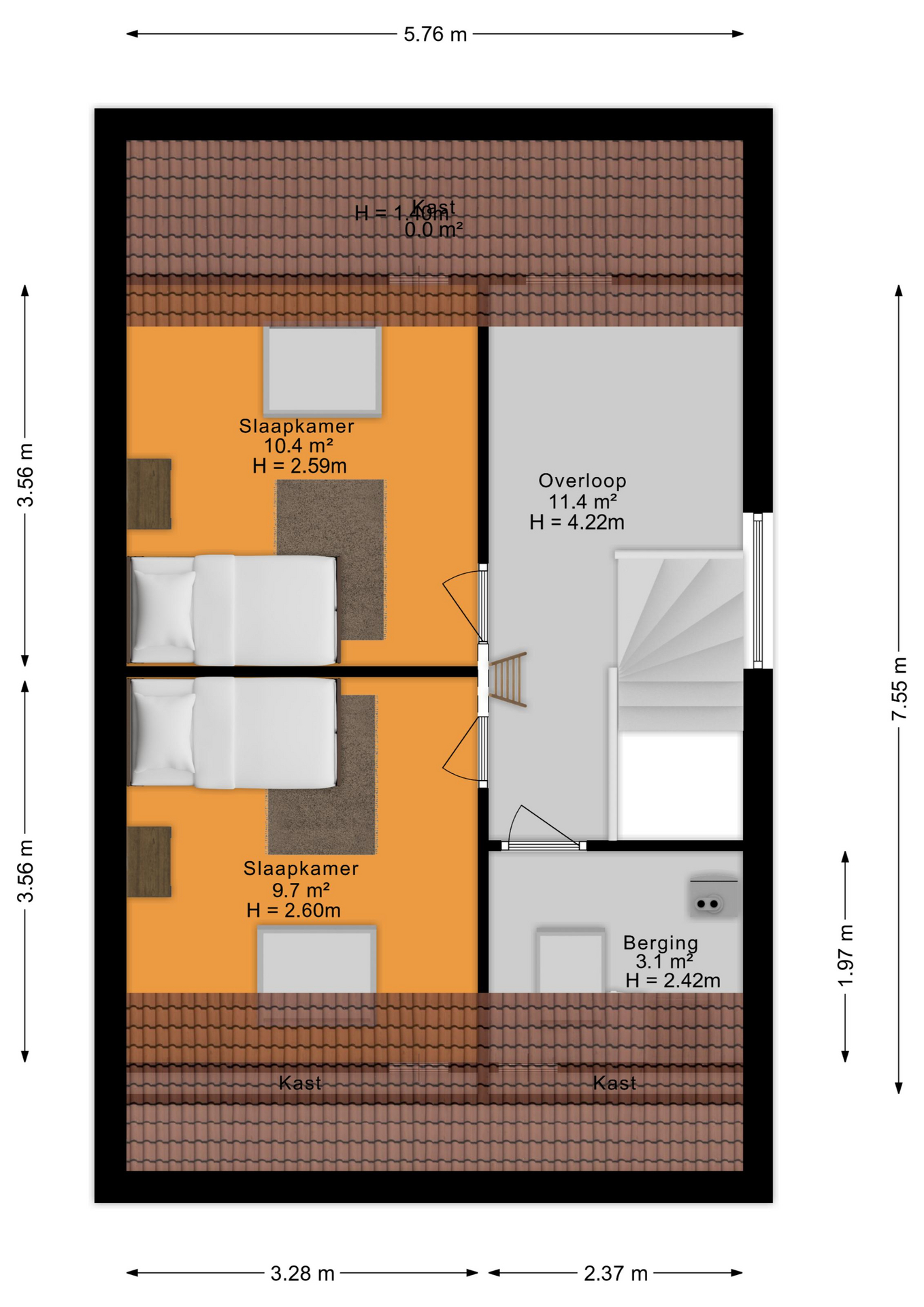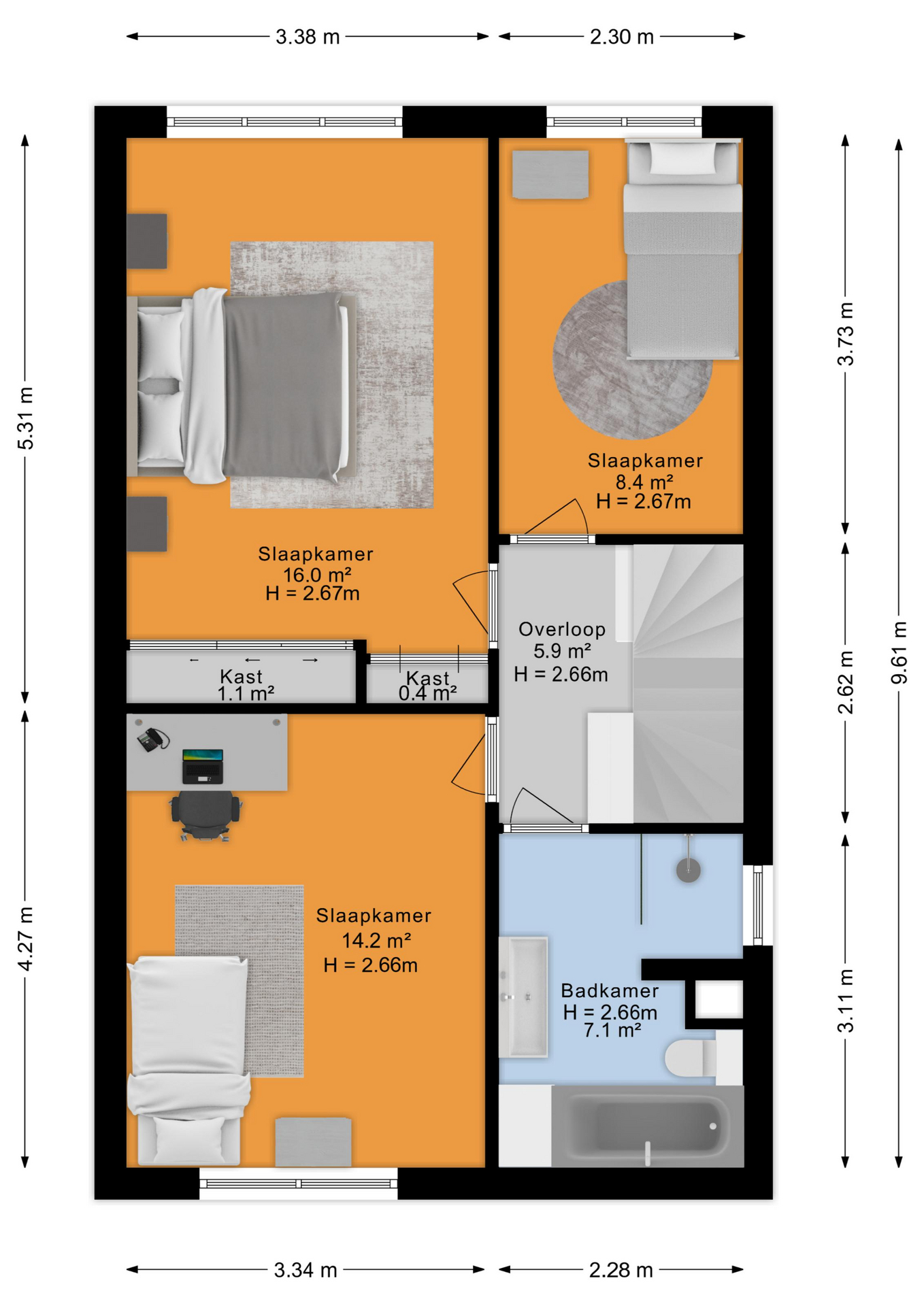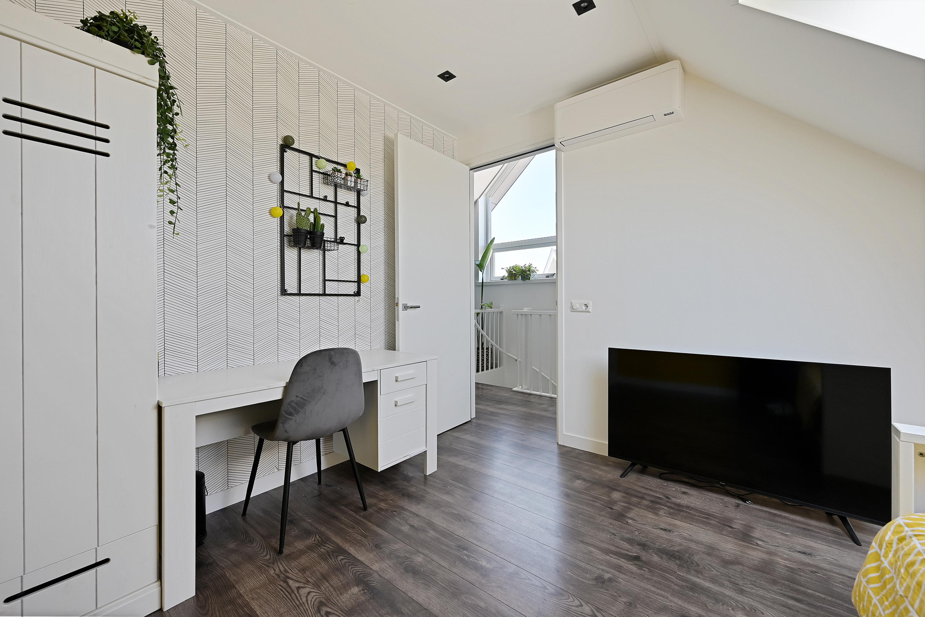 De tweede verdieping is geheel gerenoveerd in 2020 en er zijn extra dakramen geplaatst. Deze verdieping verrast met een gezellige overloop waar een knusse mini-woonkamer met tv is gecreëerd. Een ideale plek om te ontspannen of als extra speelruimte! Daarnaast zijn hier nog twee slaapkamers te vinden. Ook is er een aparte ruimte met de wasmachineopstelling en overige technische aansluitingen. Door de gehele woning zijn airco-units aanwezig, wat zorgt voor aangename temperaturen in zowel zomer als winter.