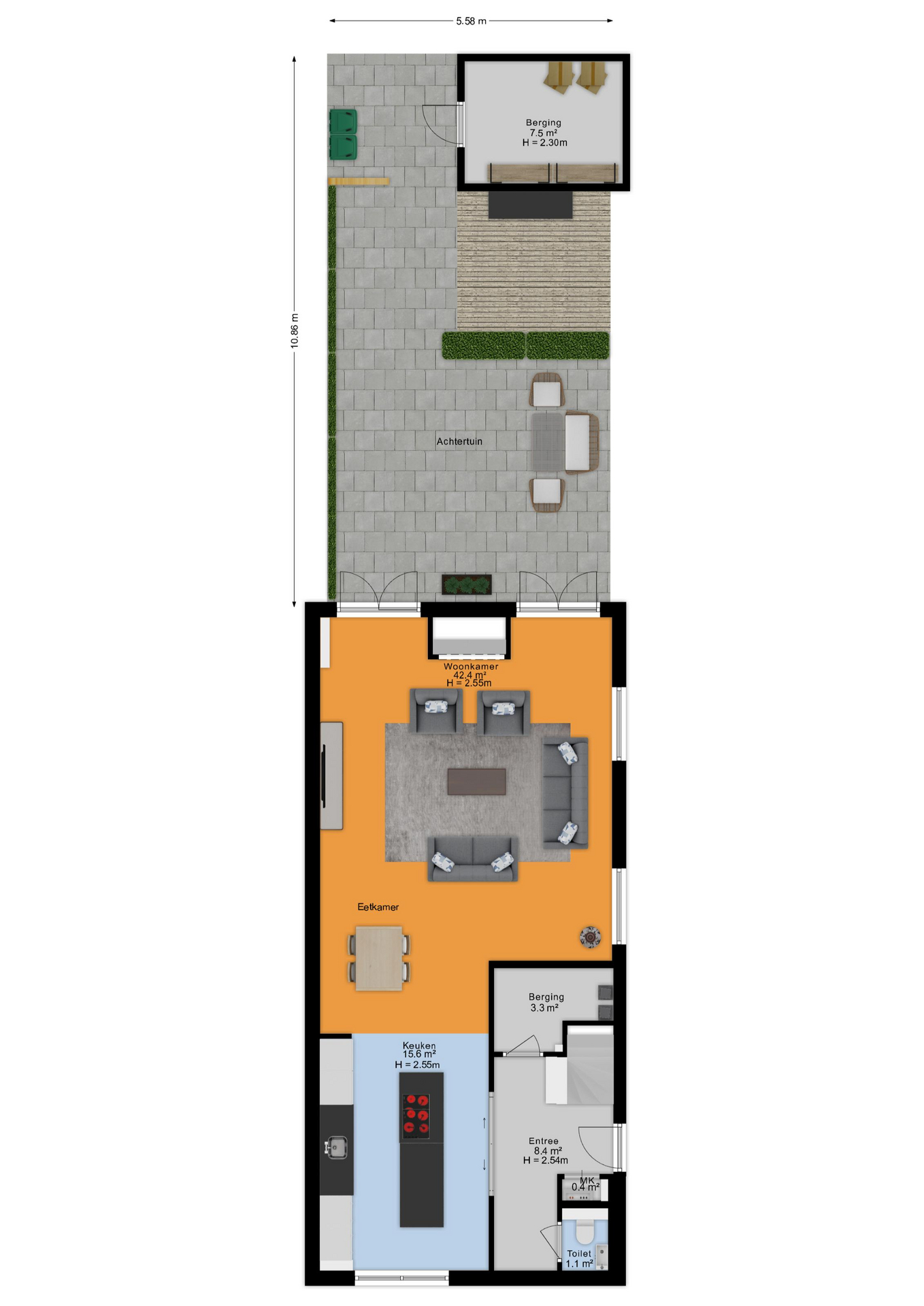 Via openslaande deuren stap je de achtertuin in: een zonnige en verzorgde buitenruimte met kleurrijke beplanting, een praktische berging en een handige achterom via een poortdeur. De tuin biedt volop ruimte voor ontspanning en gezelligheid. Hier drink je heerlijk een borrel, of eet je gezellig met vrienden. De perfecte plek om aan het einde van de dag van te genieten in de zon.