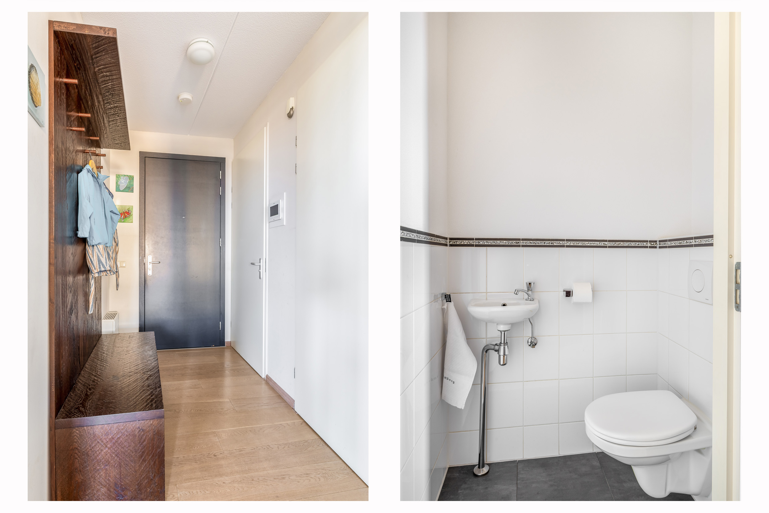 De ruime hal biedt toegang tot alle vertrekken en beschikt over een modern toilet met fonteintje.