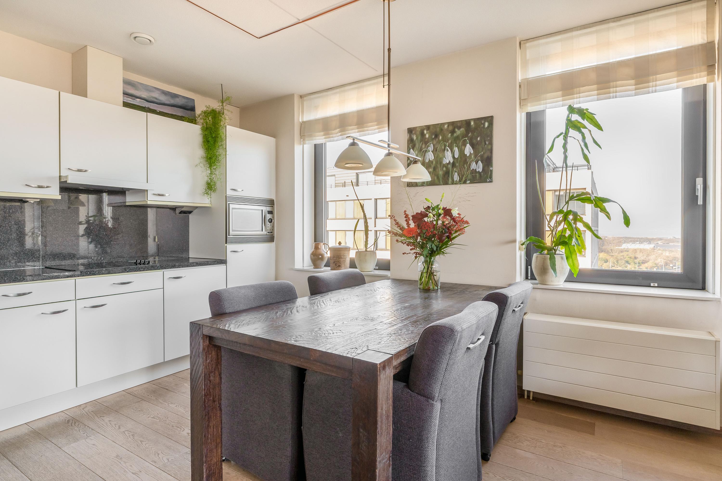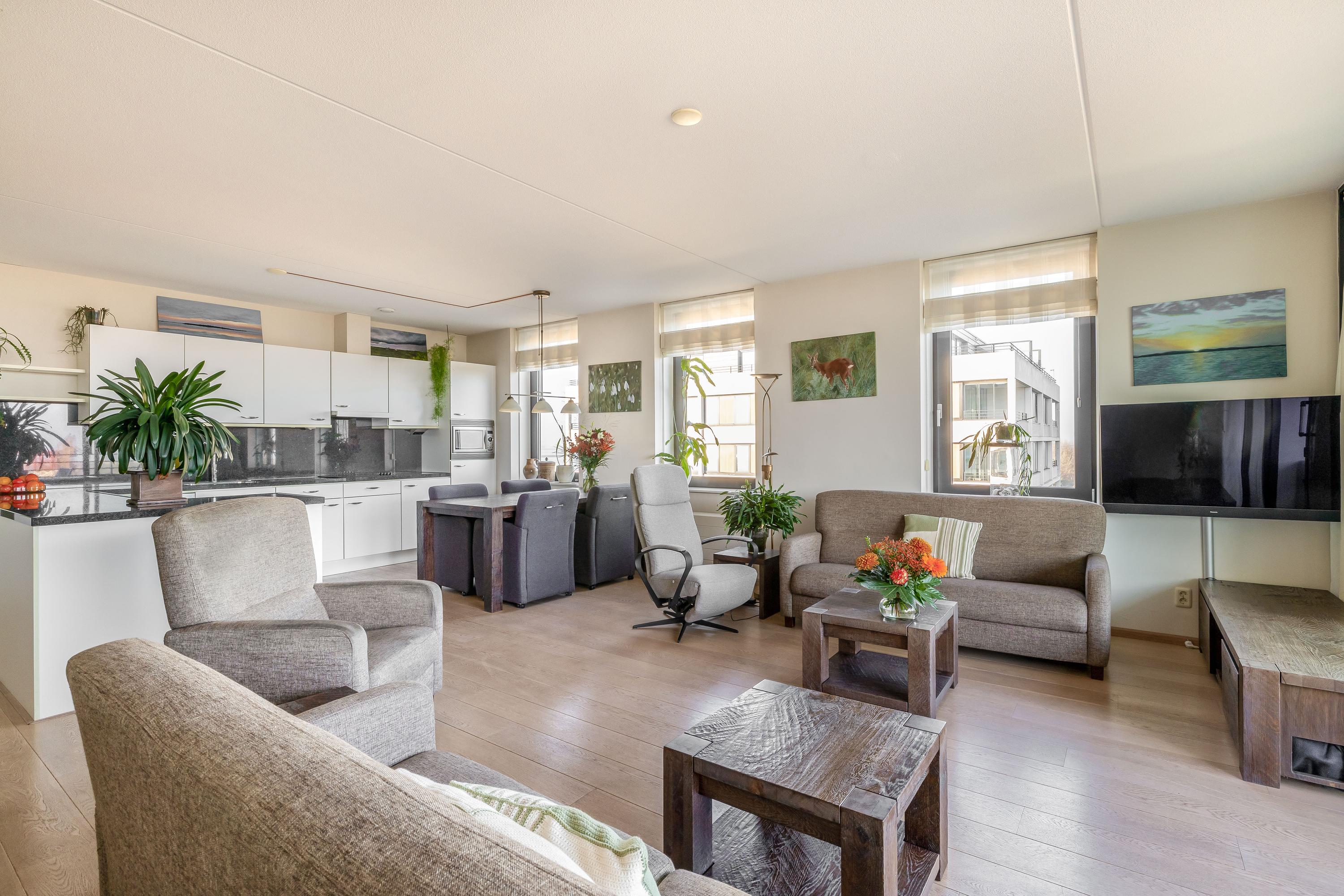 Het appartement is gelegen op de vijfde verdieping van een goed onderhouden complex (bouwjaar 2006) met lift en biedt een woonoppervlakte van circa 102 m². Dankzij de grote raampartijen en het HR++ glas is er veel licht, een uitstekende isolatie en een prettige sfeer. Binnen treft u een ruime woonkamer met open keuken, drie slaapkamers, een moderne badkamer (2023) en een inpandige berging.