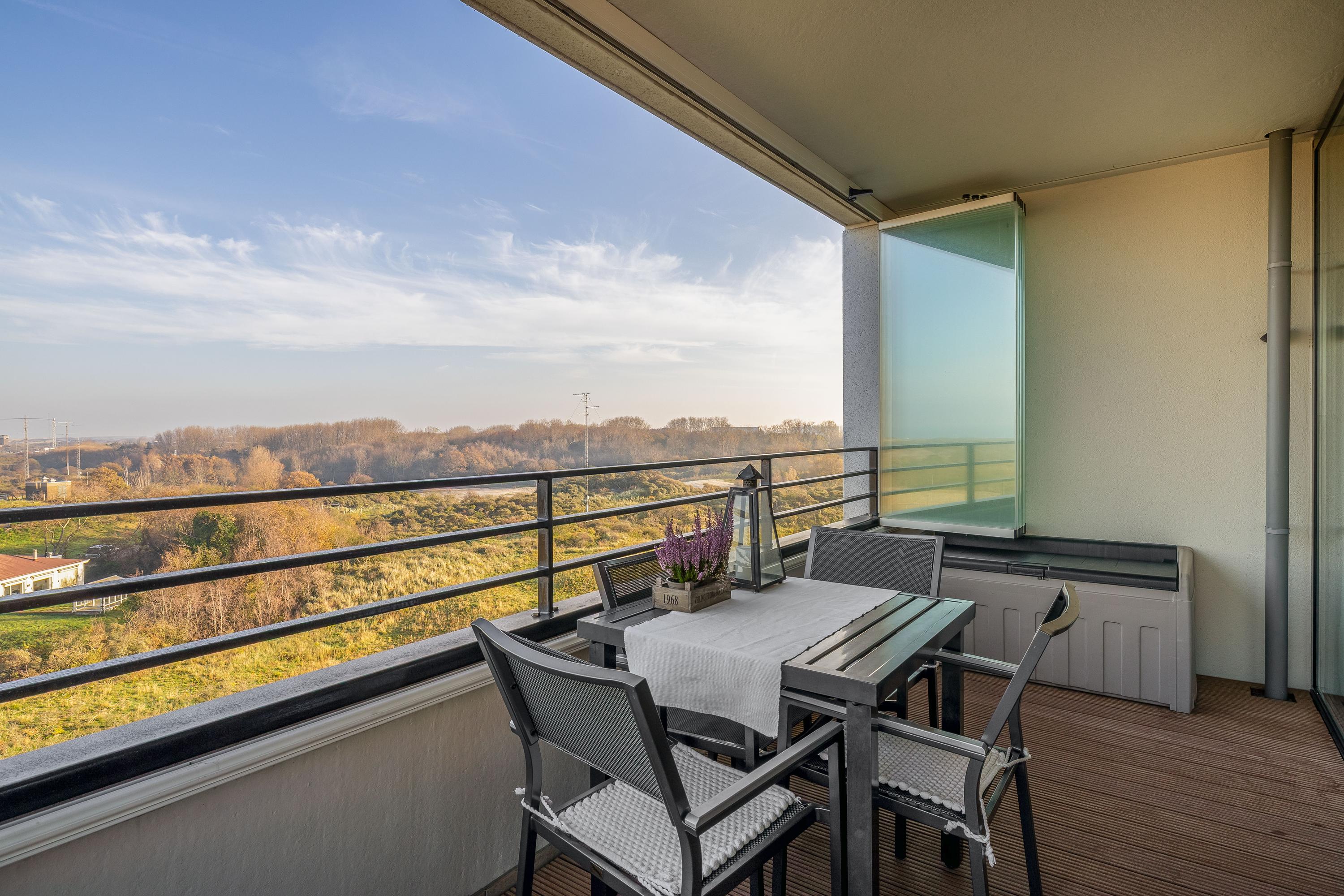 - Ruim en zonnig balkon met vrij uitzicht over de zee en duinen, voorzien van serre beglazing