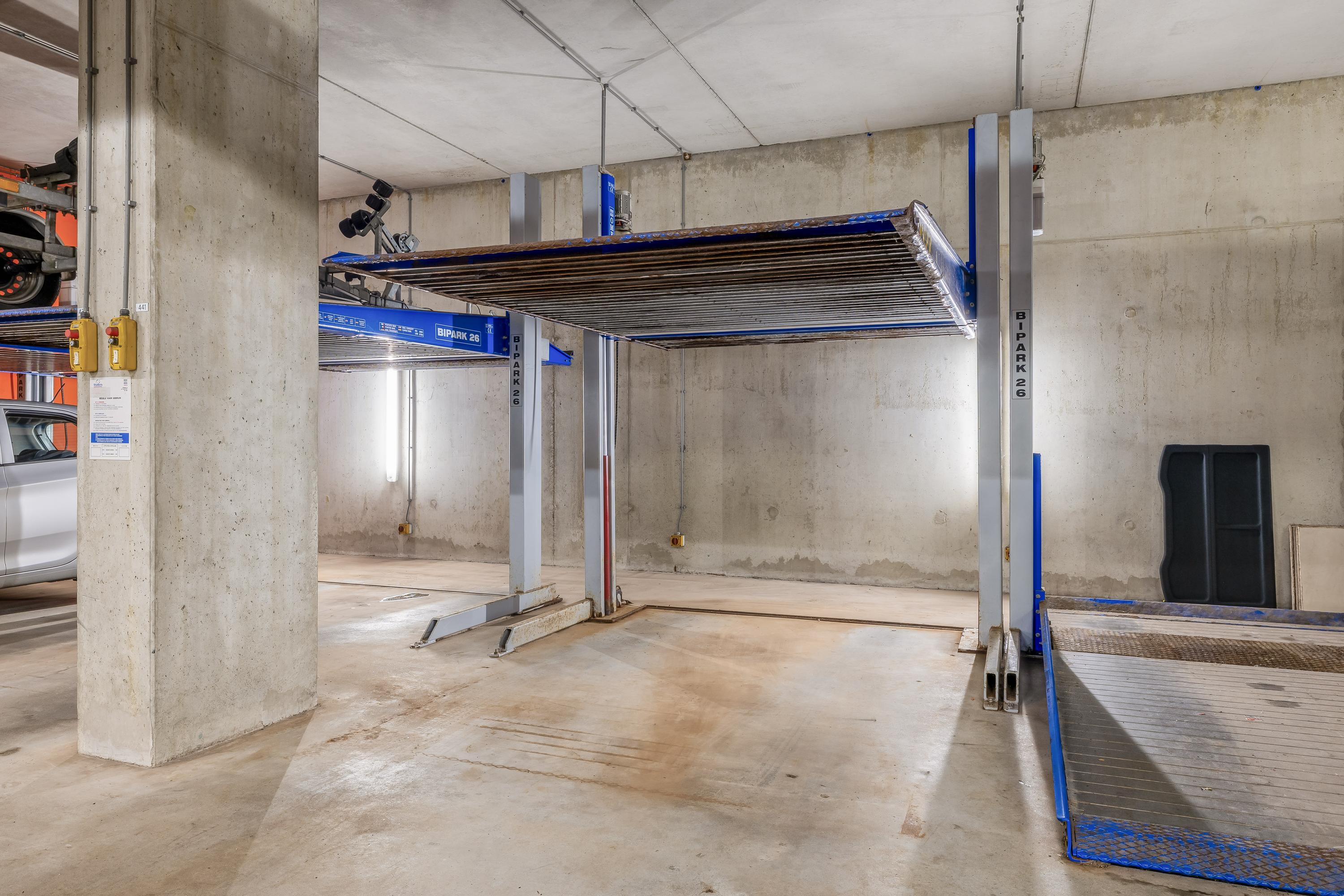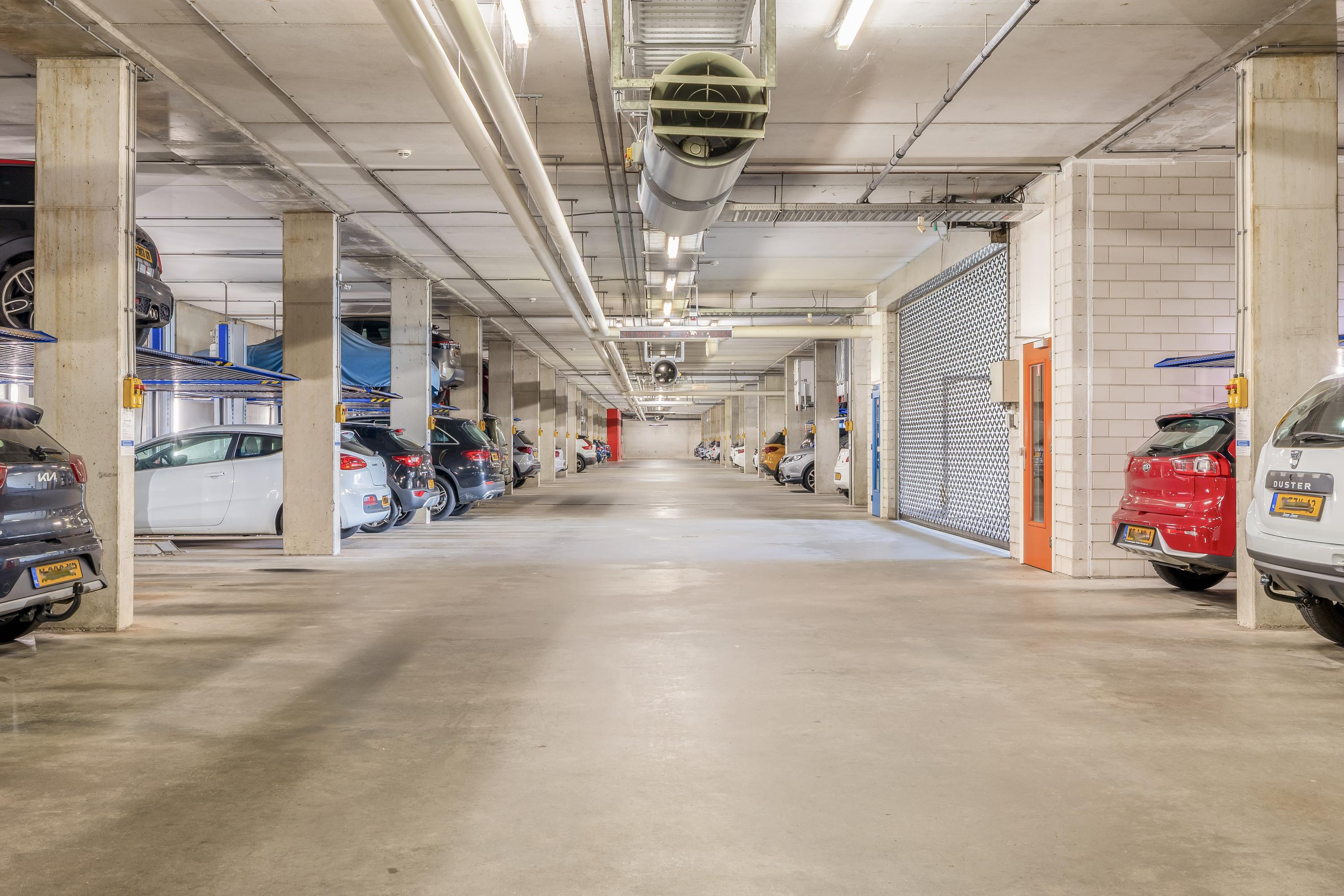 Bij het appartement horen een eigen berging in de onderbouw en twee privéparkeerplaatsen in de afgesloten parkeergarage (met autolift). De berging biedt voldoende ruimte voor fietsen en opslag. Bezoekers kunnen gebruikmaken van de openbare parkeergelegenheid rondom het complex.