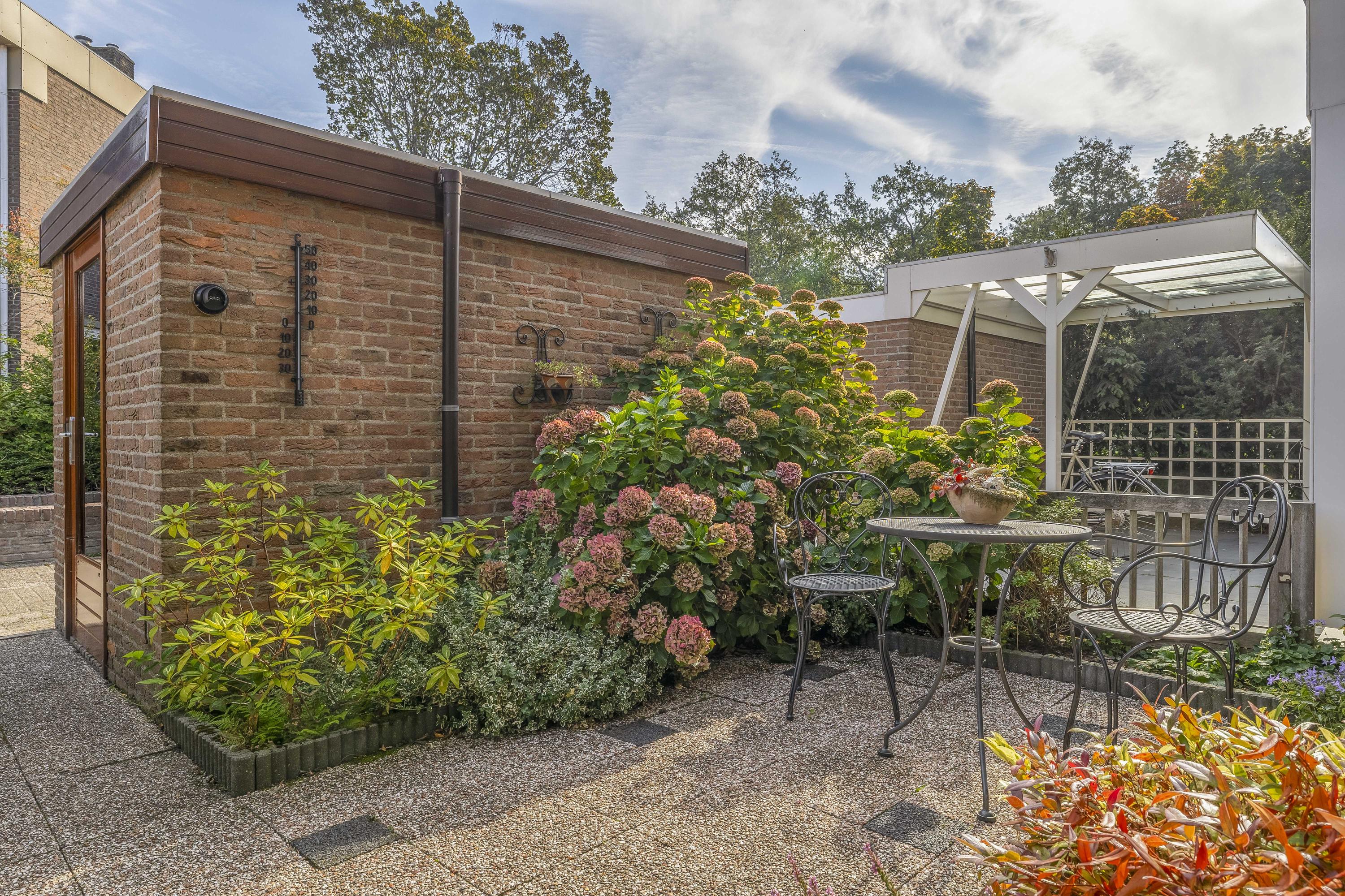 De achtertuin is verzorgd aangelegd met groen en bestrating. Dankzij de ligging op het zuidwesten kun je hier tot in de avond genieten van de zon. In de voortuin staat een stenen berging met elektra, ideaal voor fietsen, tuingereedschap of hobbyspullen.