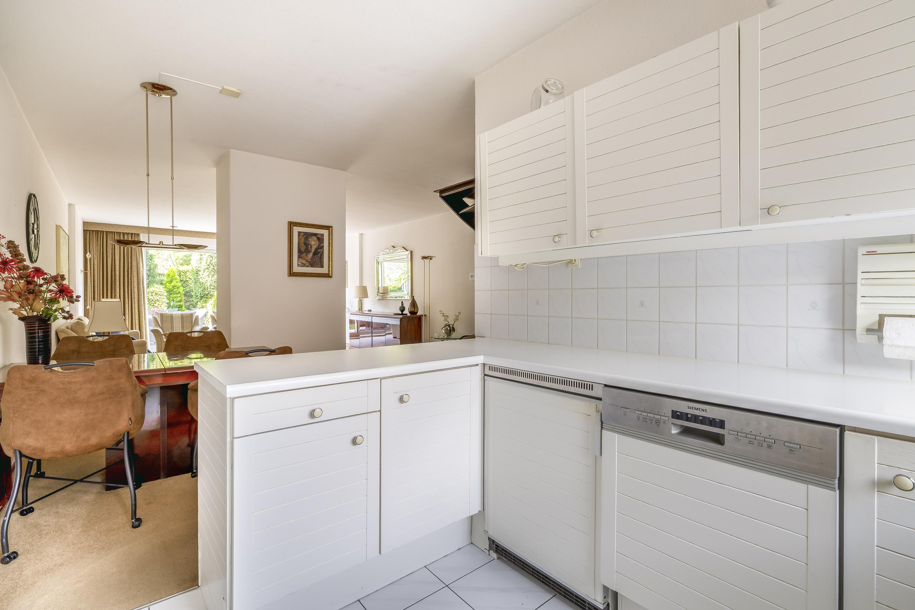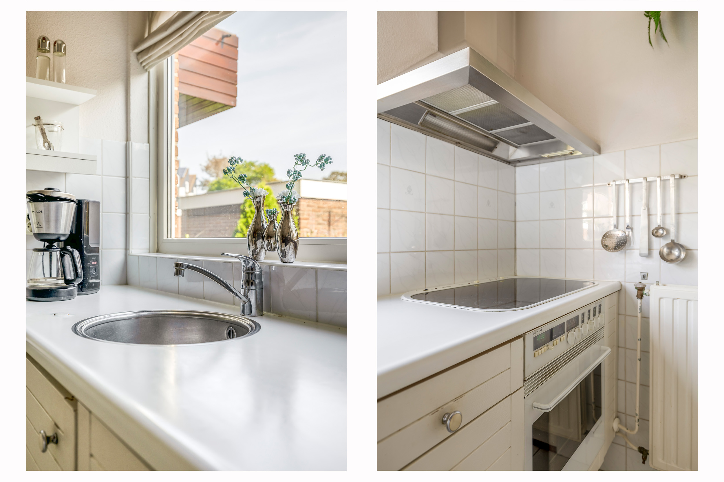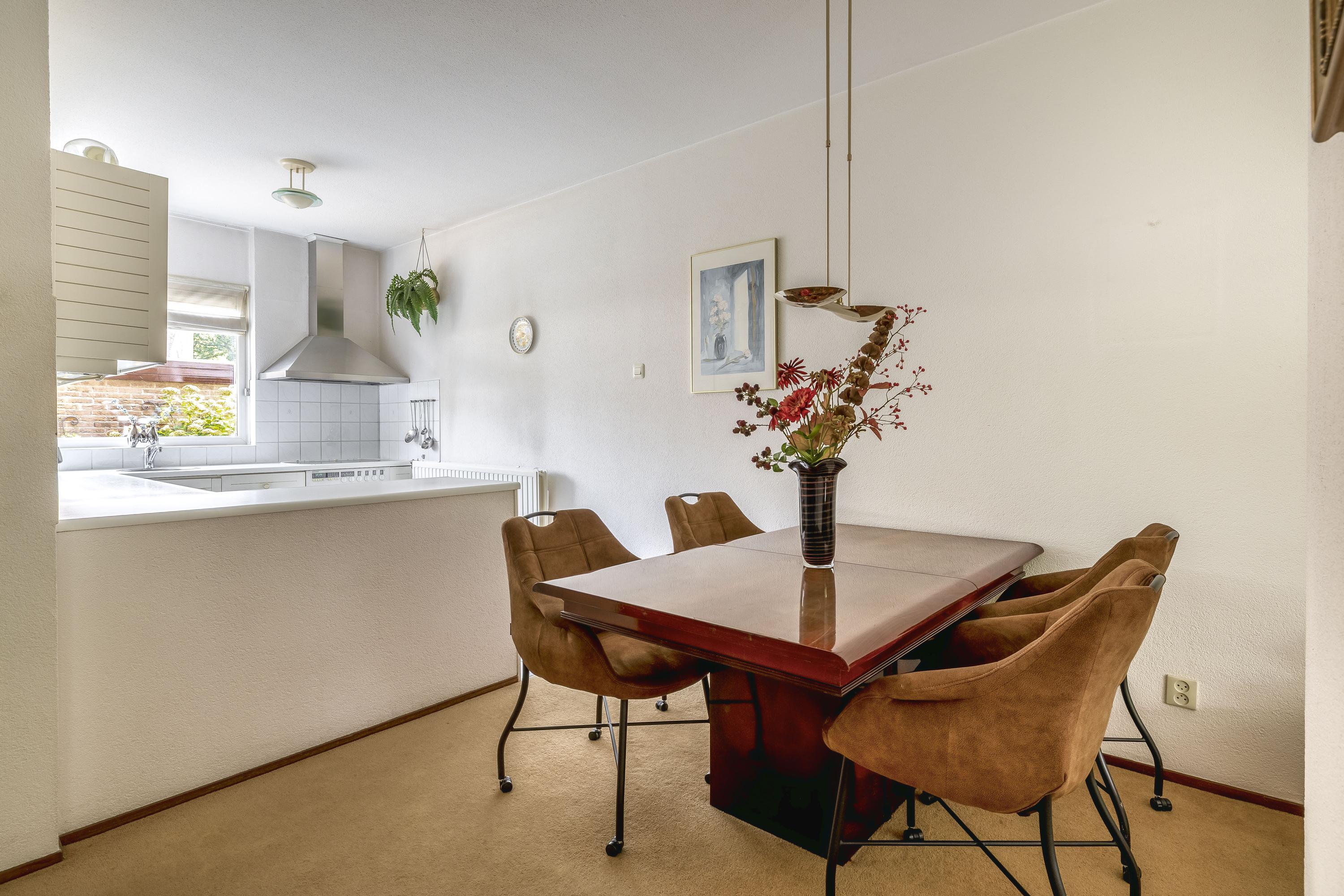 De uitgebouwde woonkamer is een royale en lichte leefruimte, met een sfeervolle open haard. Dankzij de glazen pui over de volle breedte geniet je van een prachtig uitzicht op de groene achtertuin en veel natuurlijk licht. Aan de voorzijde ligt de keuken, voorzien van diverse inbouwapparatuur. Deze ruimte is functioneel, maar leent zich uitstekend voor een moderne make-over.